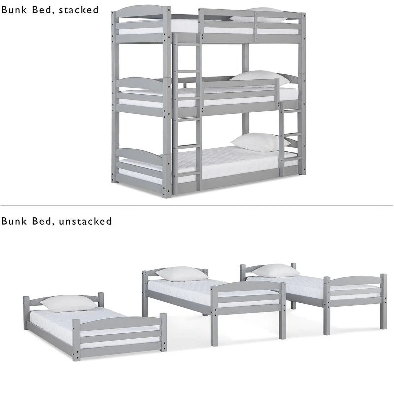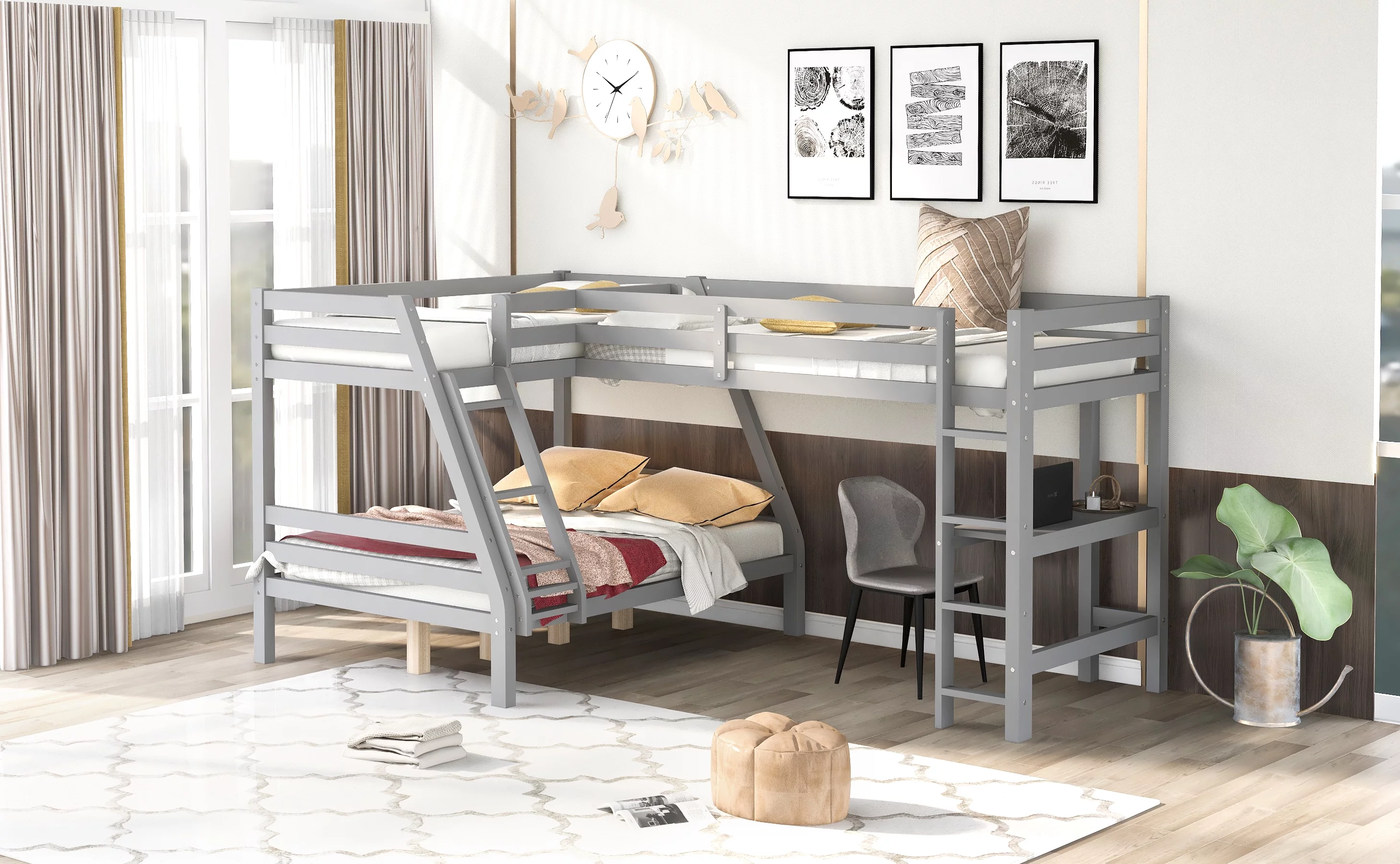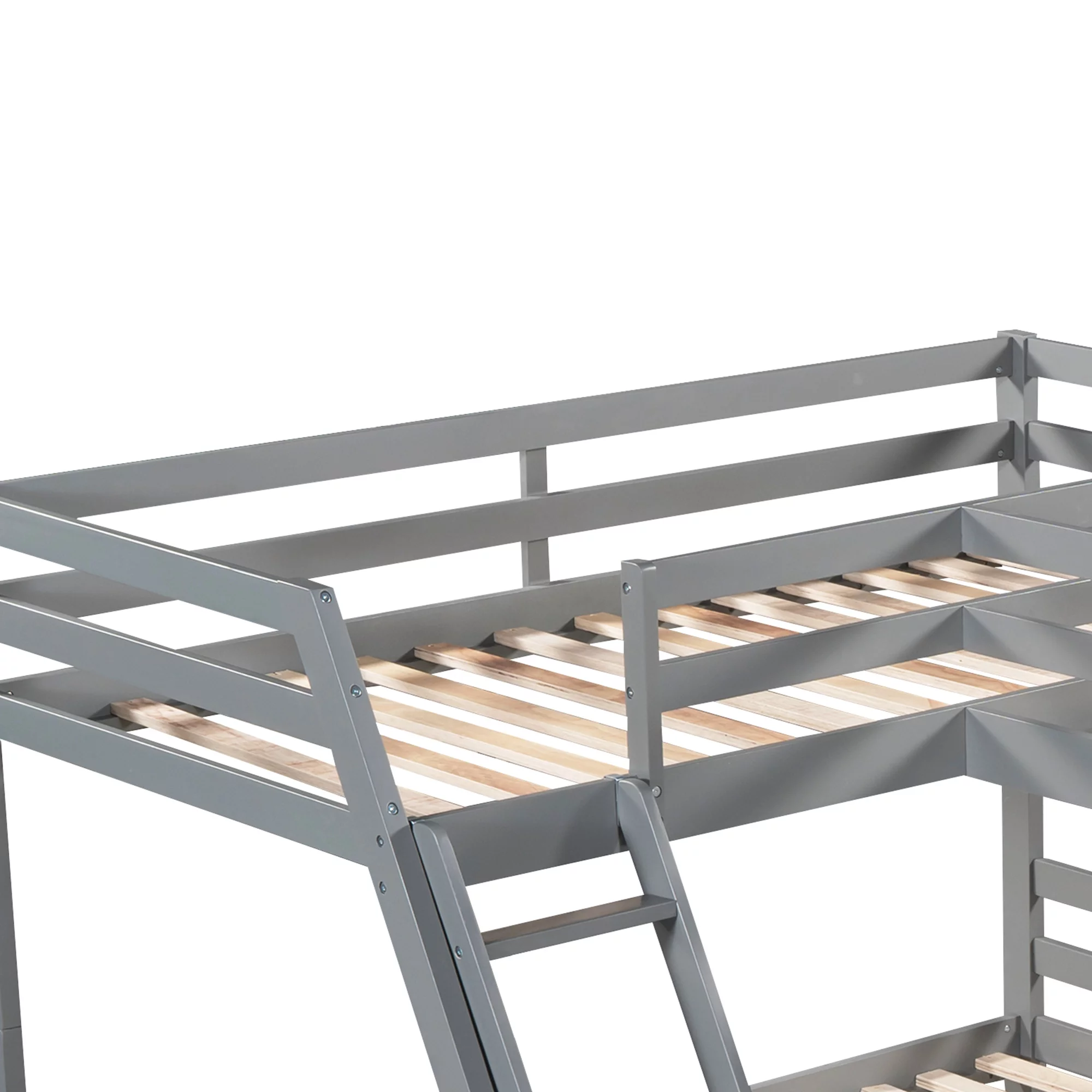 LANTRO JS L Shaped Twin over Full Bunk Bed and Twin Size Loft Bed with Built in Desk,Gray