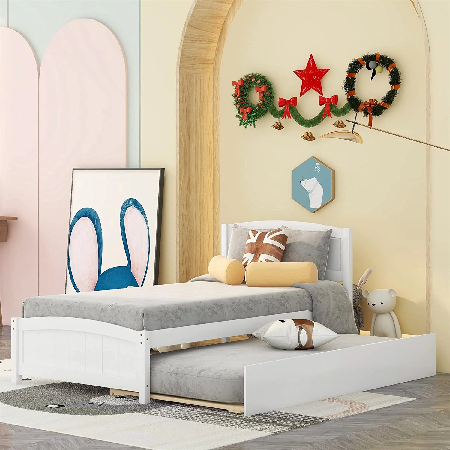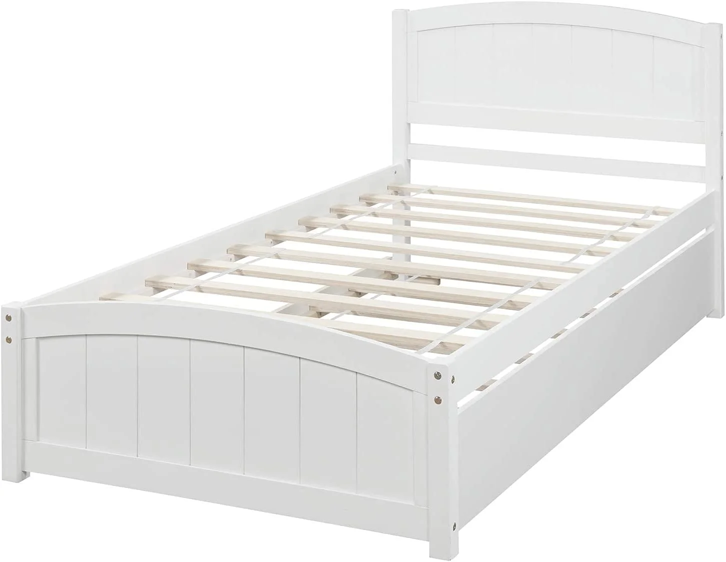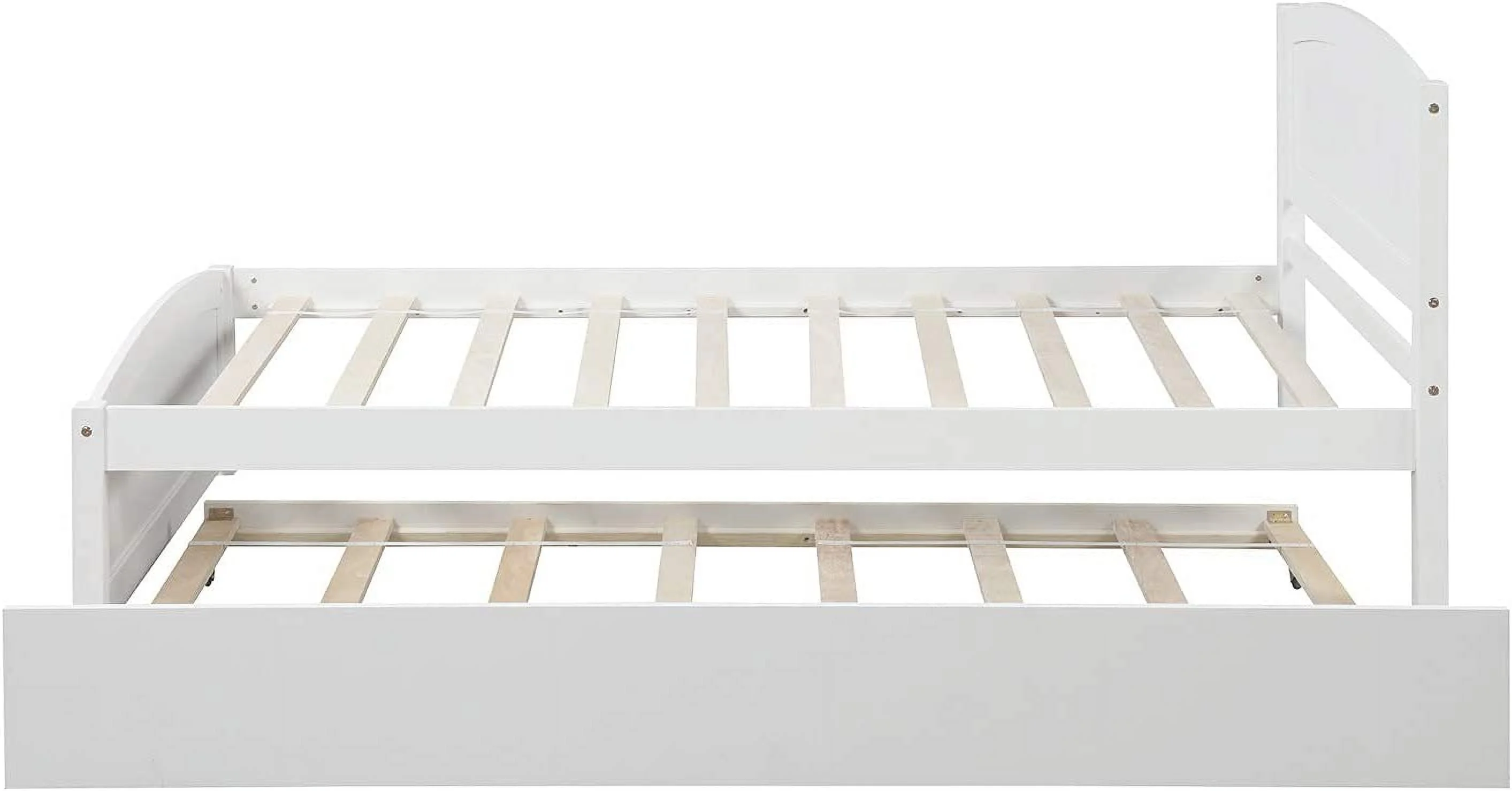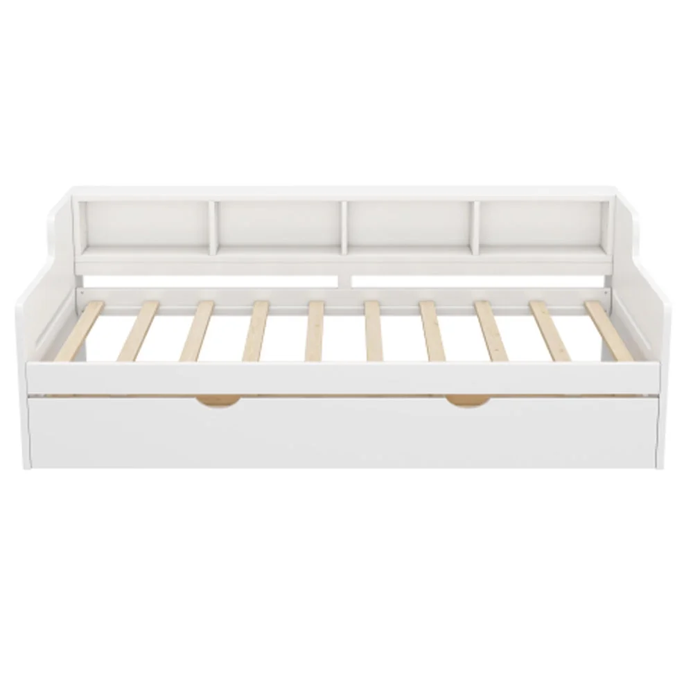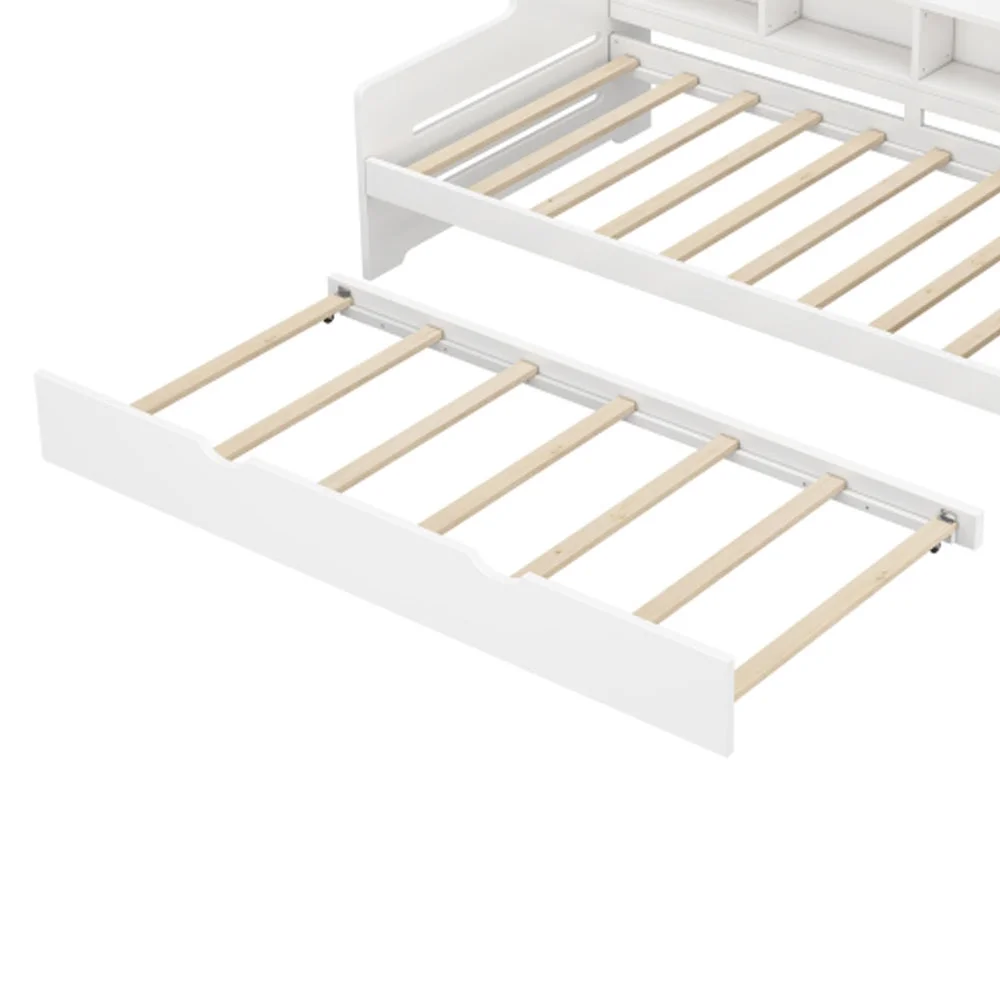 Twin Size Wooden Day Bed with Trundle for Guest Room, Small Bedroom, Study Room, White