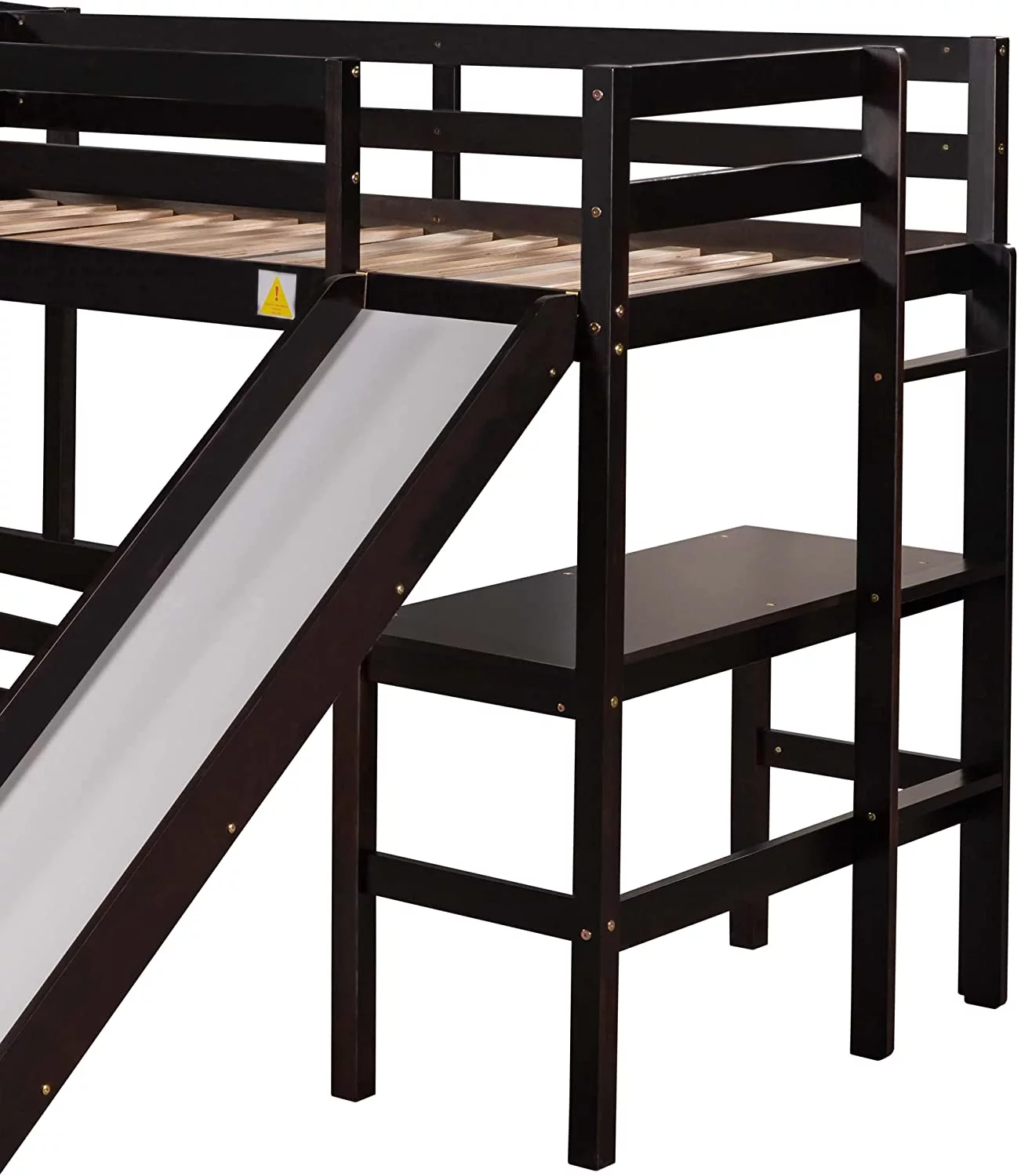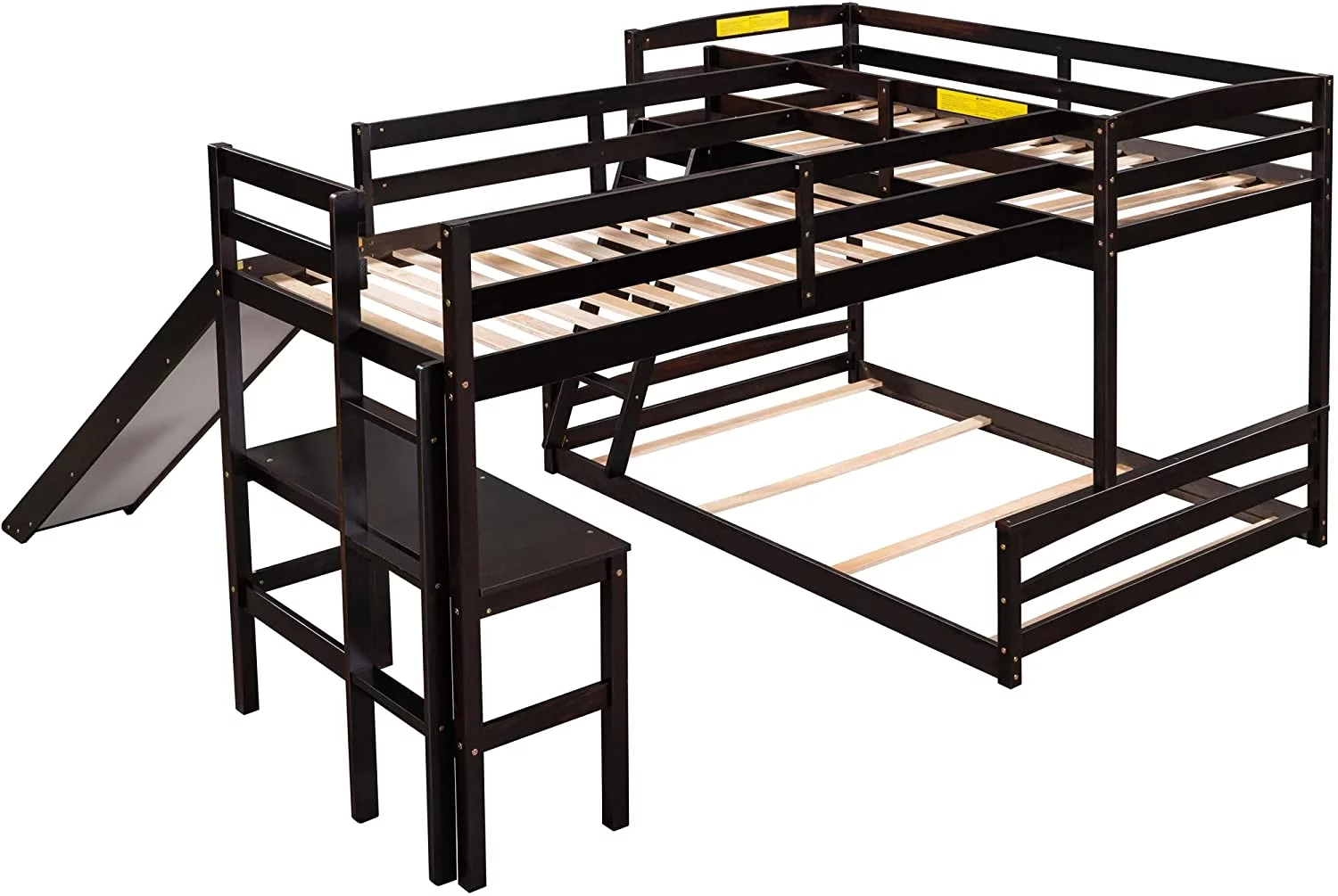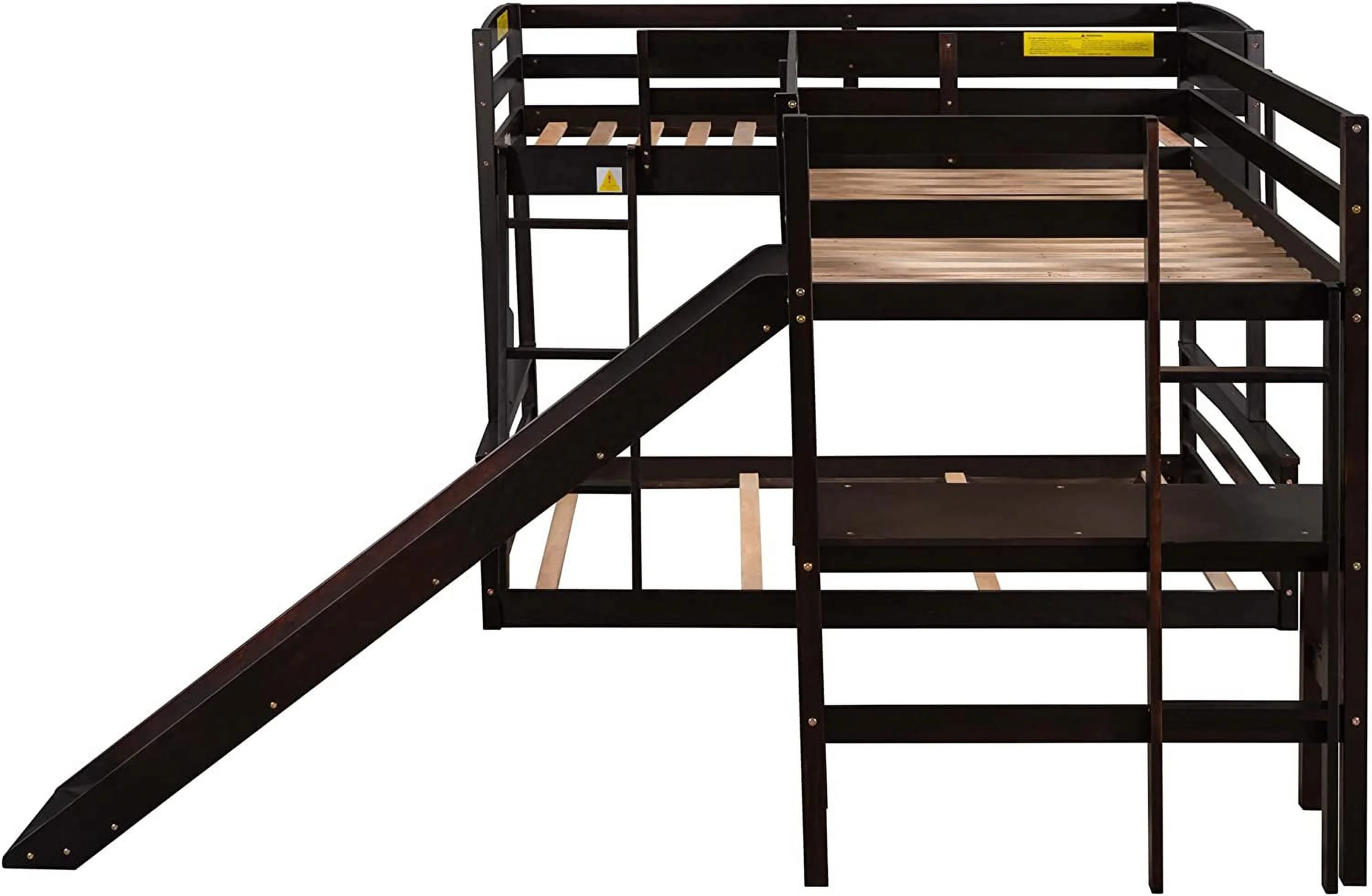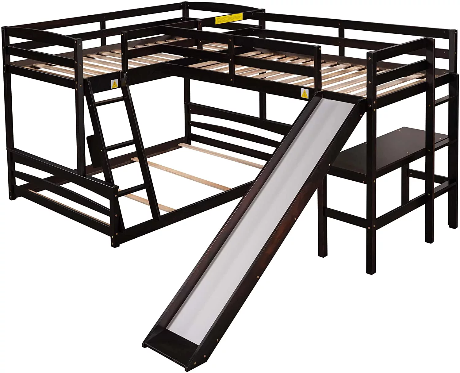 L Shaped Bunk Beds For 3, Wooden Triple Bunk Bed With Slide And Desk, Over Full Bunk Bed & Size Loft Bed For Kids Boys Girls (Espresso)
