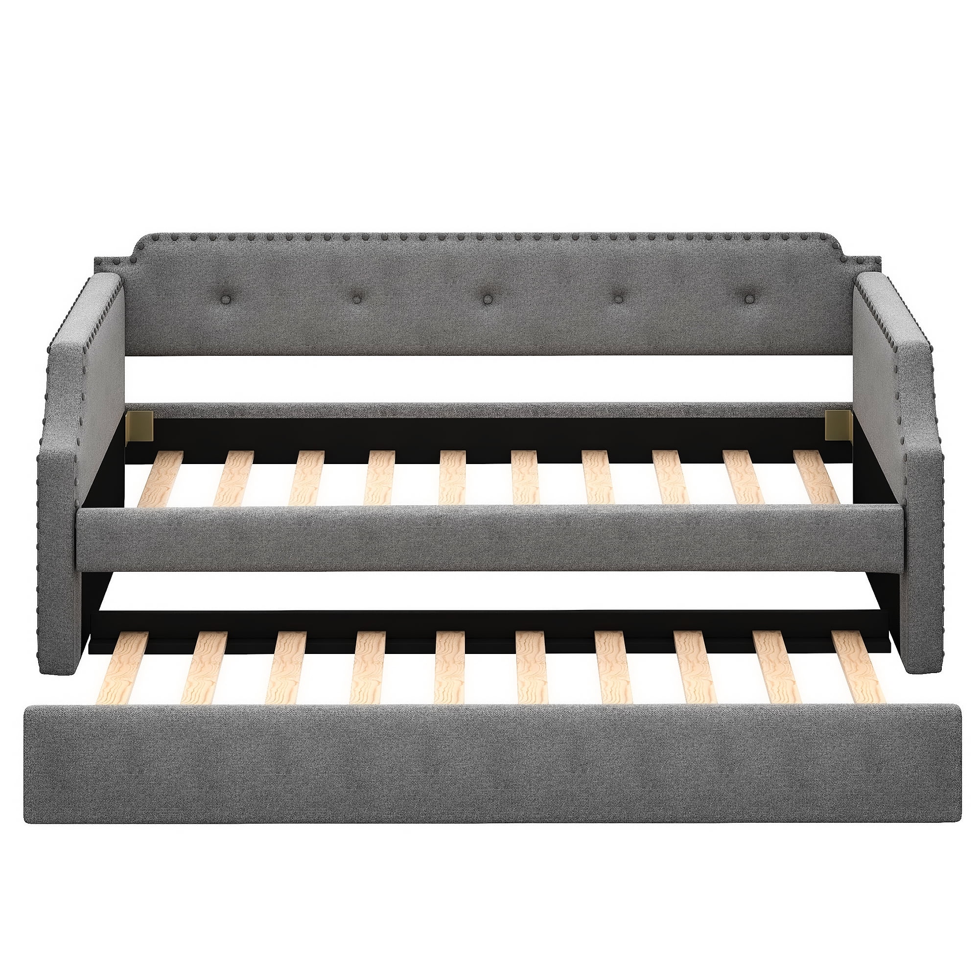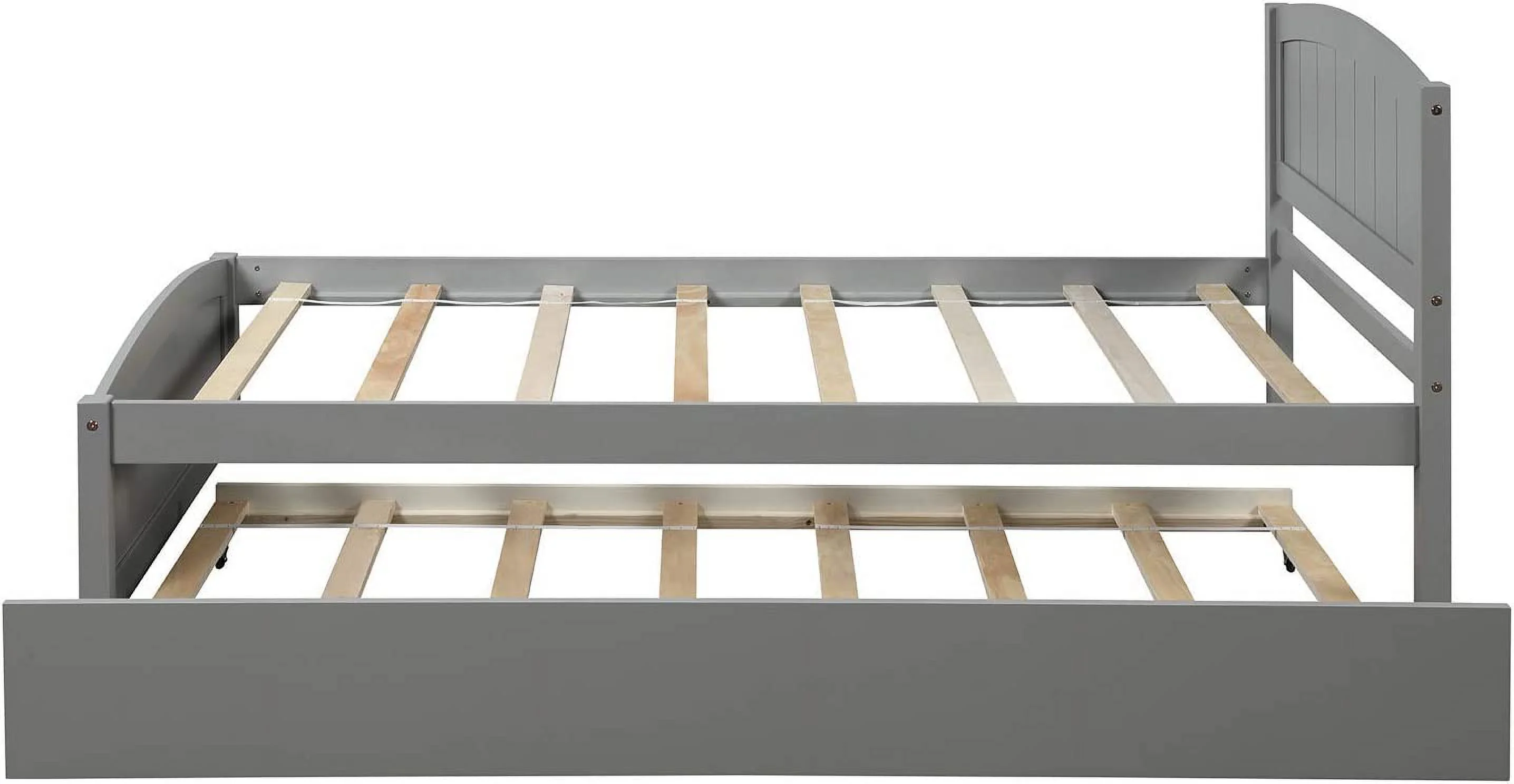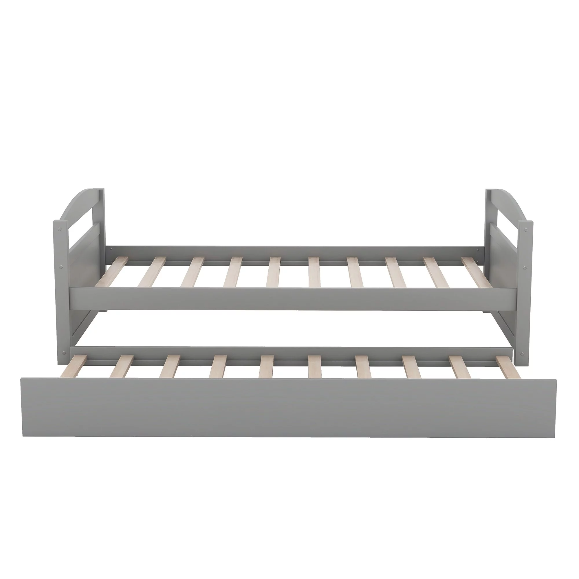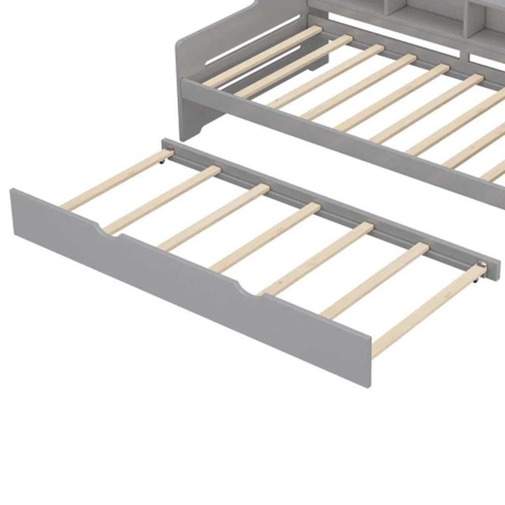 Twin Size Wooden Day Bed with Trundle for Guest Room, Small Bedroom, Study Room, Gray