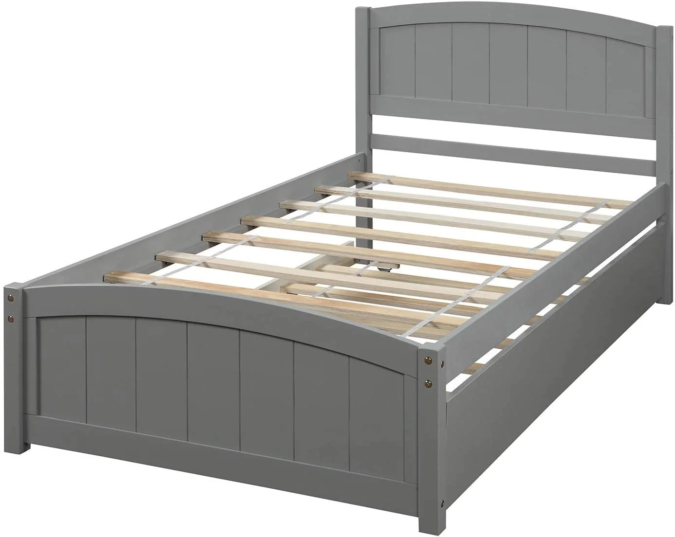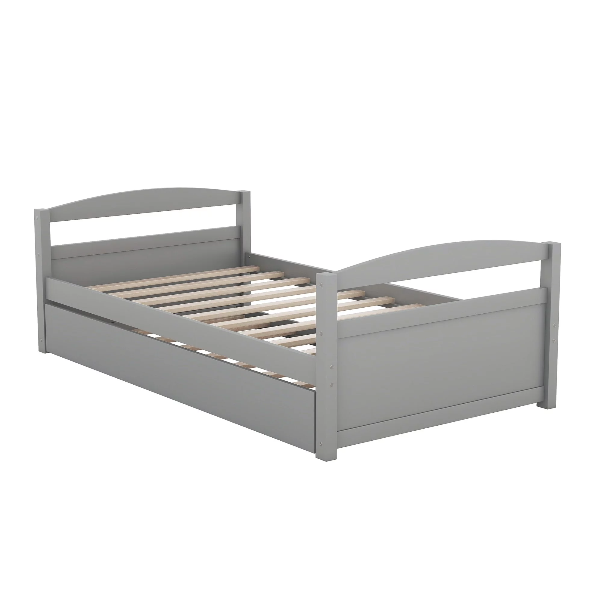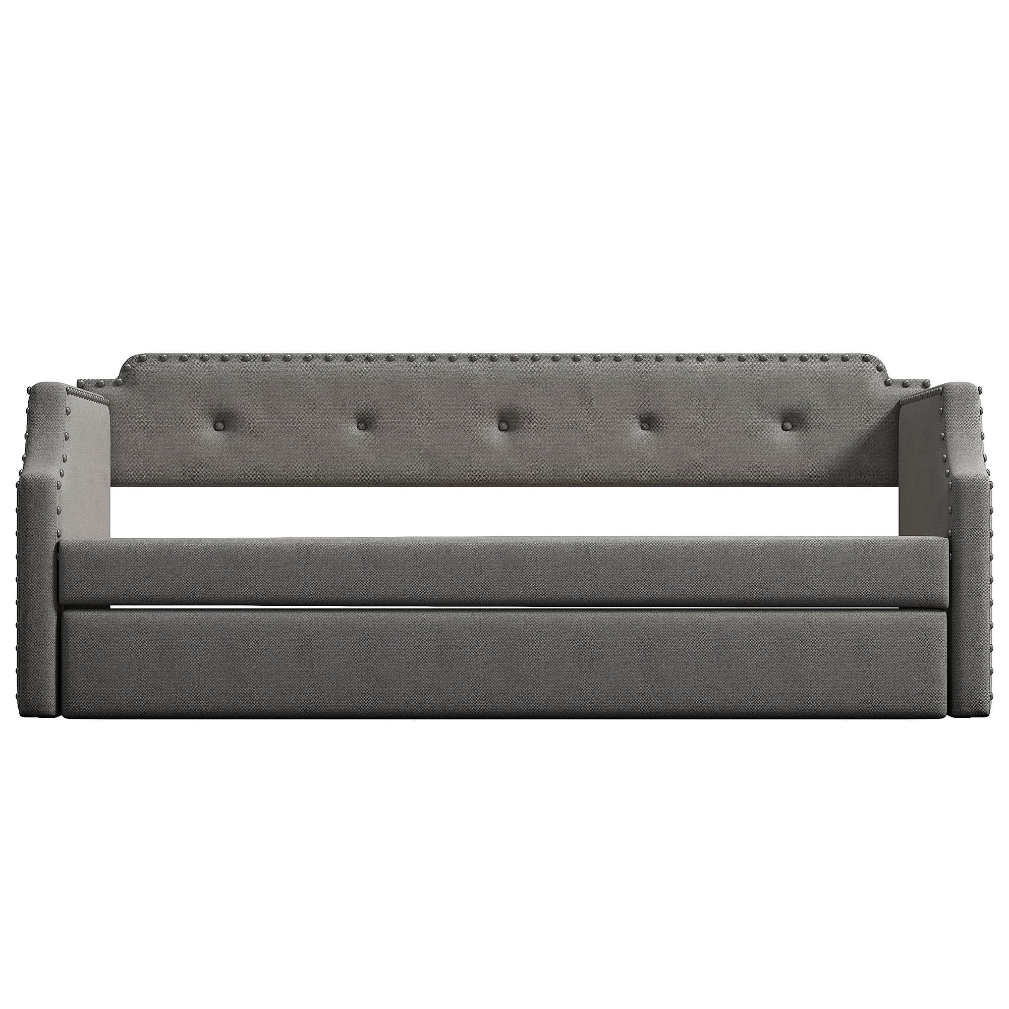 Twin Size Wooden Day Bed with Trundle for Guest Room, Small Bedroom, Study Room, Gray