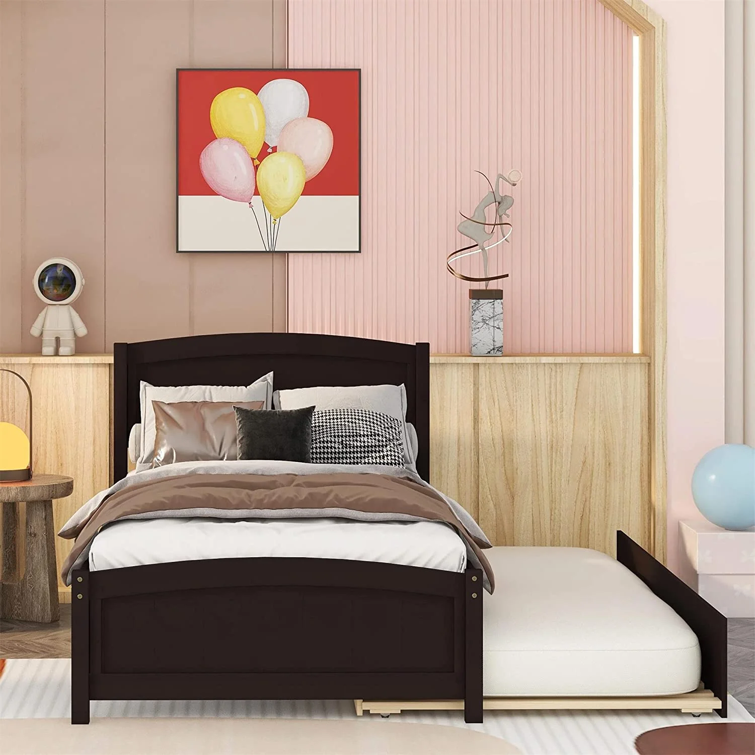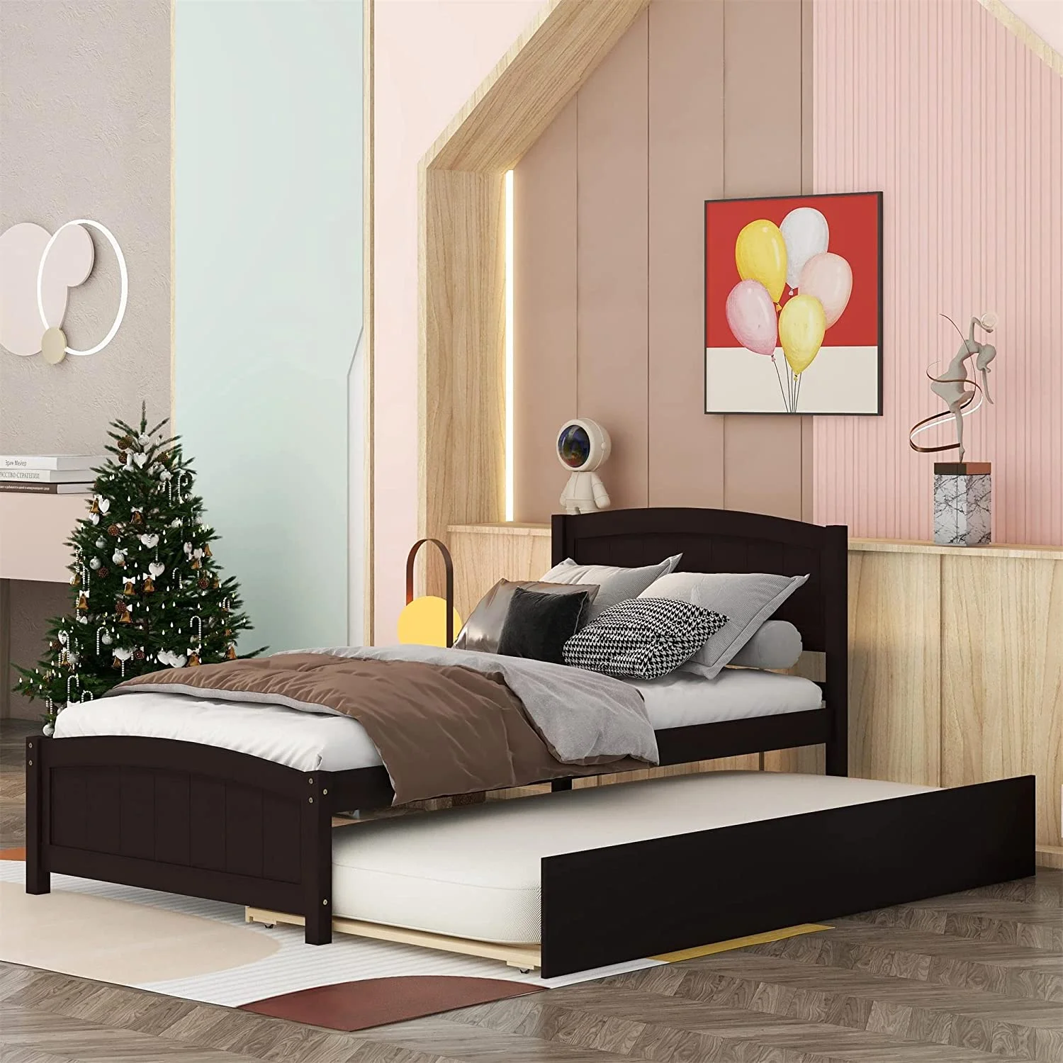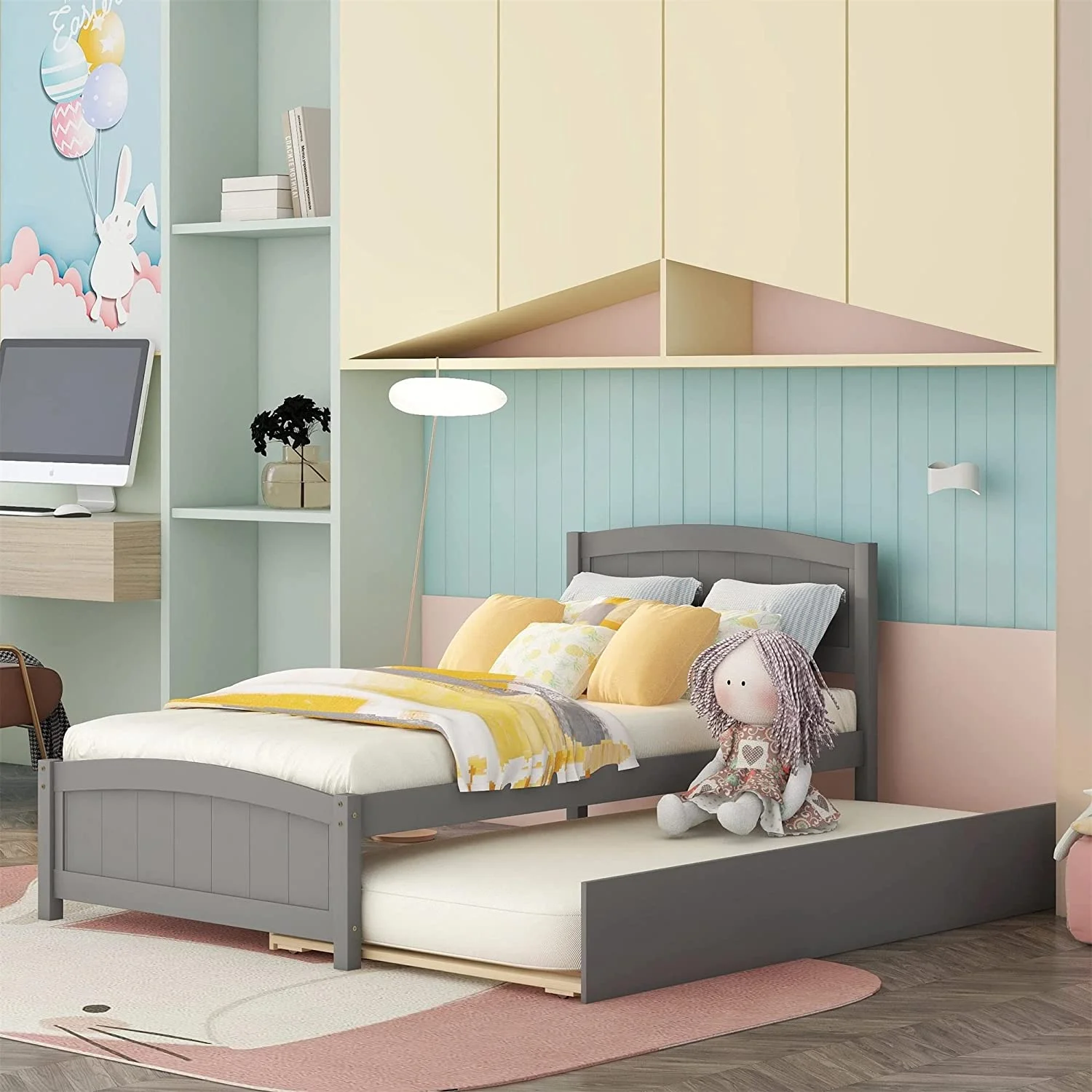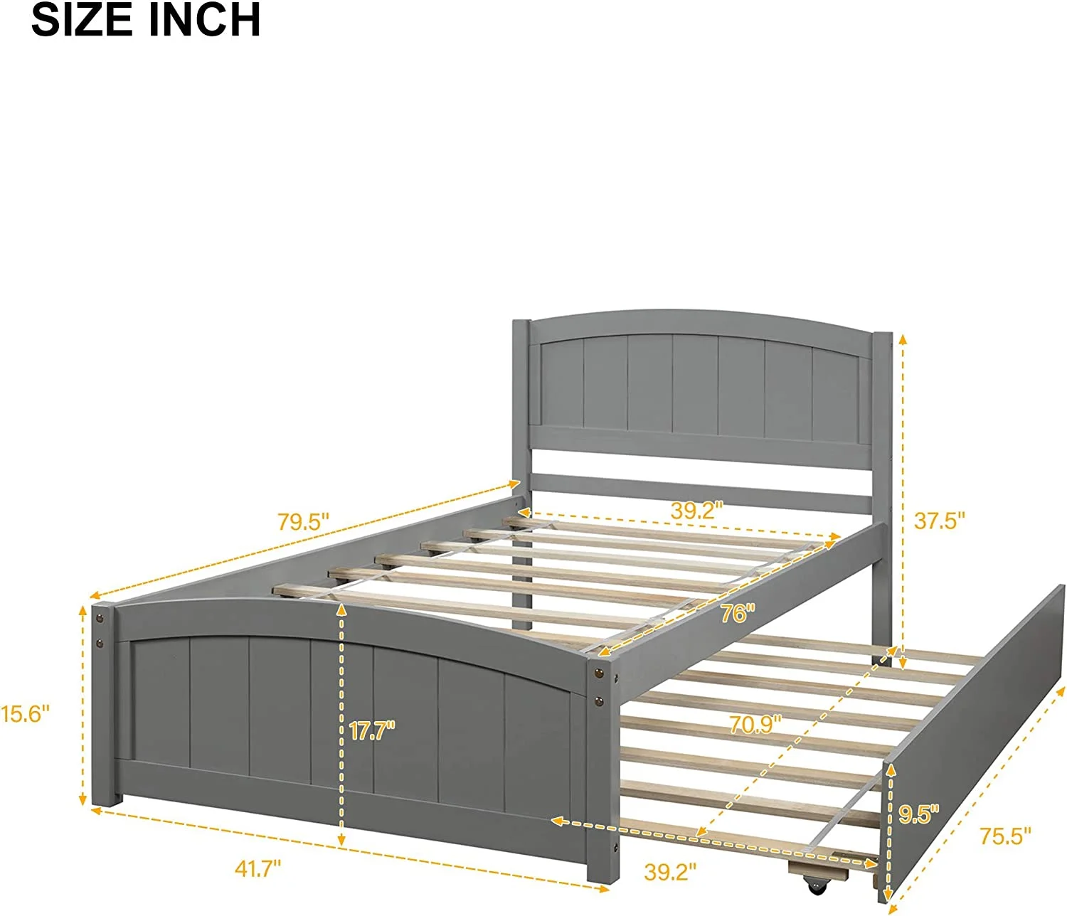 Twin Size Wooden Day Bed with Trundle for Guest Room, Small Bedroom, Study Room, Gray