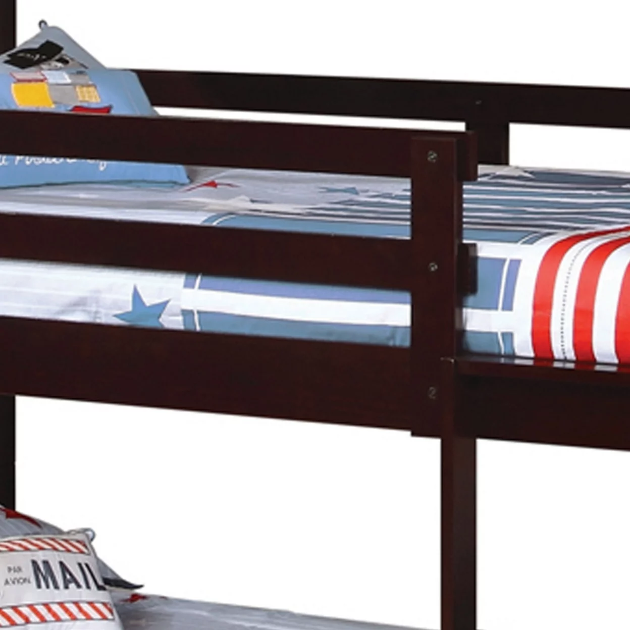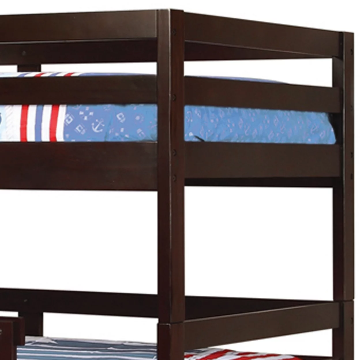 Transitional Style Wooden Triple Twin Bunk Bed with Guard Rails Brown- Saltoro Sherpi