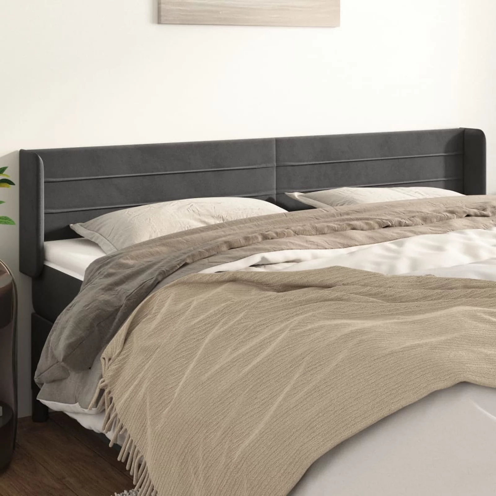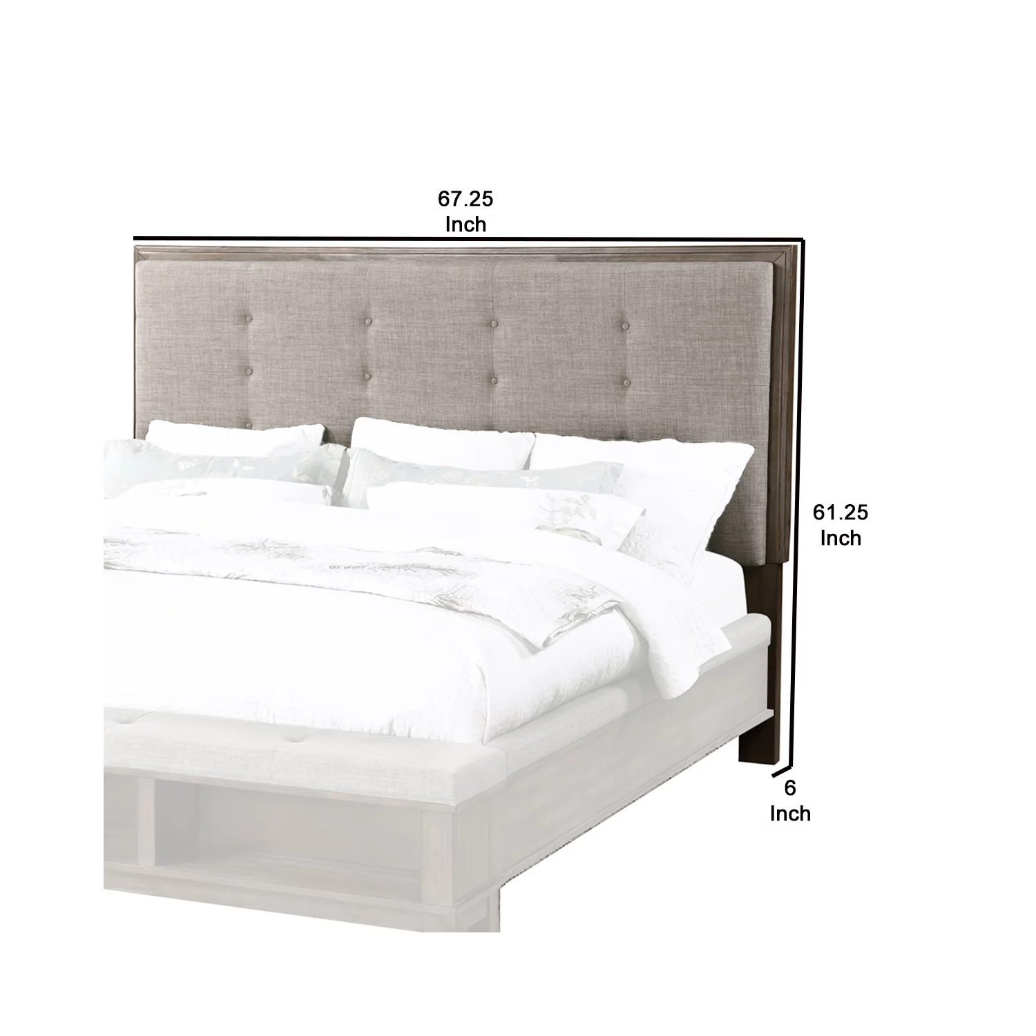 Benjara BM219440 Wooden Headboard with Button Tufting & Padding, Gray & Brown