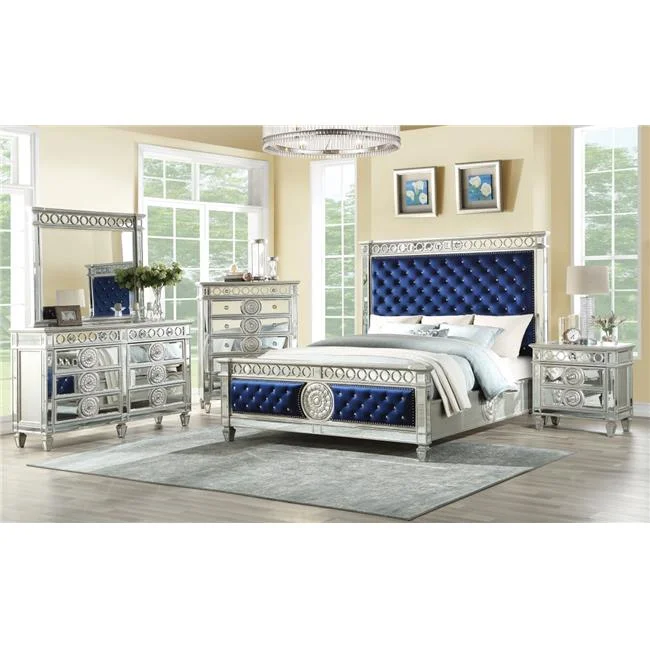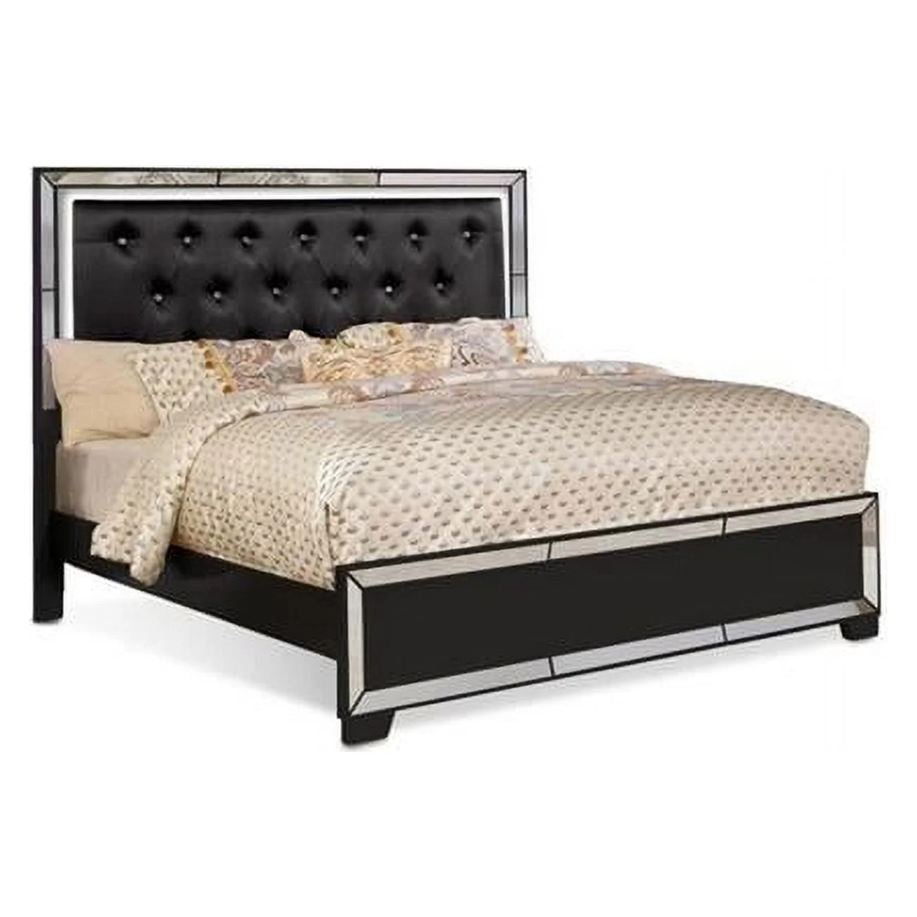 Eli Crystal Tufted Bed - LED, Mirrored Inlays & Wood & Velvet, Black - Queen Size