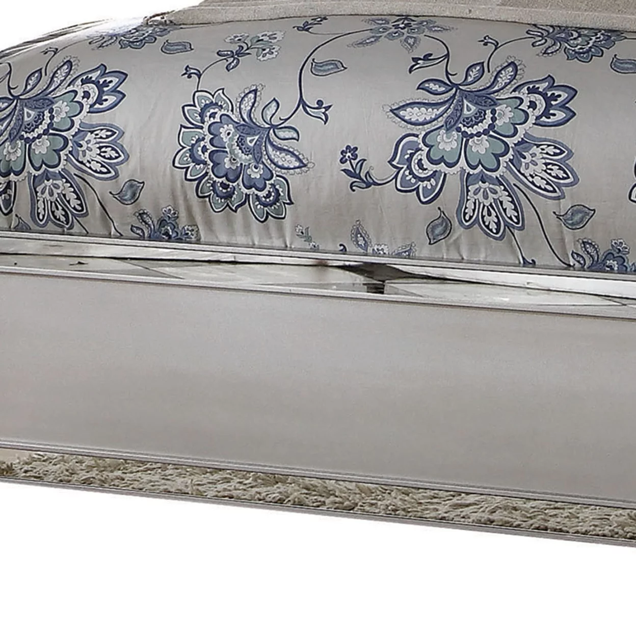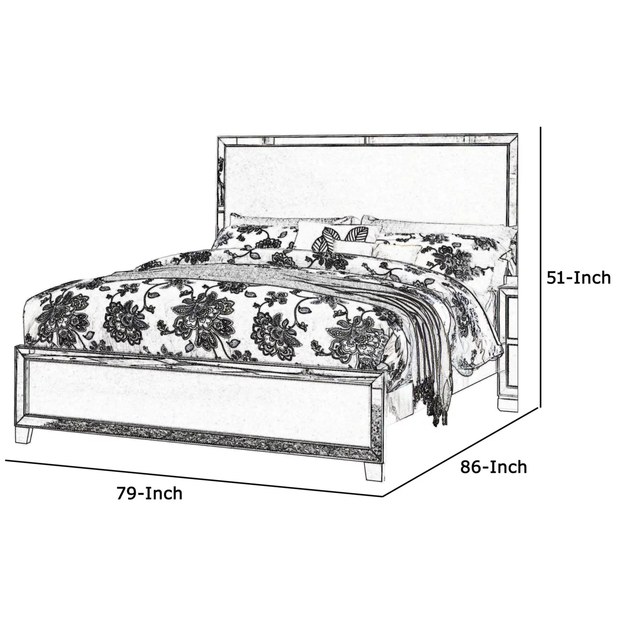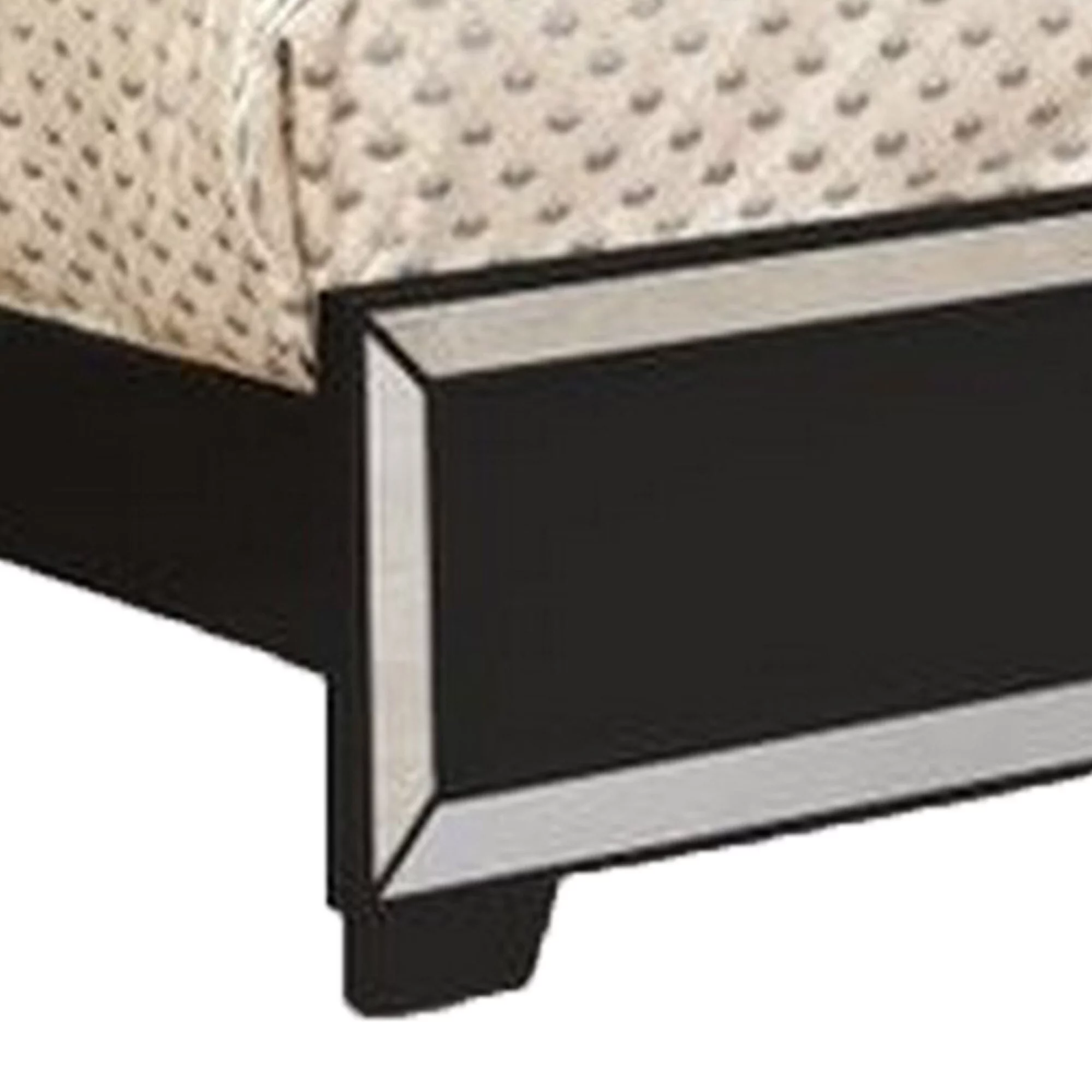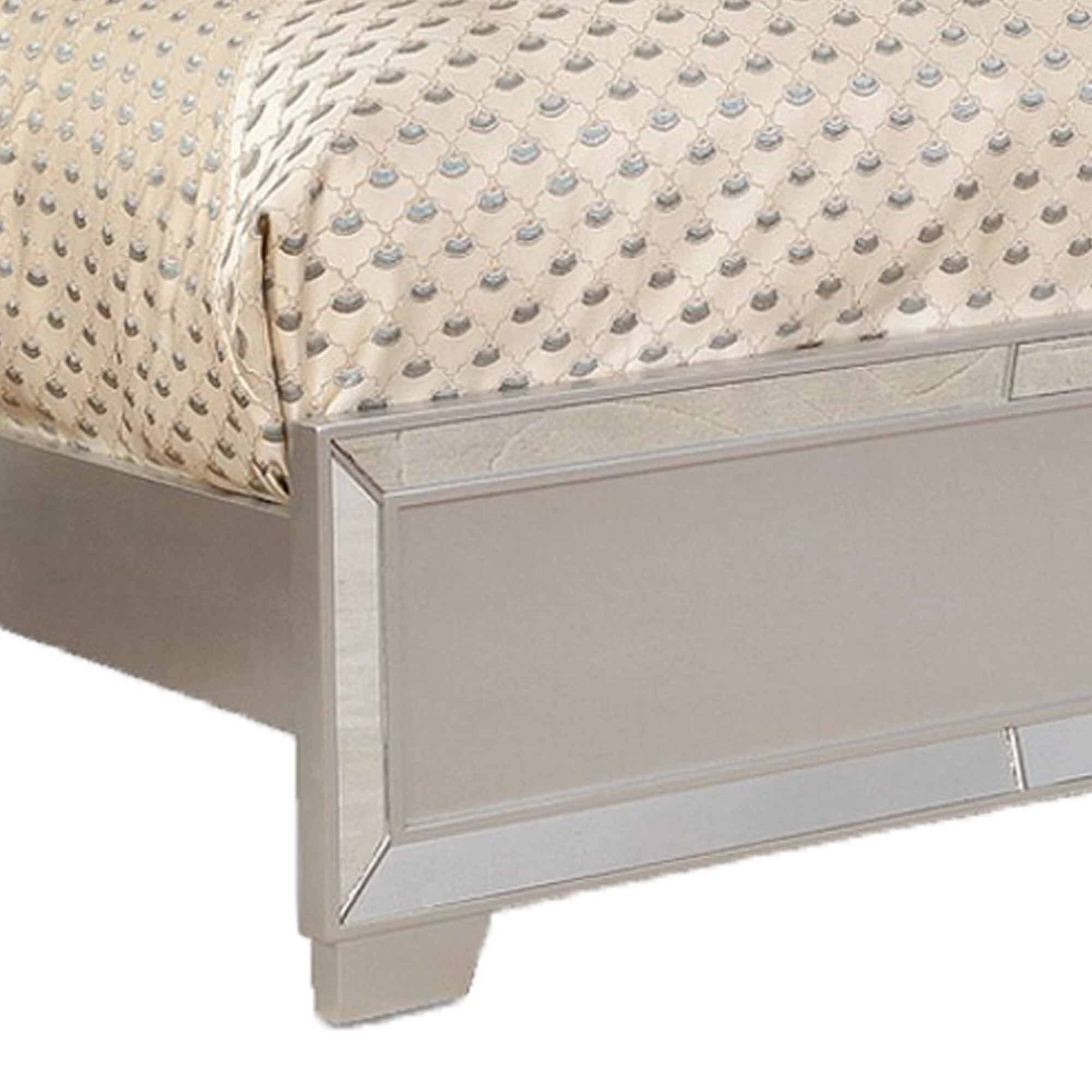 Panel Design Wooden Eastern King Bed with Mirror Trim Accents, Silver- Saltoro Sherpi
