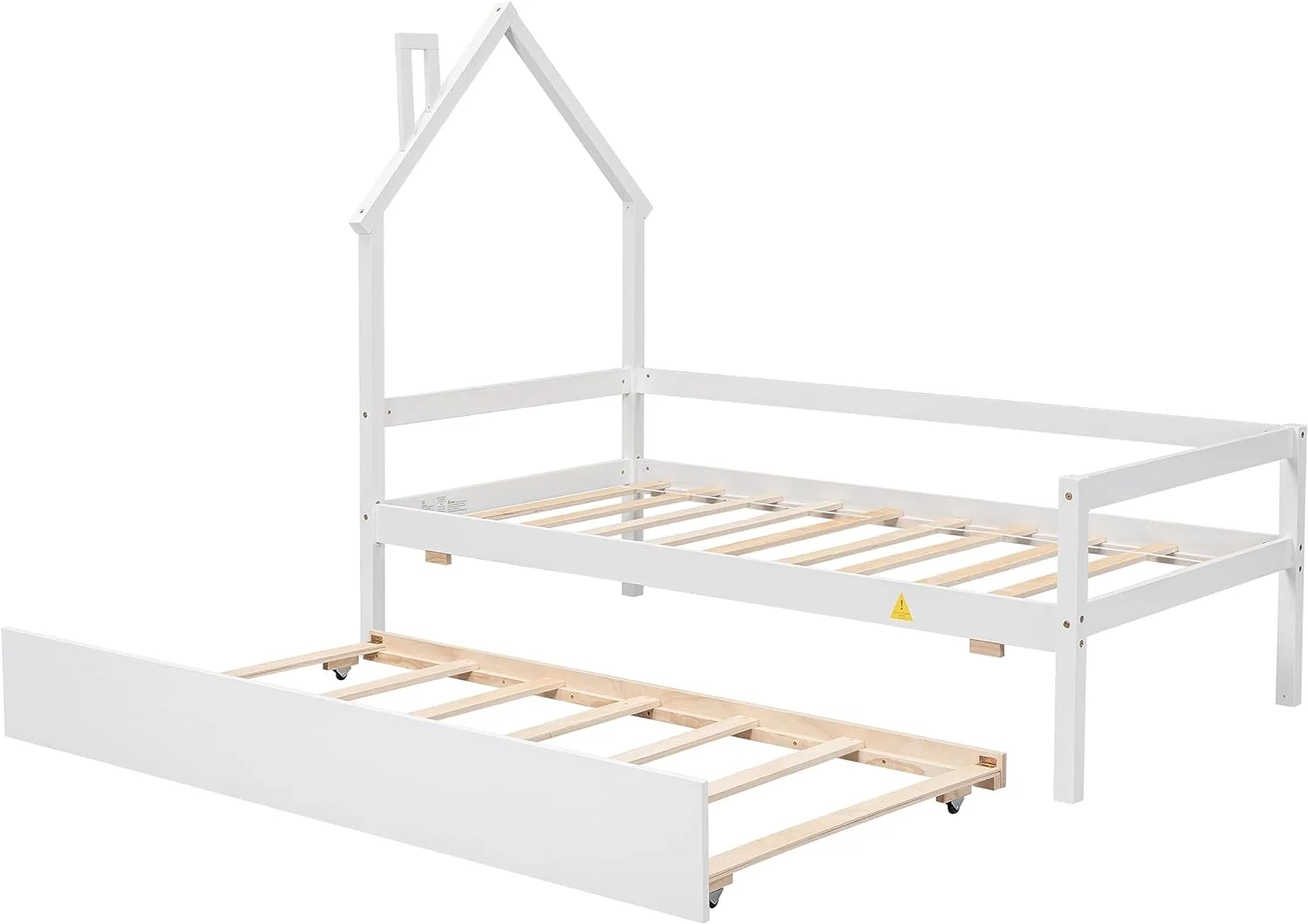 Size Platform Bed With House-Shaped Headboard, Wooden Daybed Frame With Trundle And Guardrails For Kids, Boys,Girls(White)