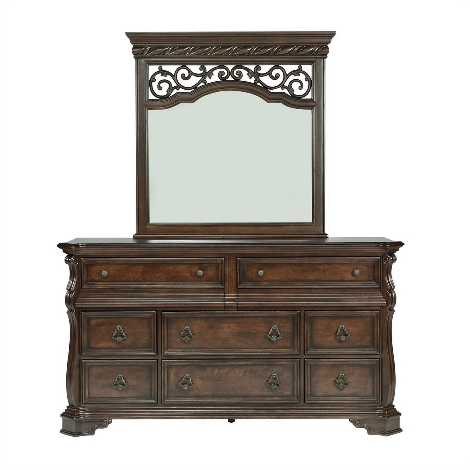 American Woodcrafters Rodanthe 8-Drawer Wood Dresser and Mirror in Tobacco Brown