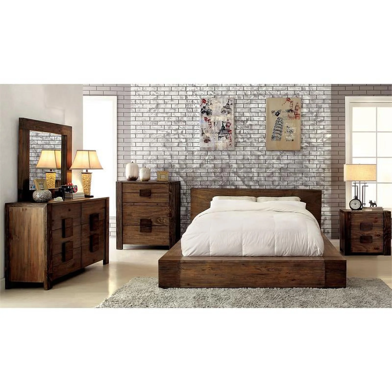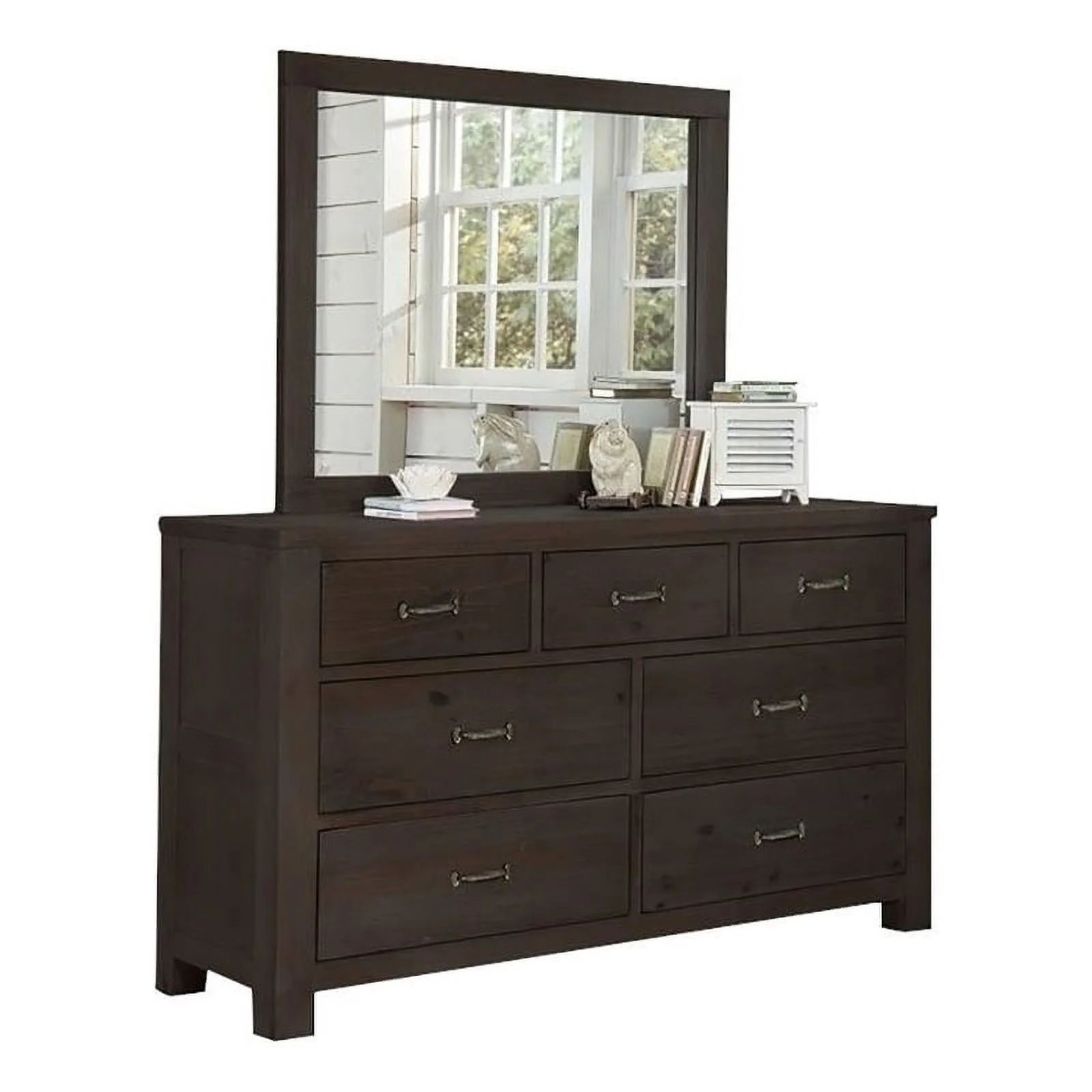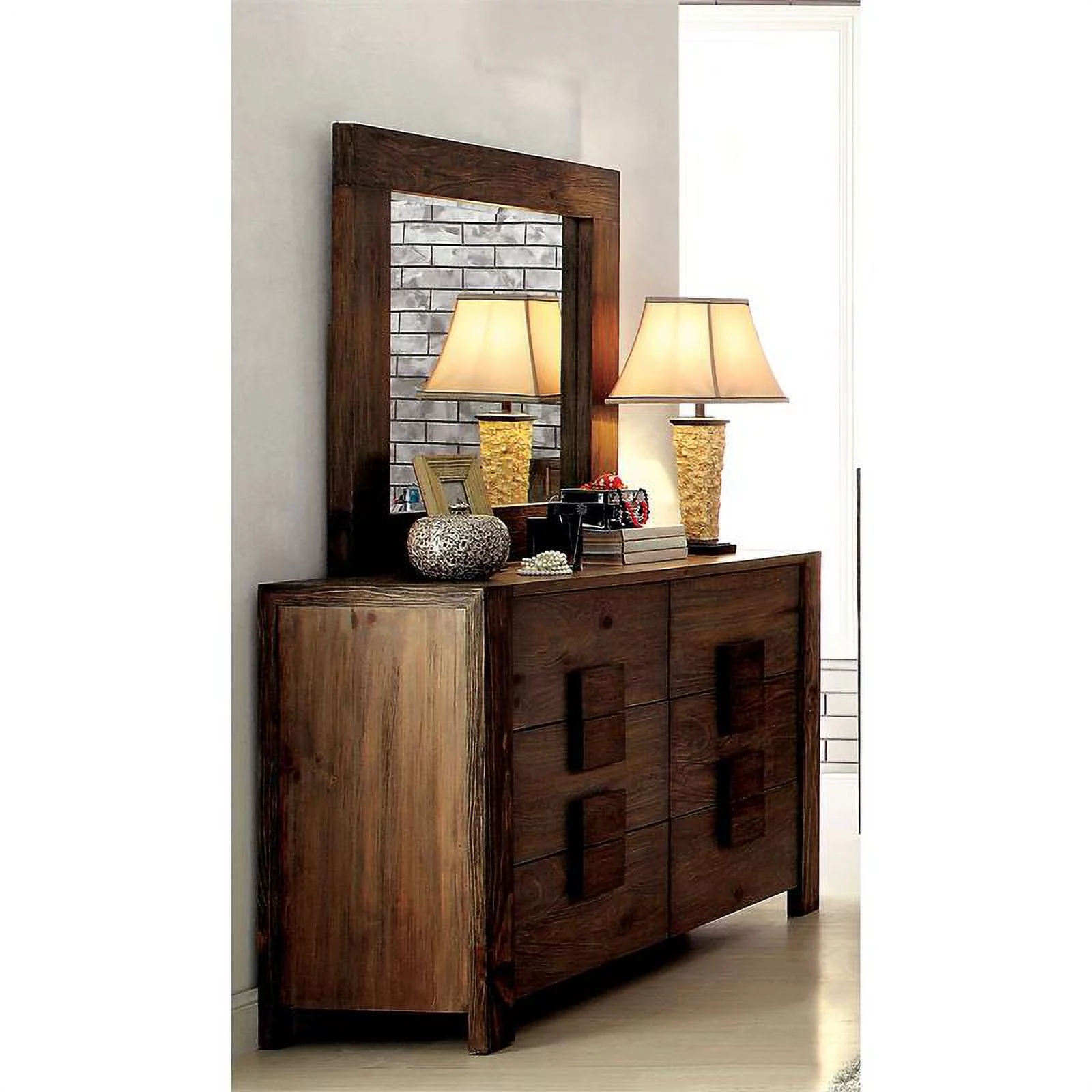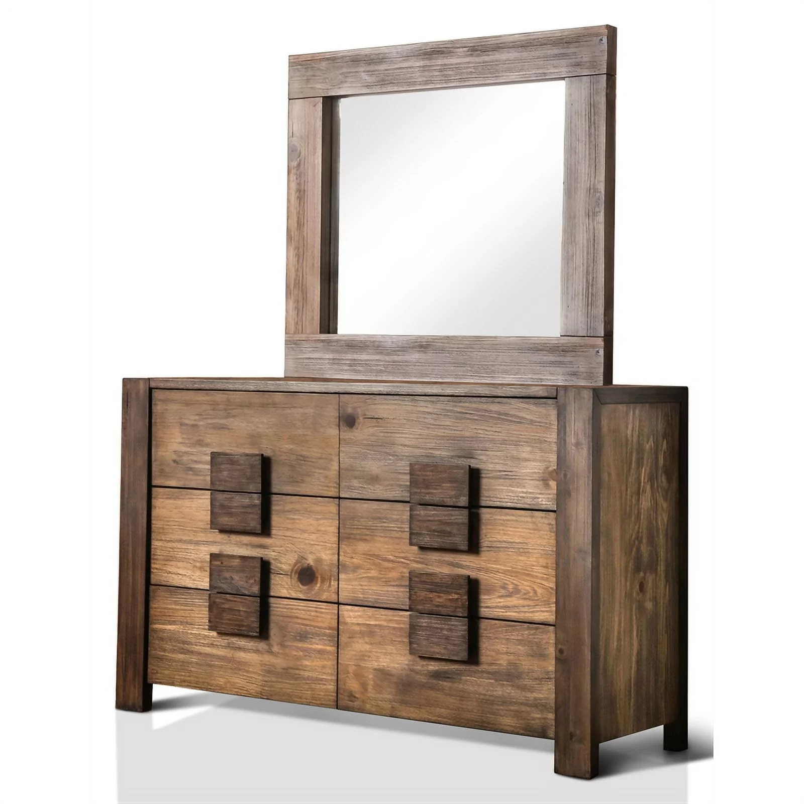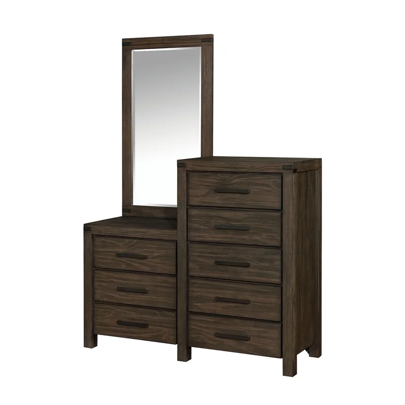 Furniture of America Gamora Wood Dresser with Mirror in Brown Cherry