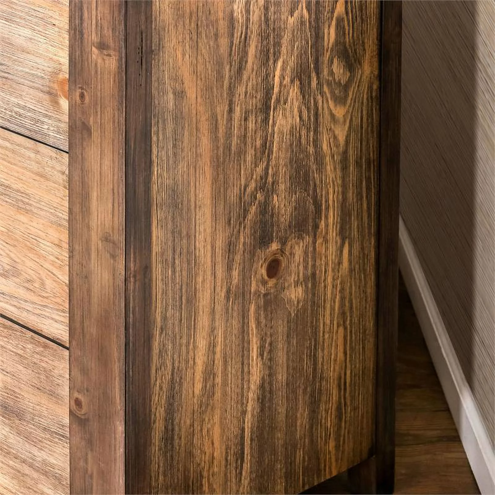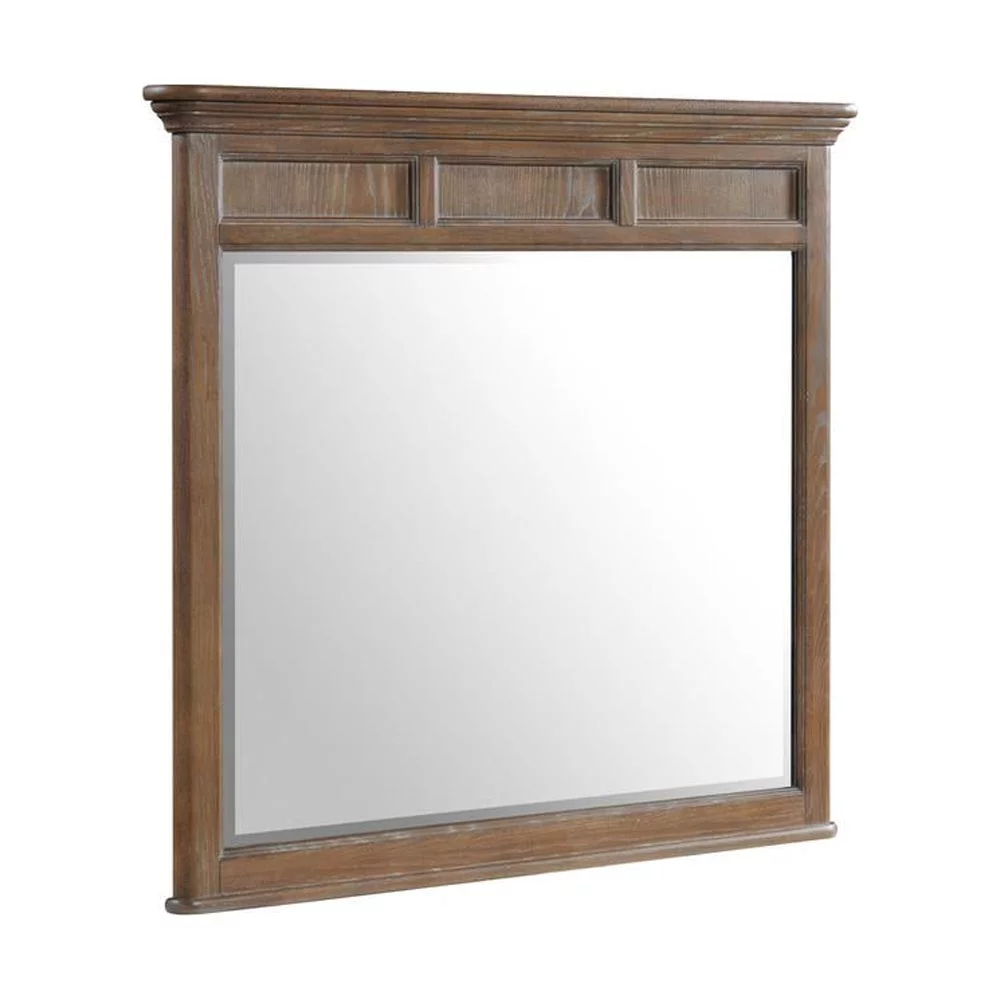 Farmhouse Style Square Wooden Frame Mirror with Grain Details Brown- Saltoro Sherpi