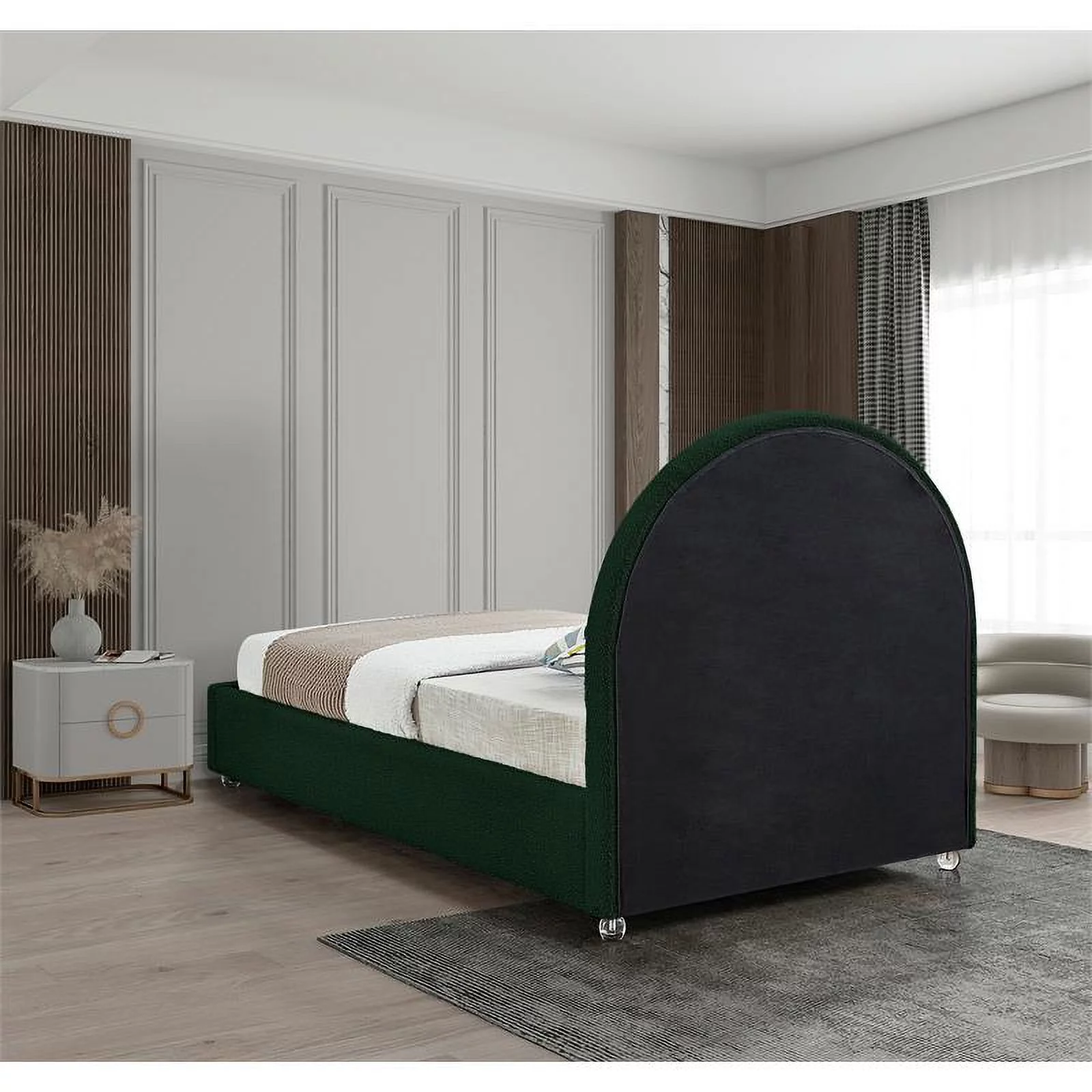 CoSoTower Twin Size Wood Platform Bed With House-Shaped Headboard, Green