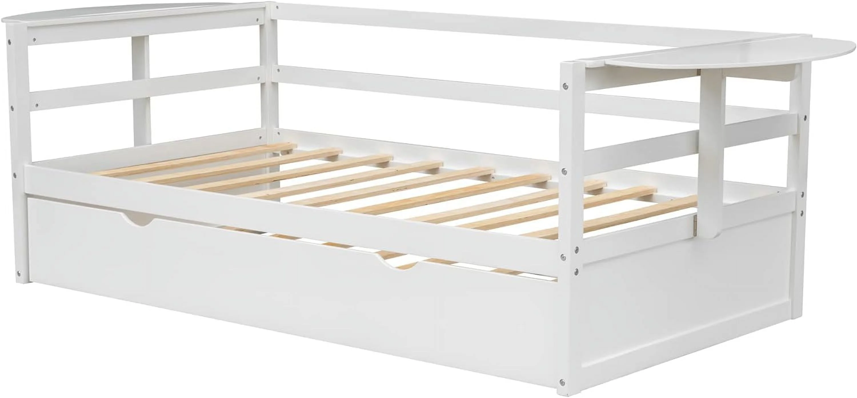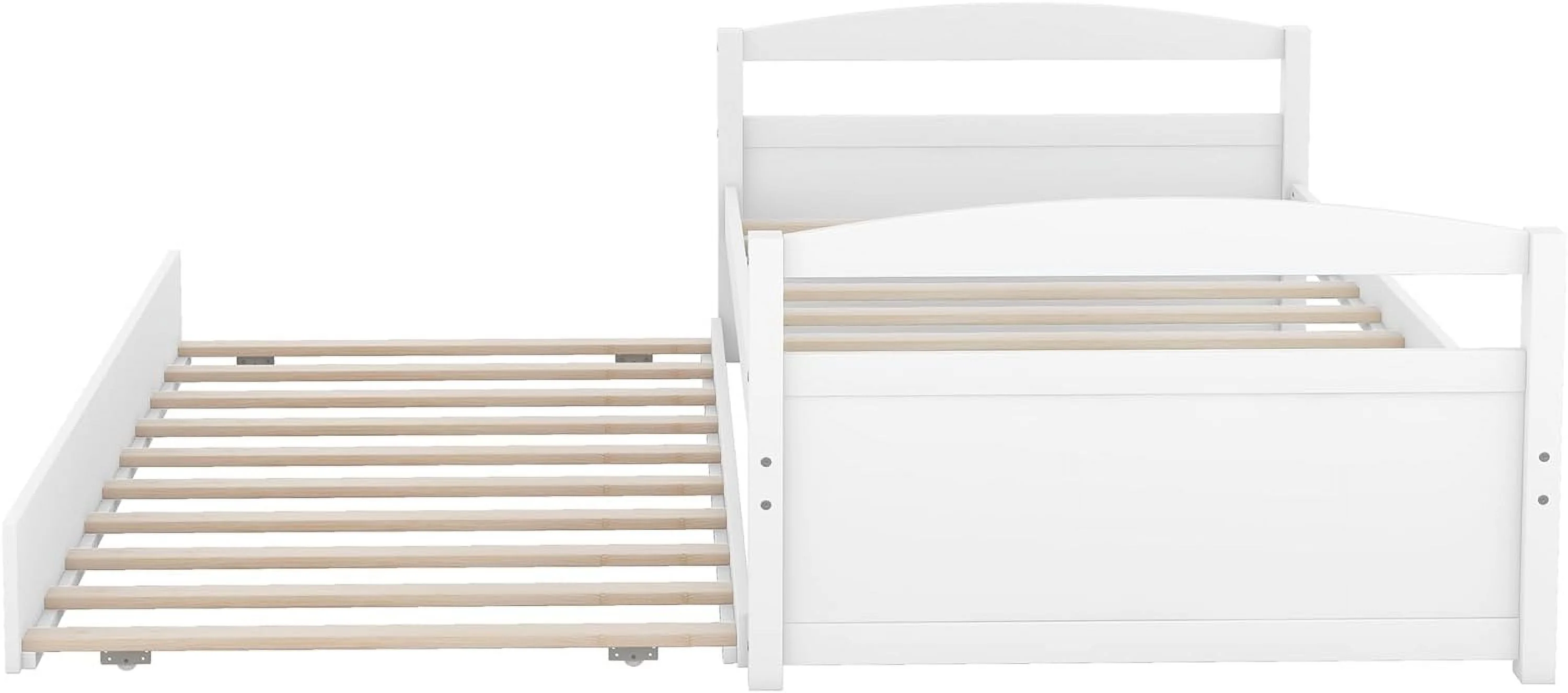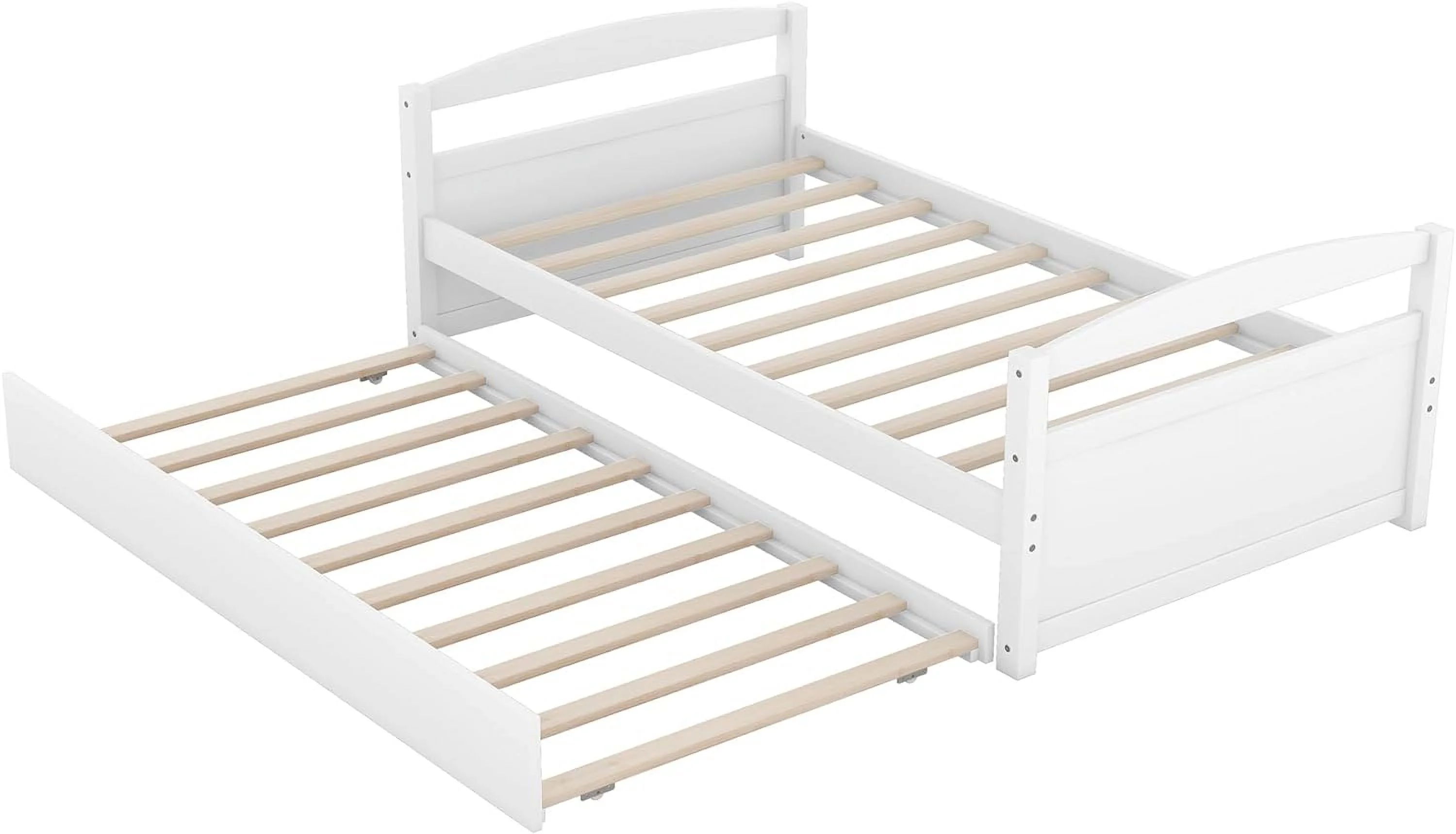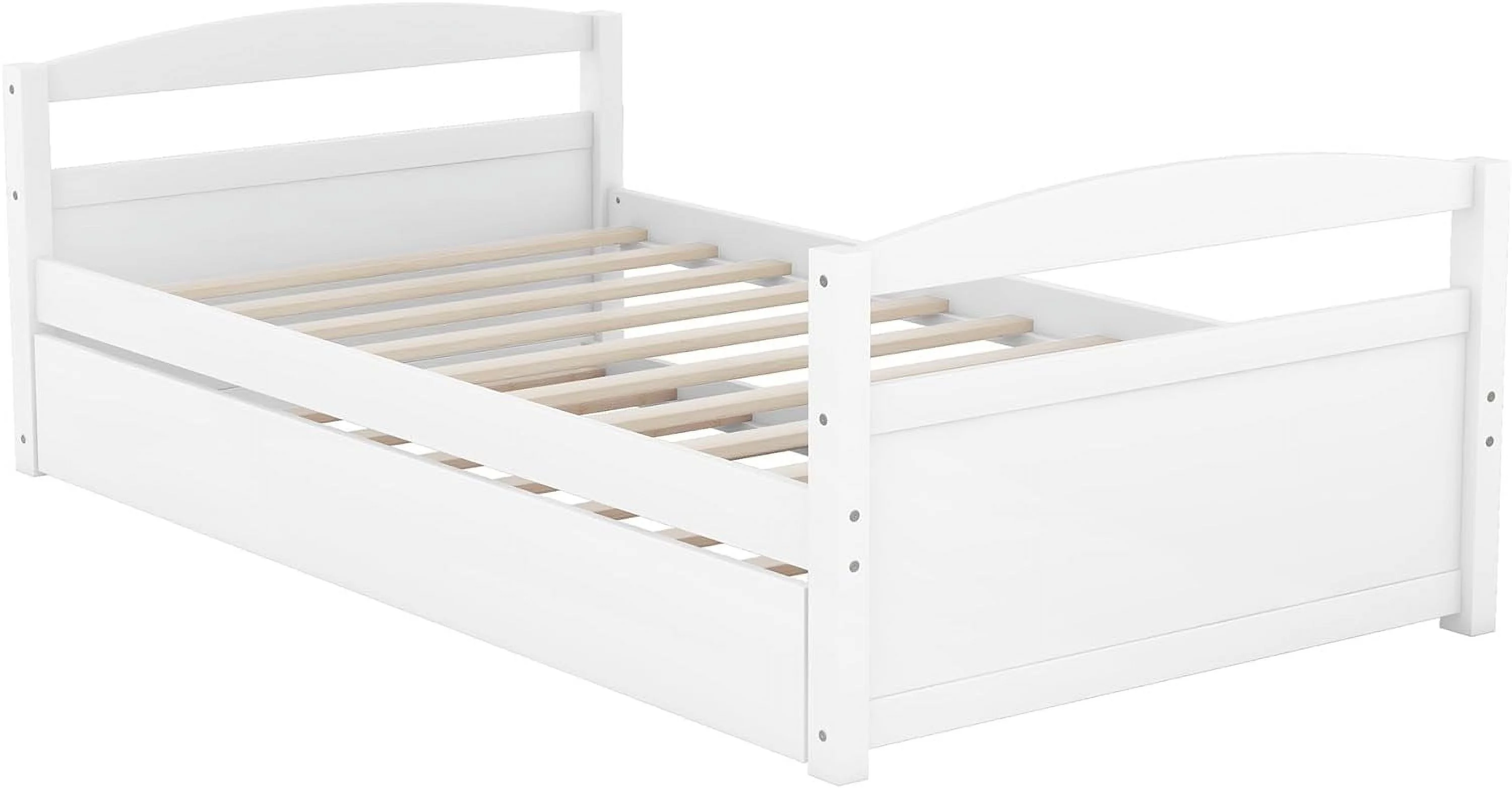 Size Daybed With Trundle, Wood Platform Bed Frame, Slats Support, White