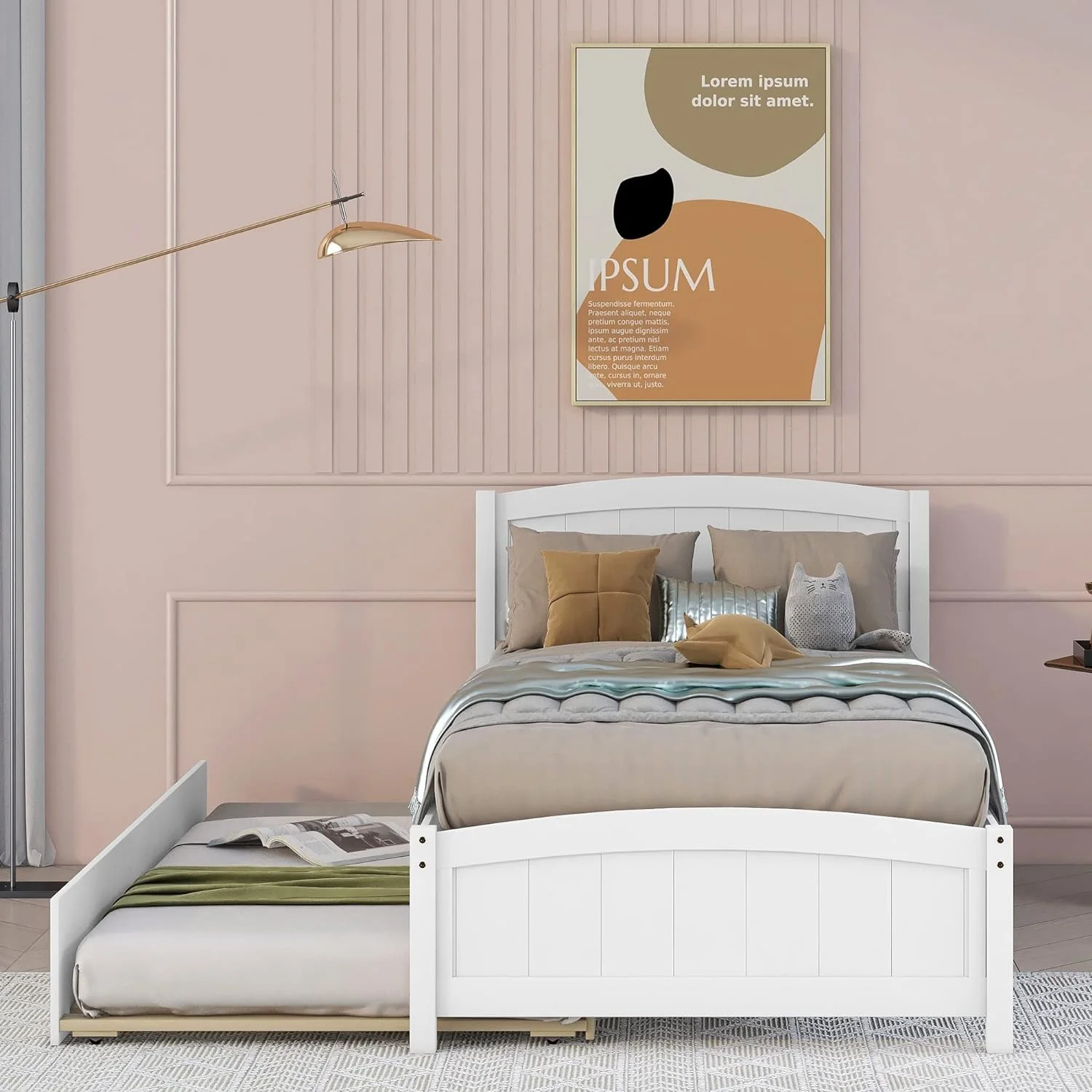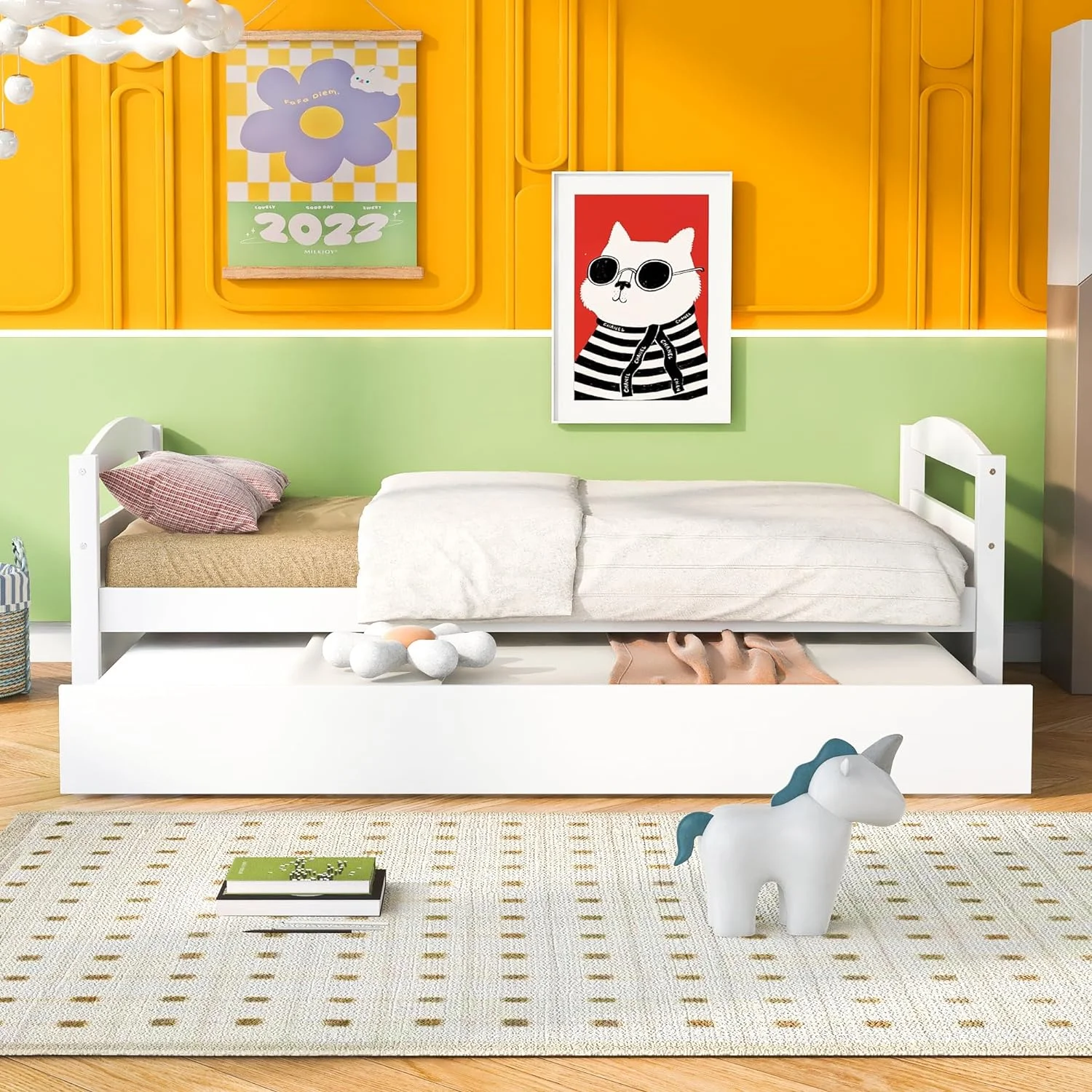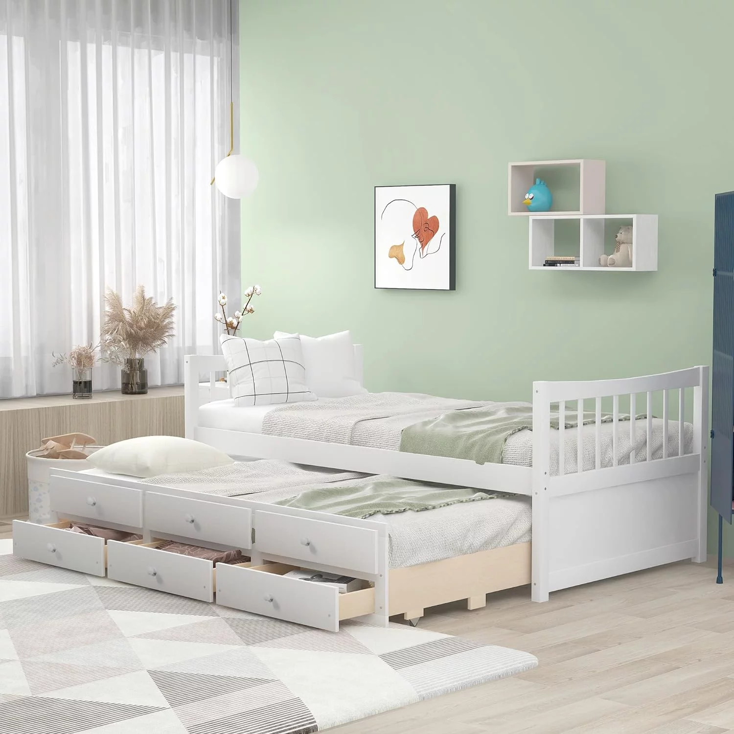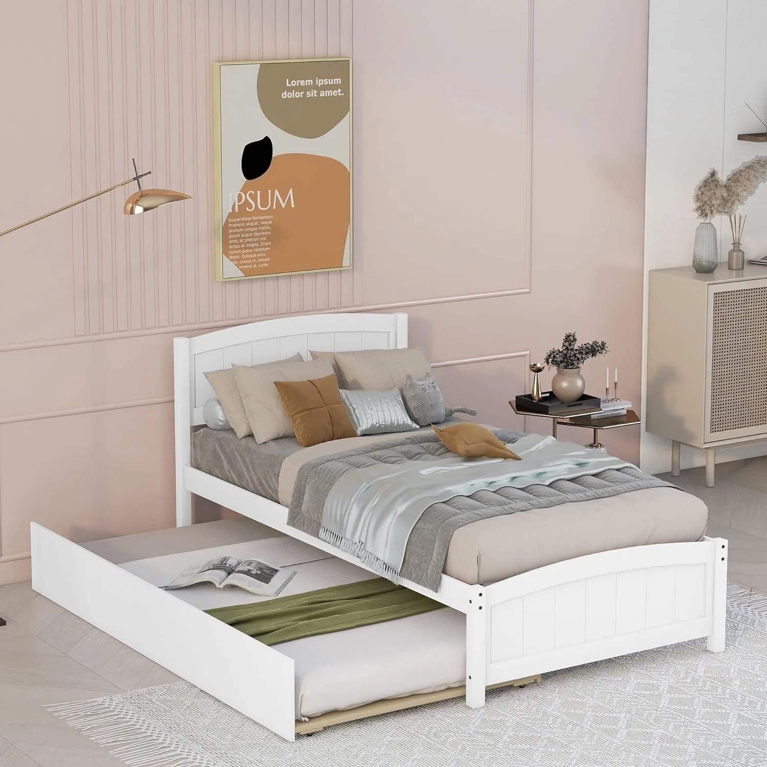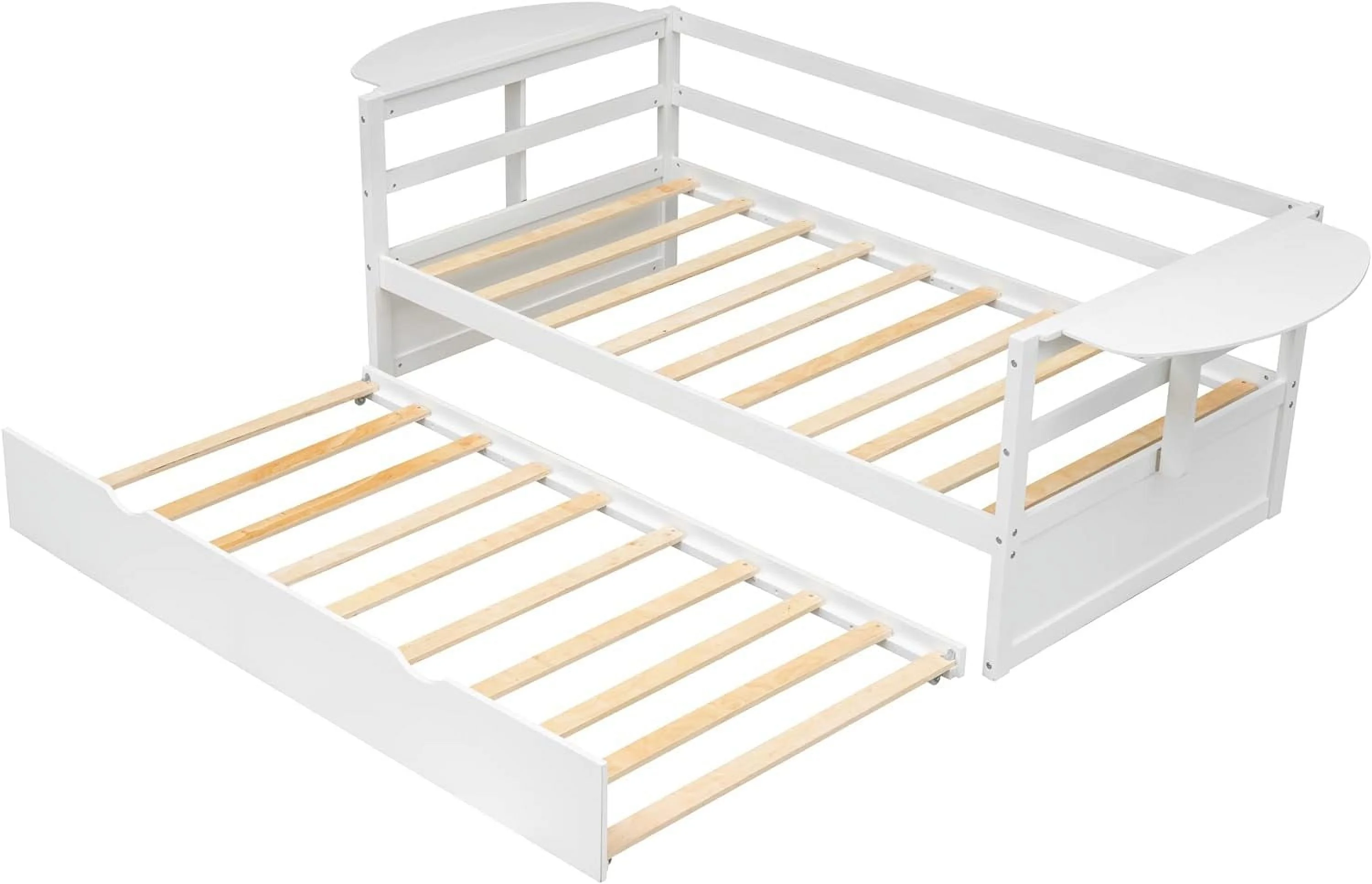Size Daybed With Trundle, Wood Platform Bed Frame, Slats Support, White