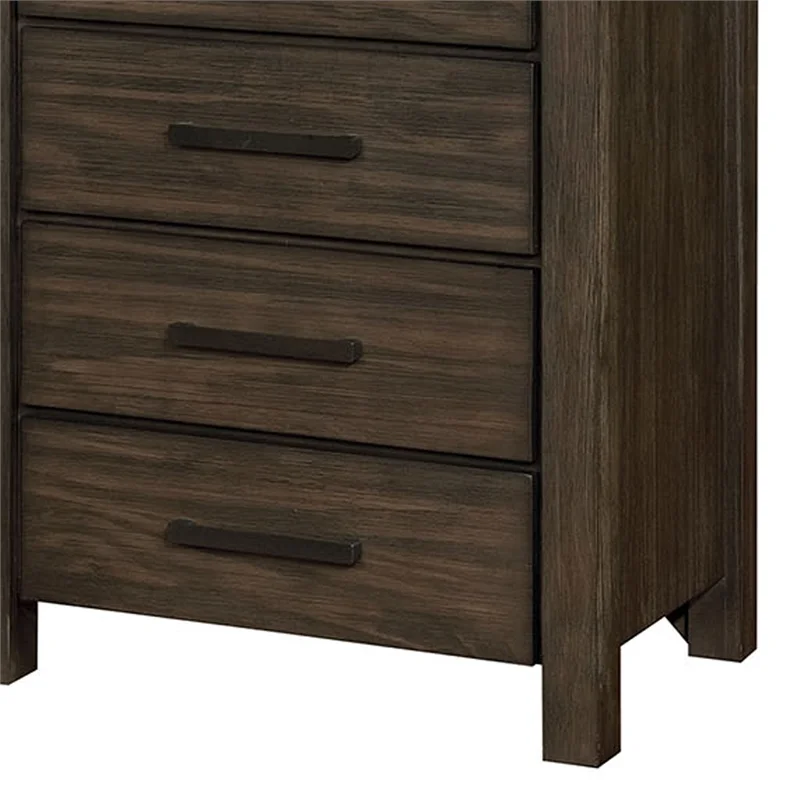 Benjara BM218517 Contemporary 5 Drawer Wooden Chest with Mirror Trim Details, Brown