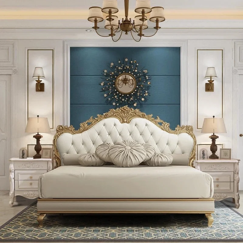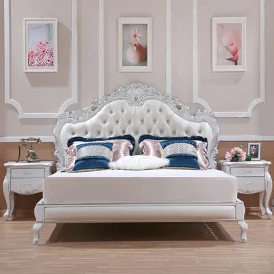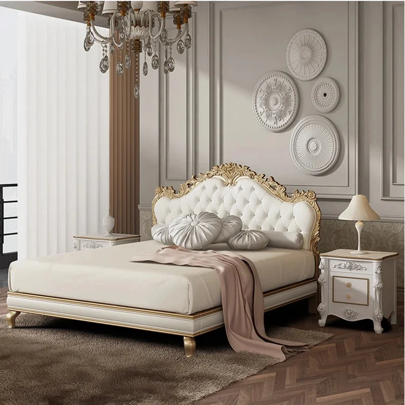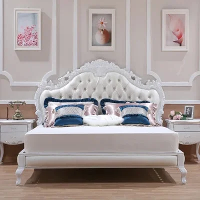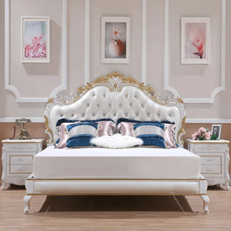 Queen Designer European Double Bed Modern Whitr Royal Bedframe King Size Double Bed Luxury Sleeping Cama Casal Bedroom Furniture