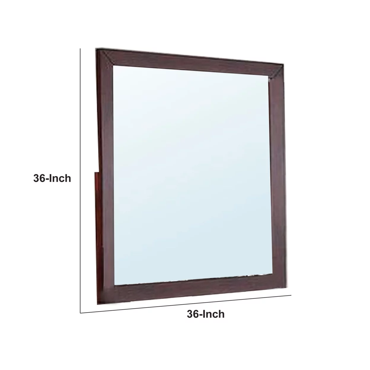Bran 36 x 36 Square Dresser Mirror, Pine Wood, Grain Details, Cherry Brown- Saltoro Sherpi