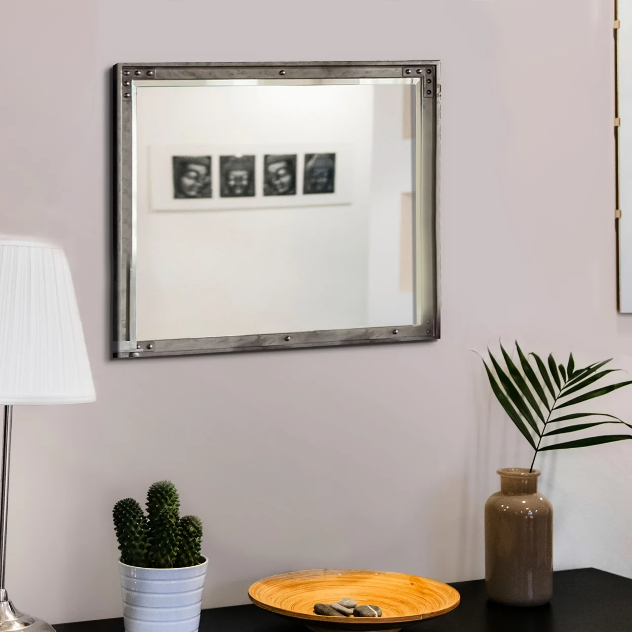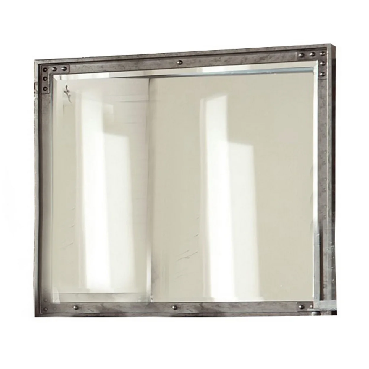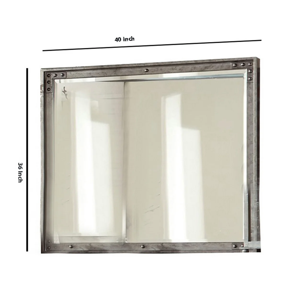 Industrial Style Wooden Dresser Mirror with Nail Accents, Gunmetal Brown- Saltoro Sherpi