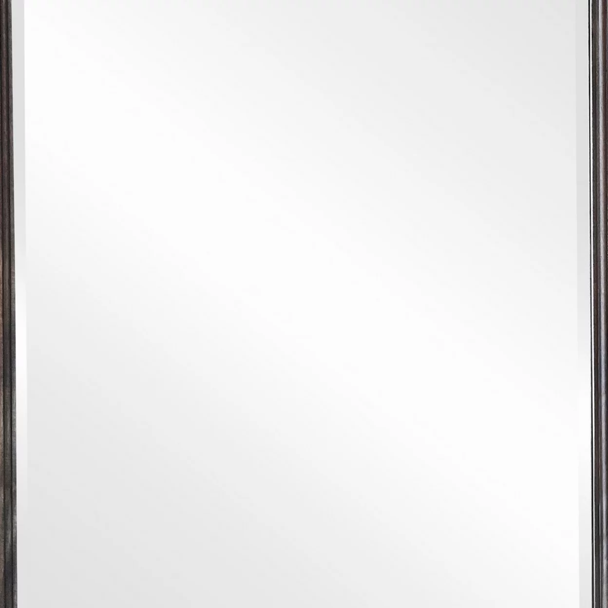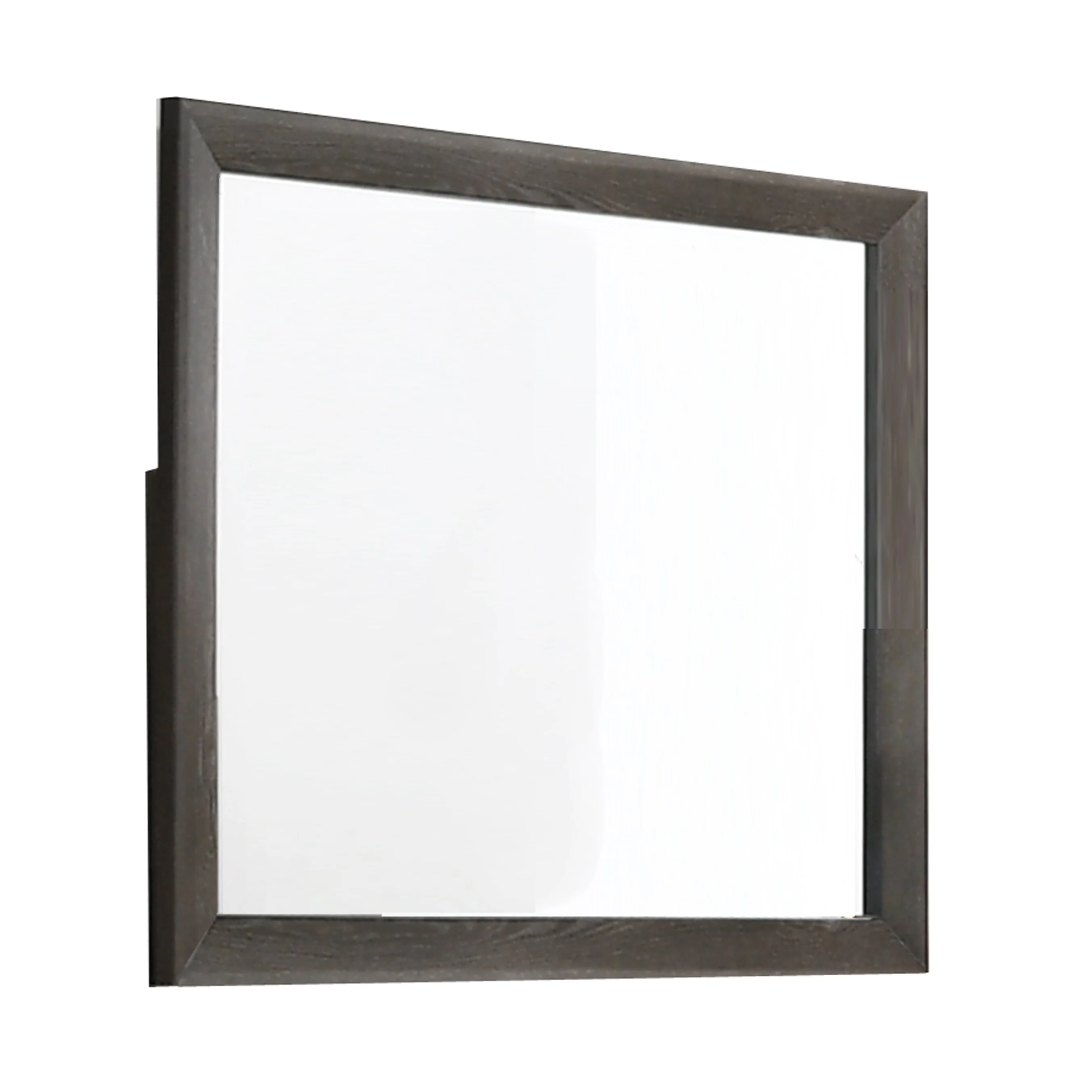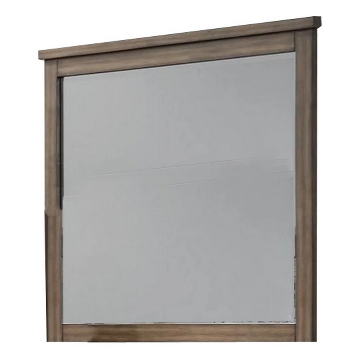 Industrial Style Wooden Dresser Mirror with Nail Accents, Gunmetal Brown- Saltoro Sherpi