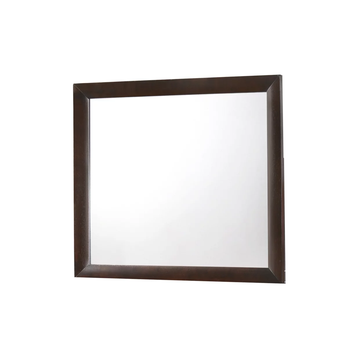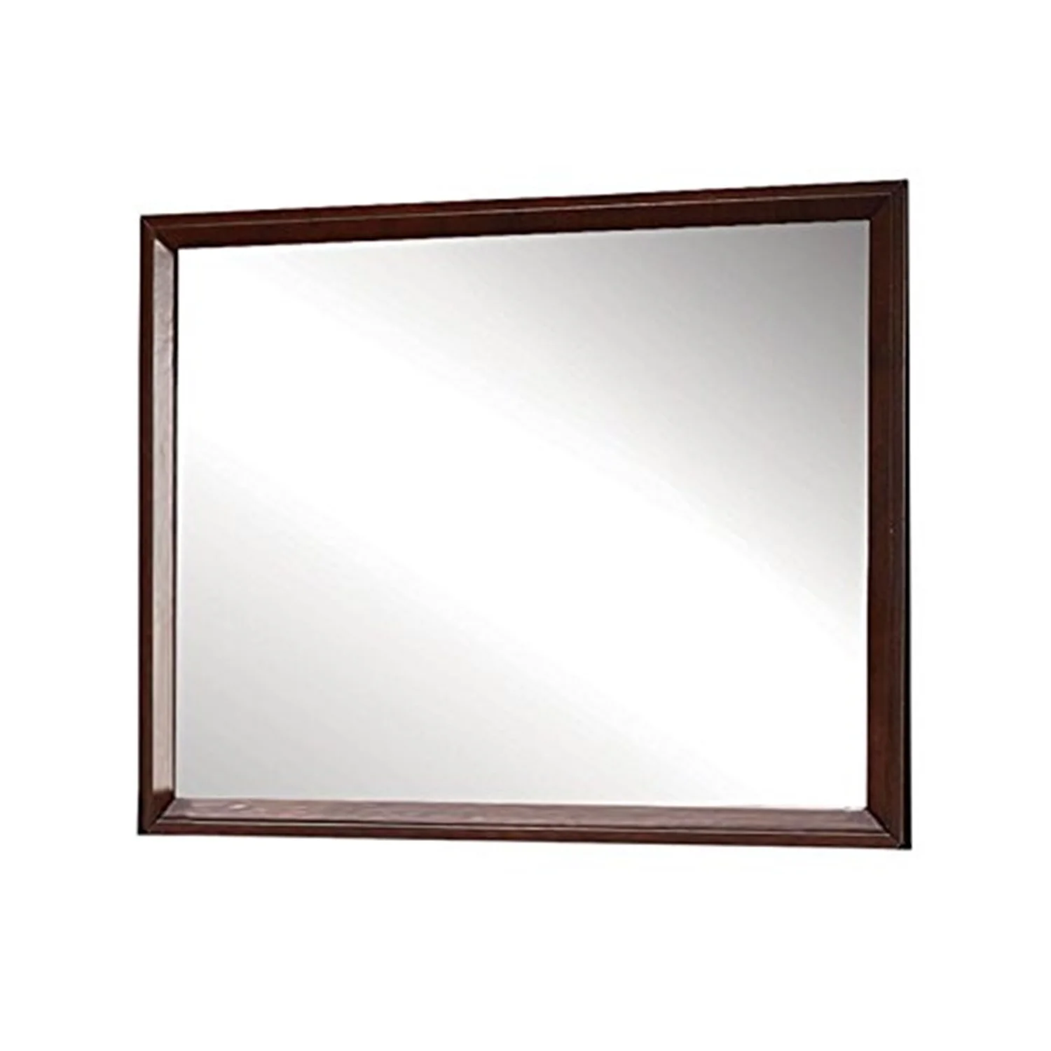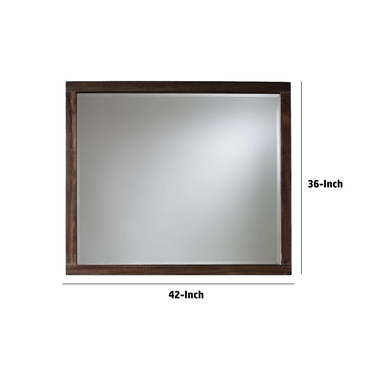 Rectangular Wood Encased Dresser Top Mirror, Cherry Brown and Silver- Saltoro Sherpi