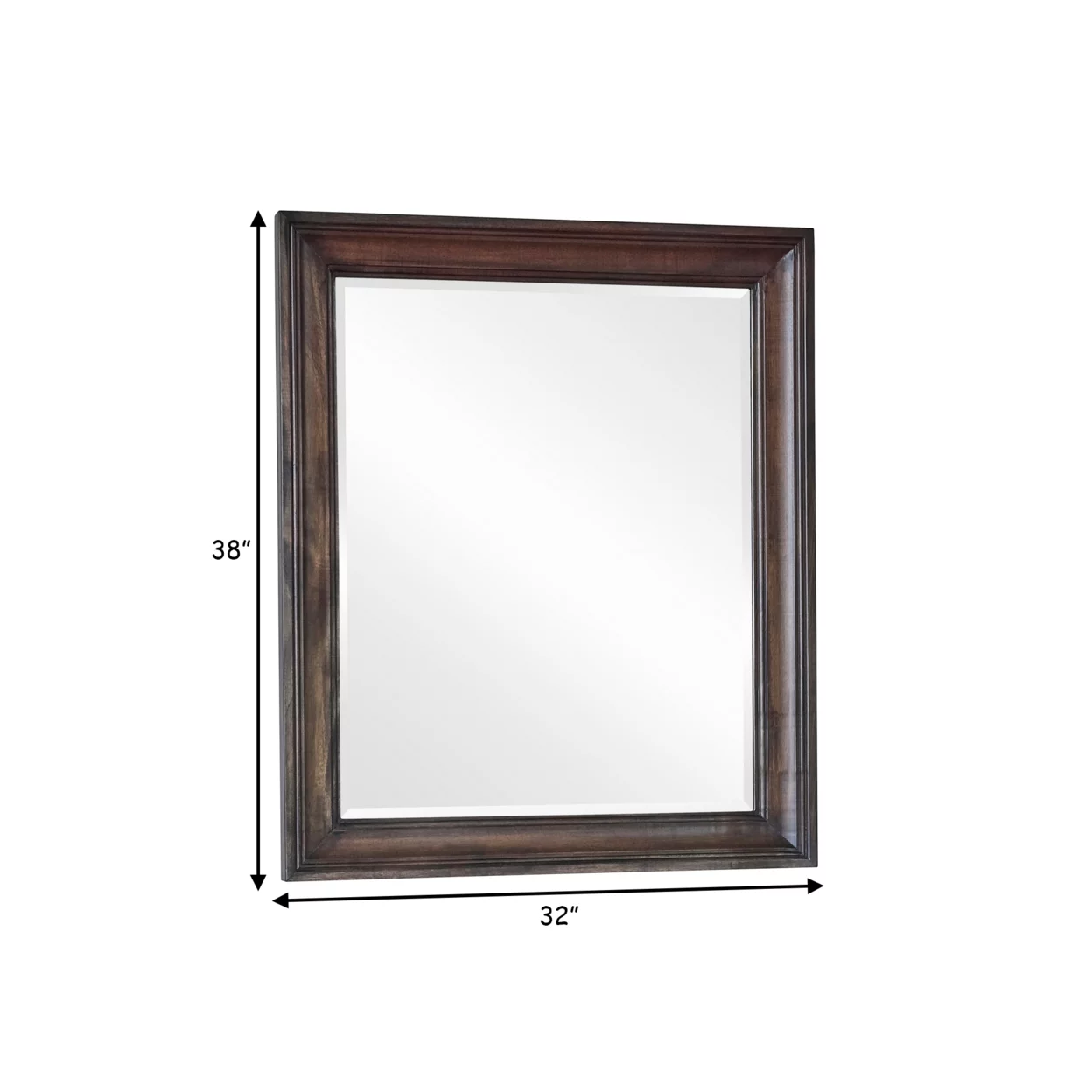 Oxy 38 Inch Classic Rectangular Portrait Mirror with Wood Frame, Brown- Saltoro Sherpi