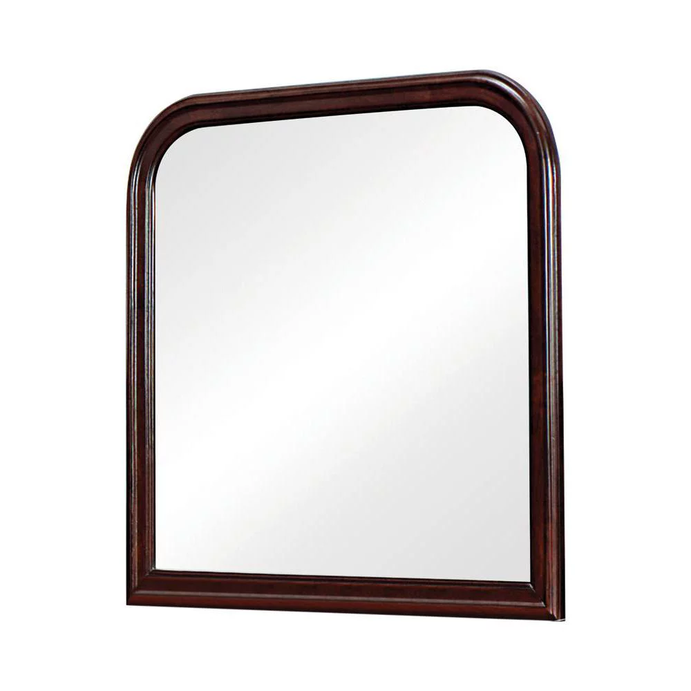 BenJara Fay 42 x 44 Dresser Mirror, Arched Hand Carved Frame, Dark Brown Maple Wood