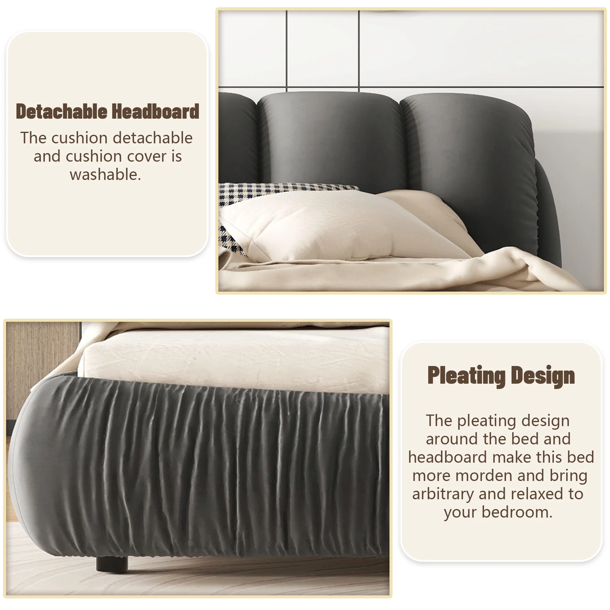 ONME King Size Luxury Upholstered Bed with Thick Headboard, Velvet King Bed with Oversized Padded Backrest, Gray