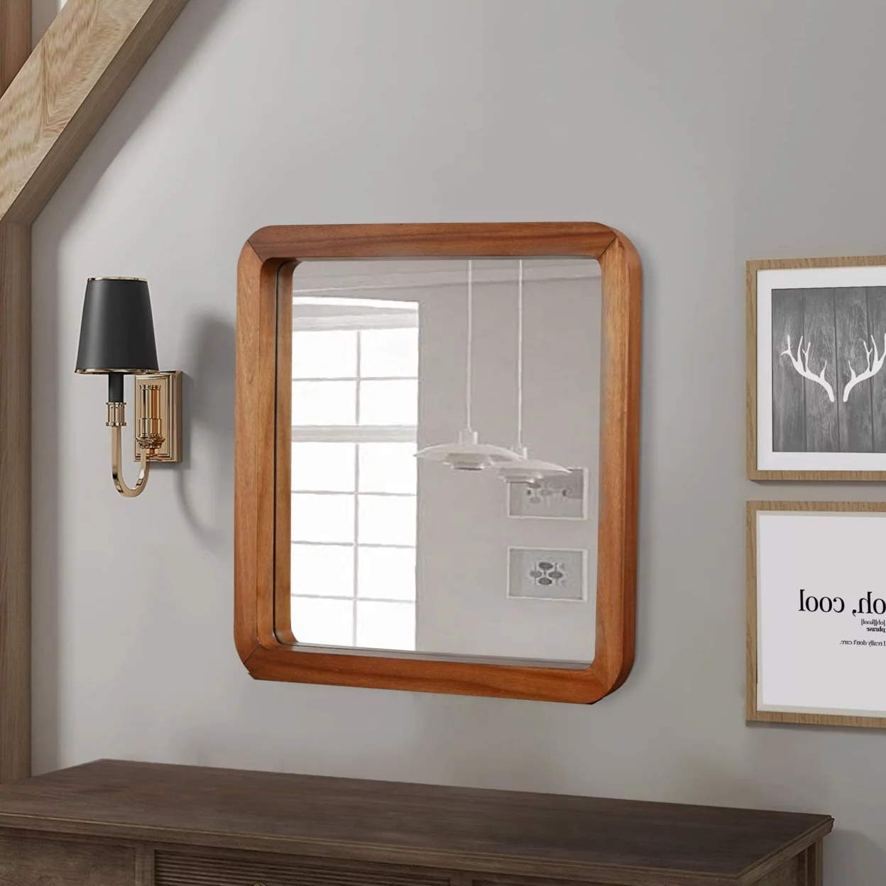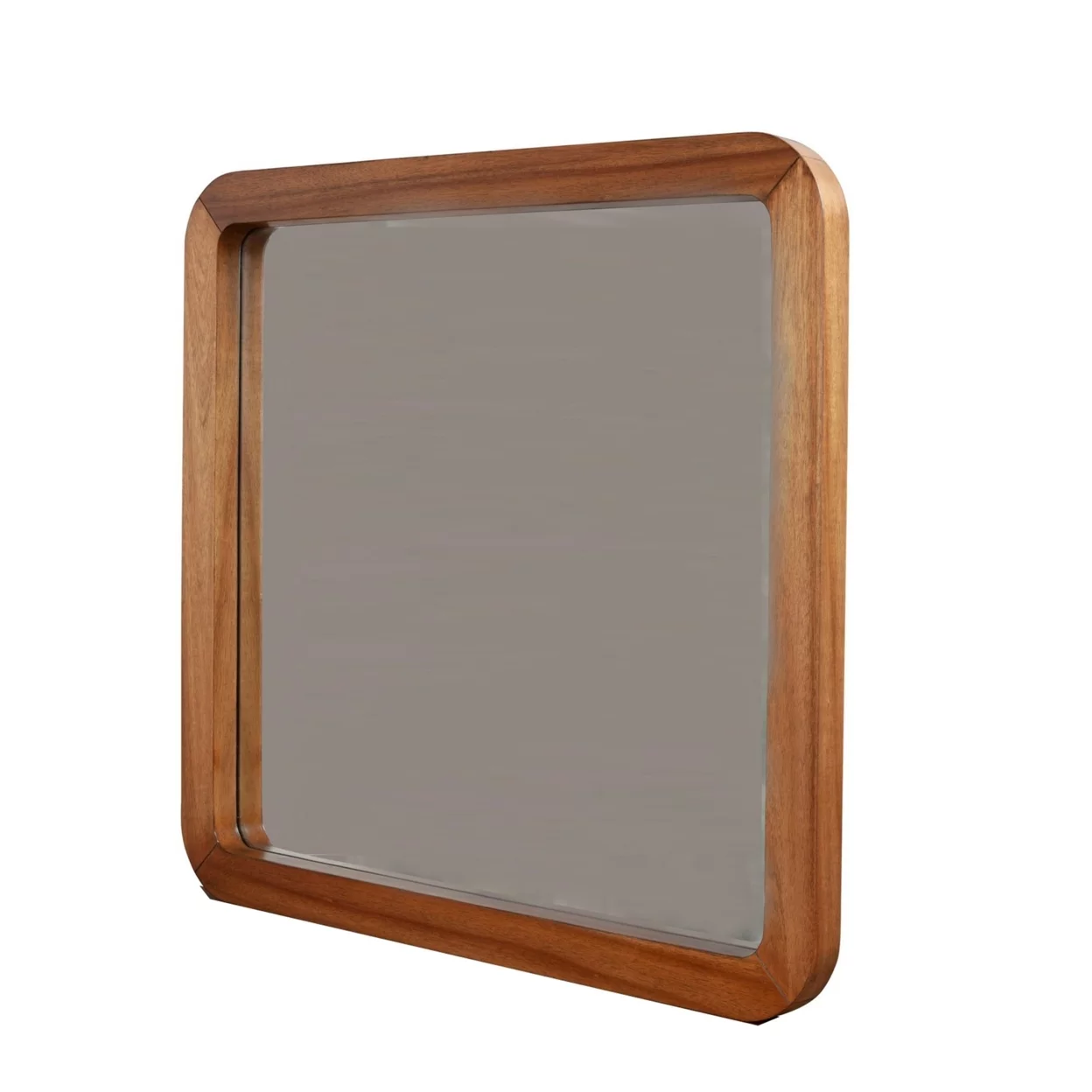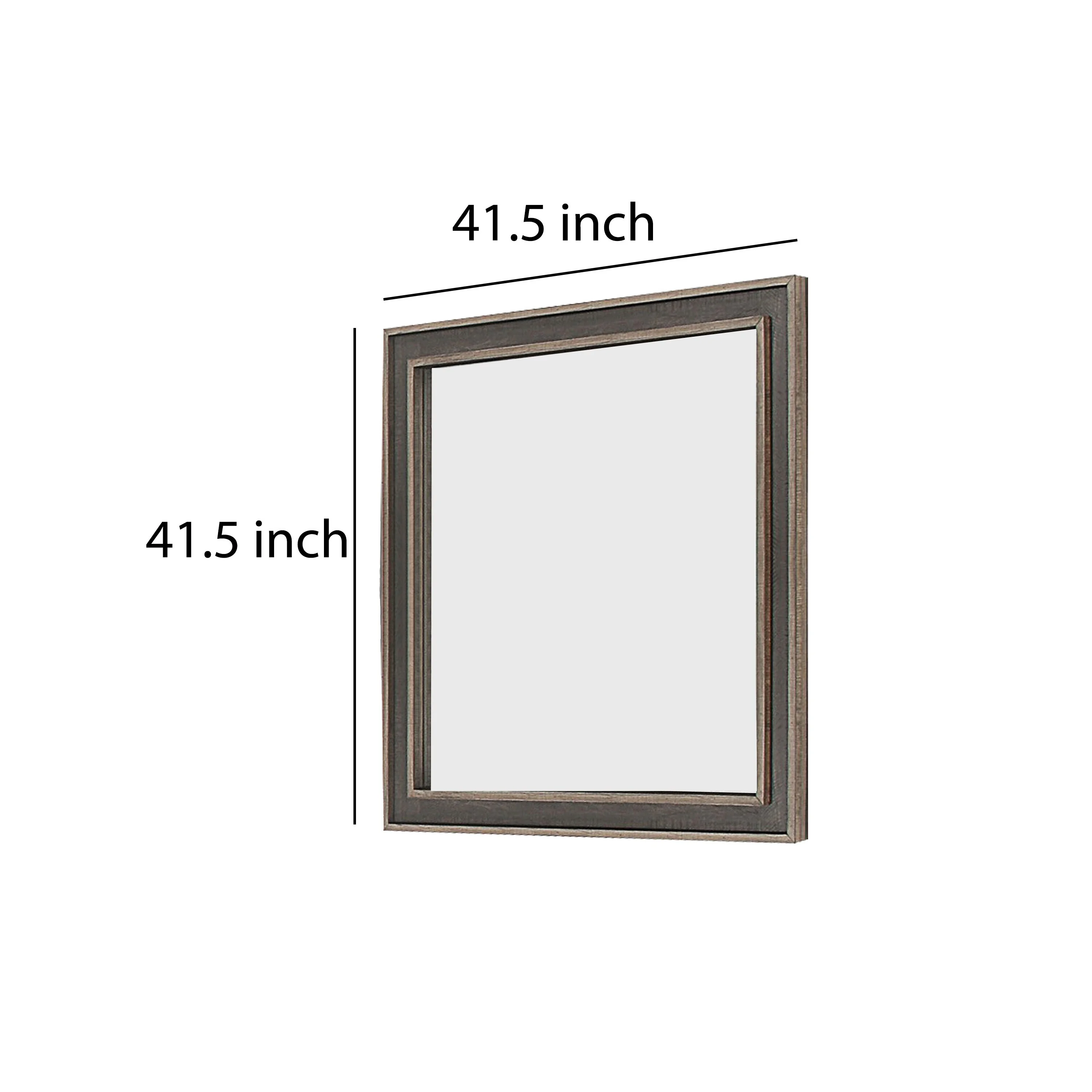 Bran 36 x 36 Modern Square Dresser Mirror, Pine Wood, Light Brown- Saltoro Sherpi