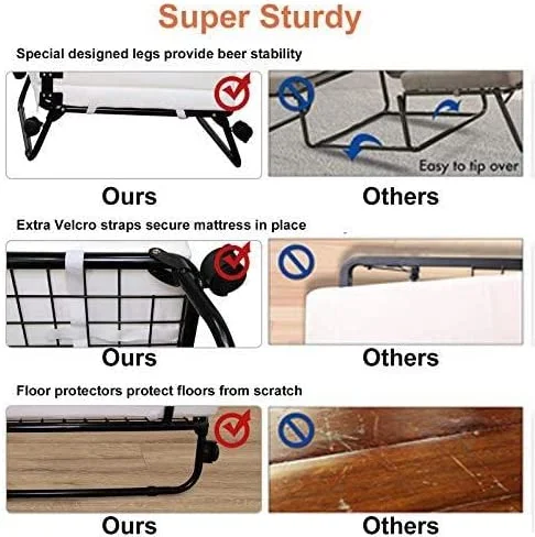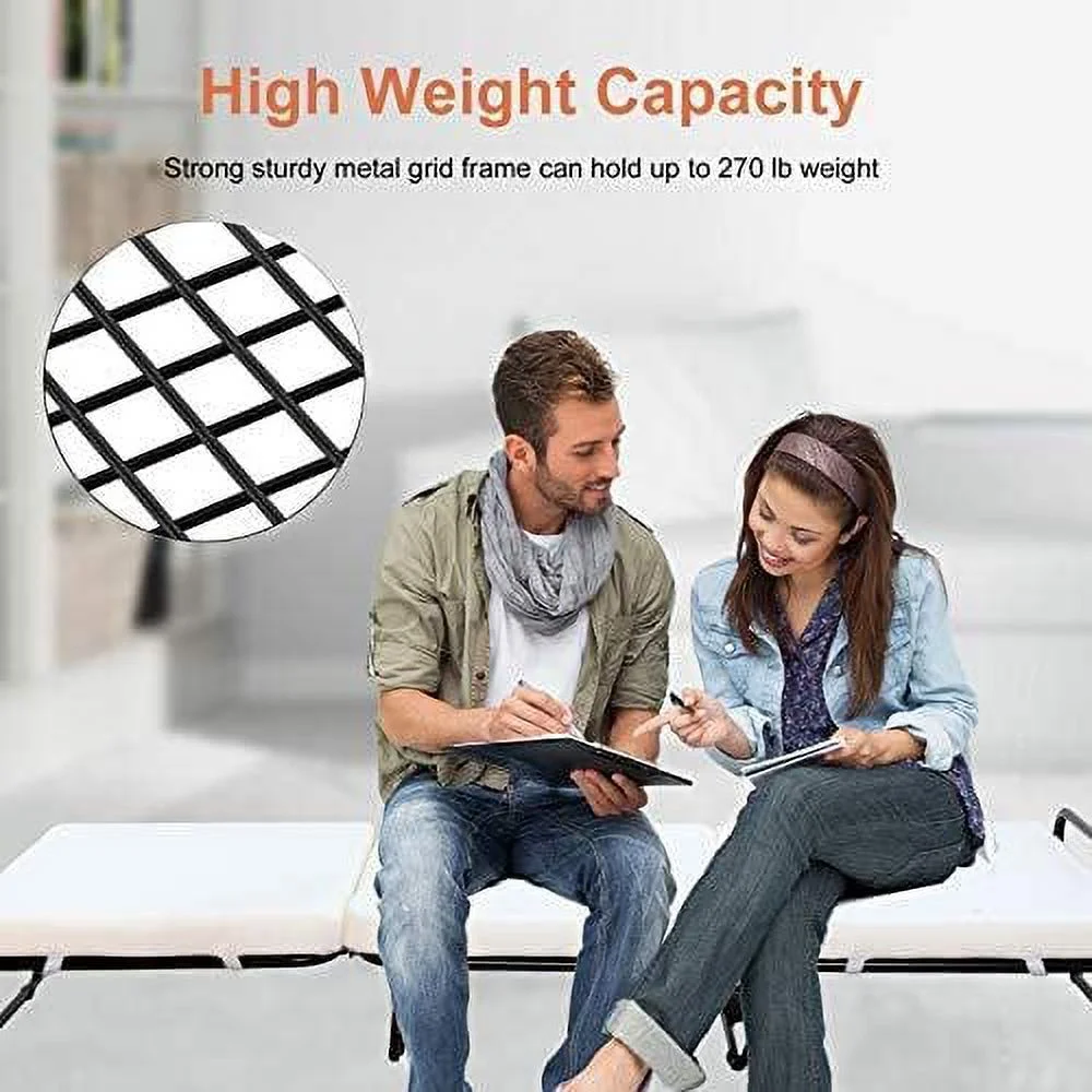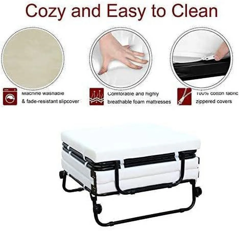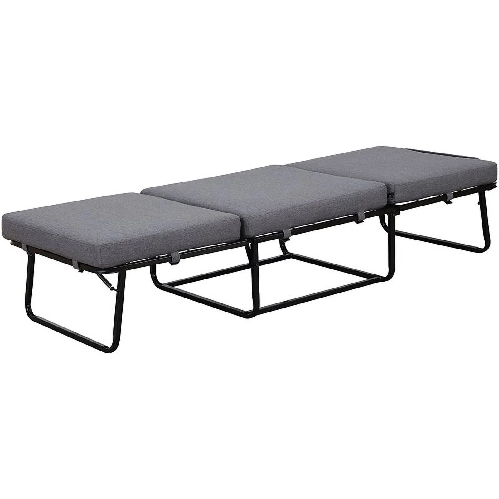 Euroco 63" Folding Ottoman Sleeper Bed with Mattress Convertible Guest Bed, Black&Gray
