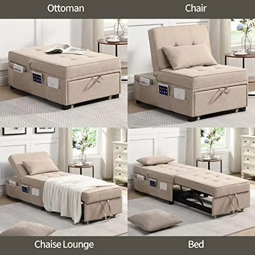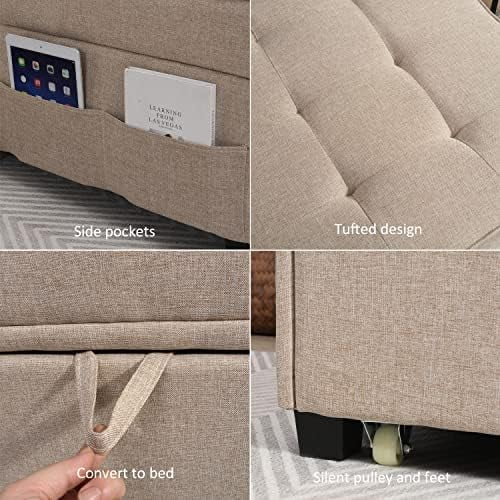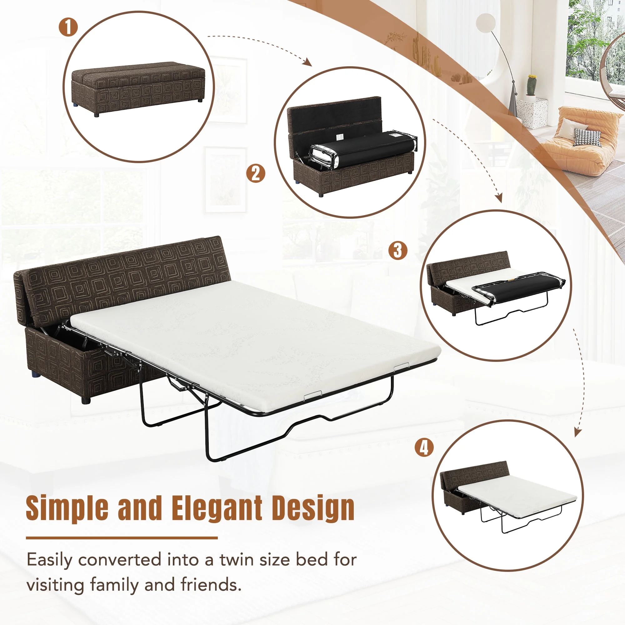 Churanty Full Size Folding Ottoman Sleeper Bed with Mattress,Linen Convertible Guest Bed,Black+ Gray
