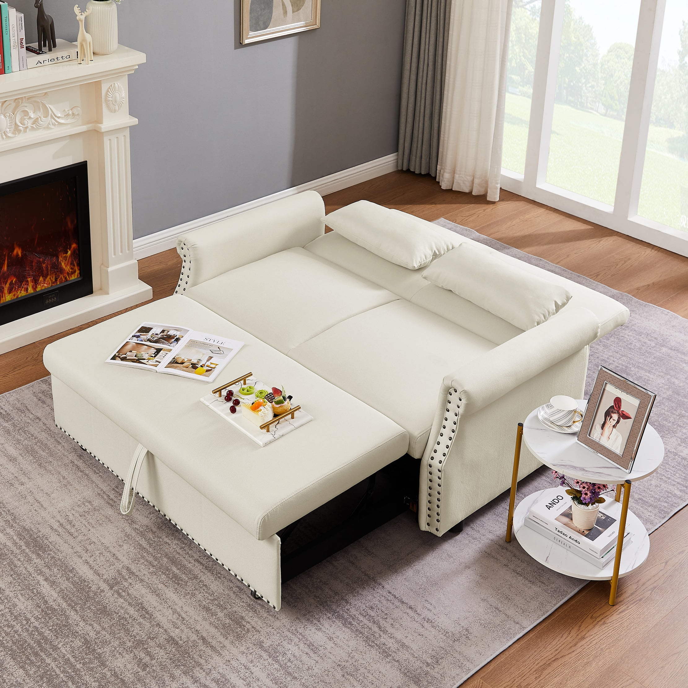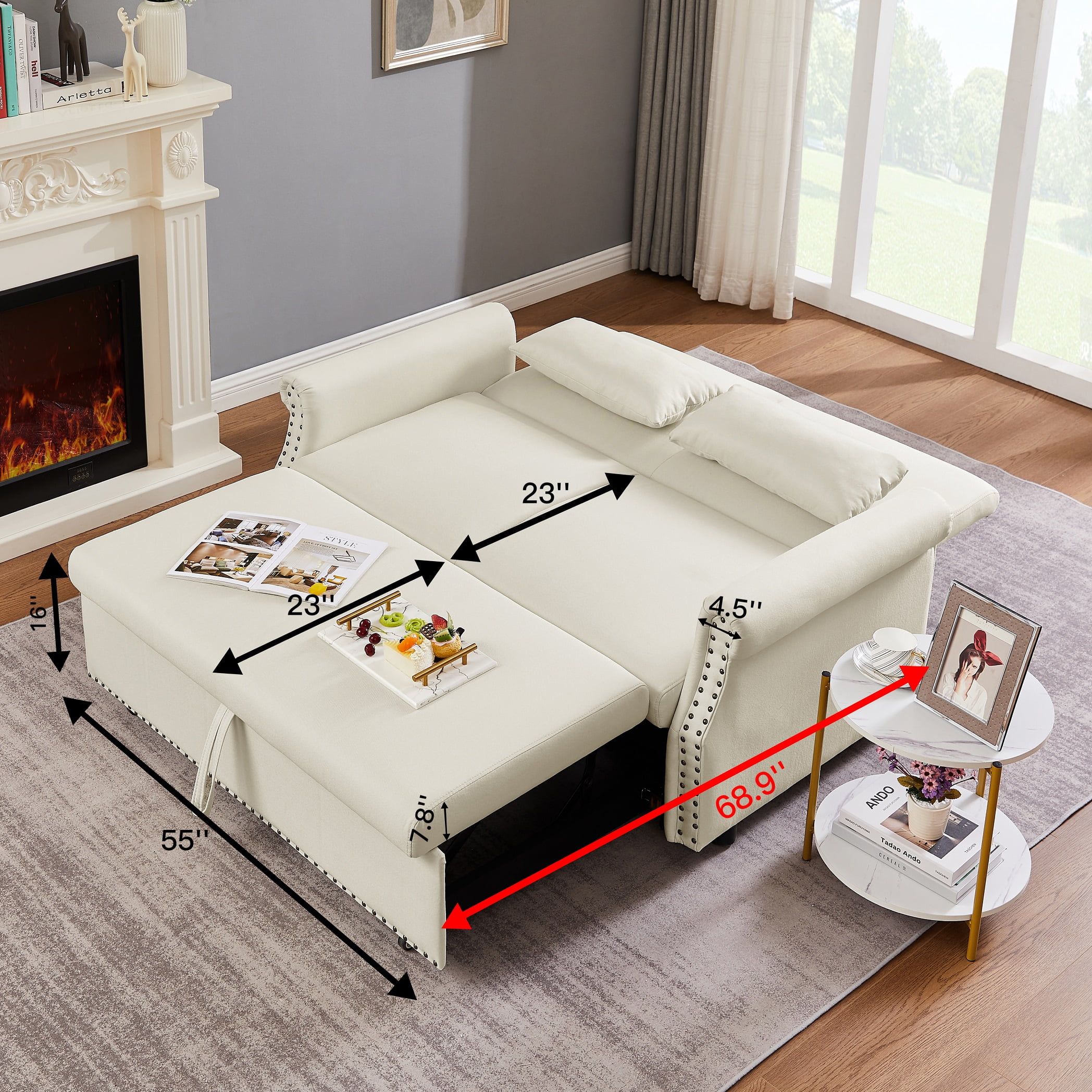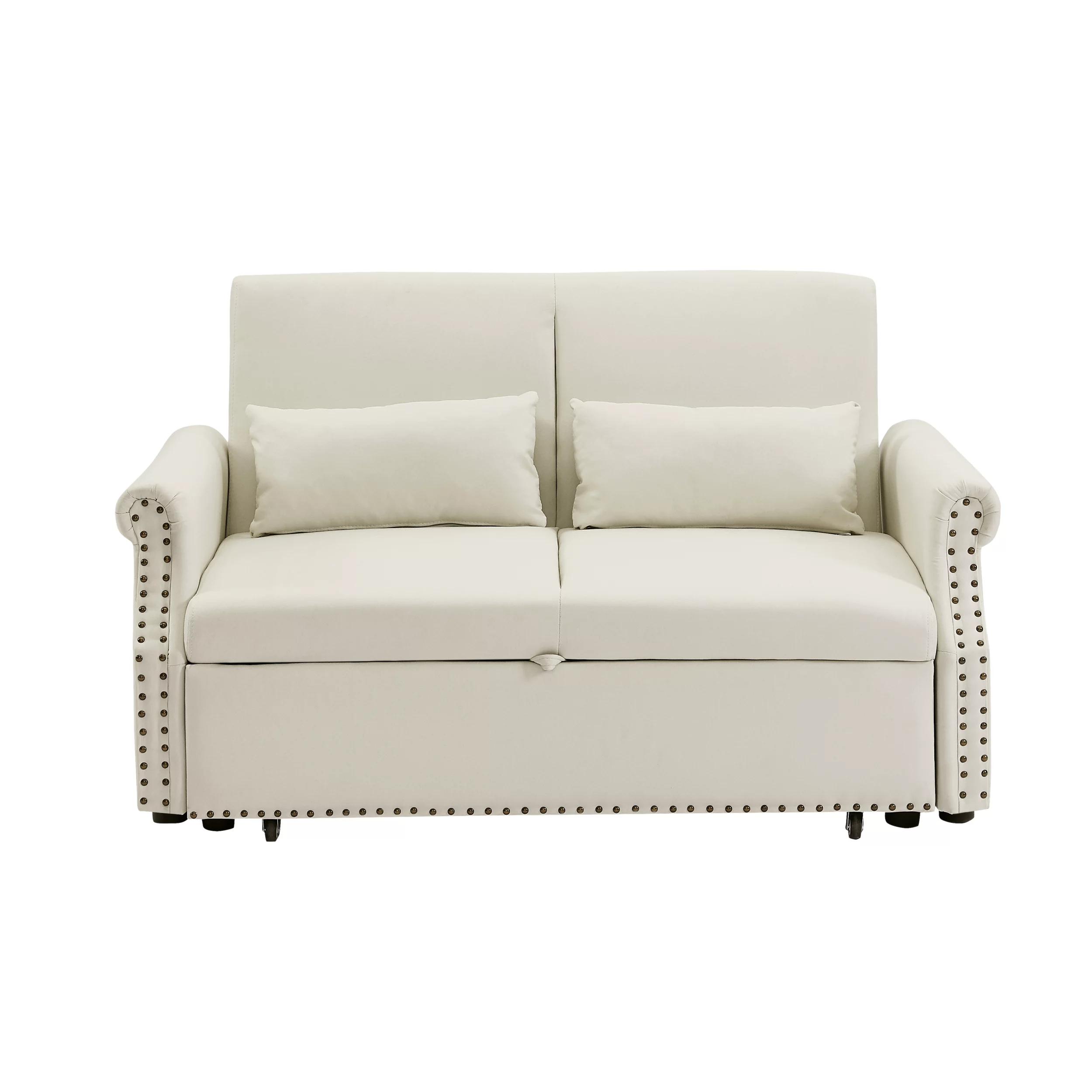 47.64" Modern Convertible Sleeper Loveseat Sofa Bed with Headboard, Pull-Out Function, 2 Pillows, and Side Pockets