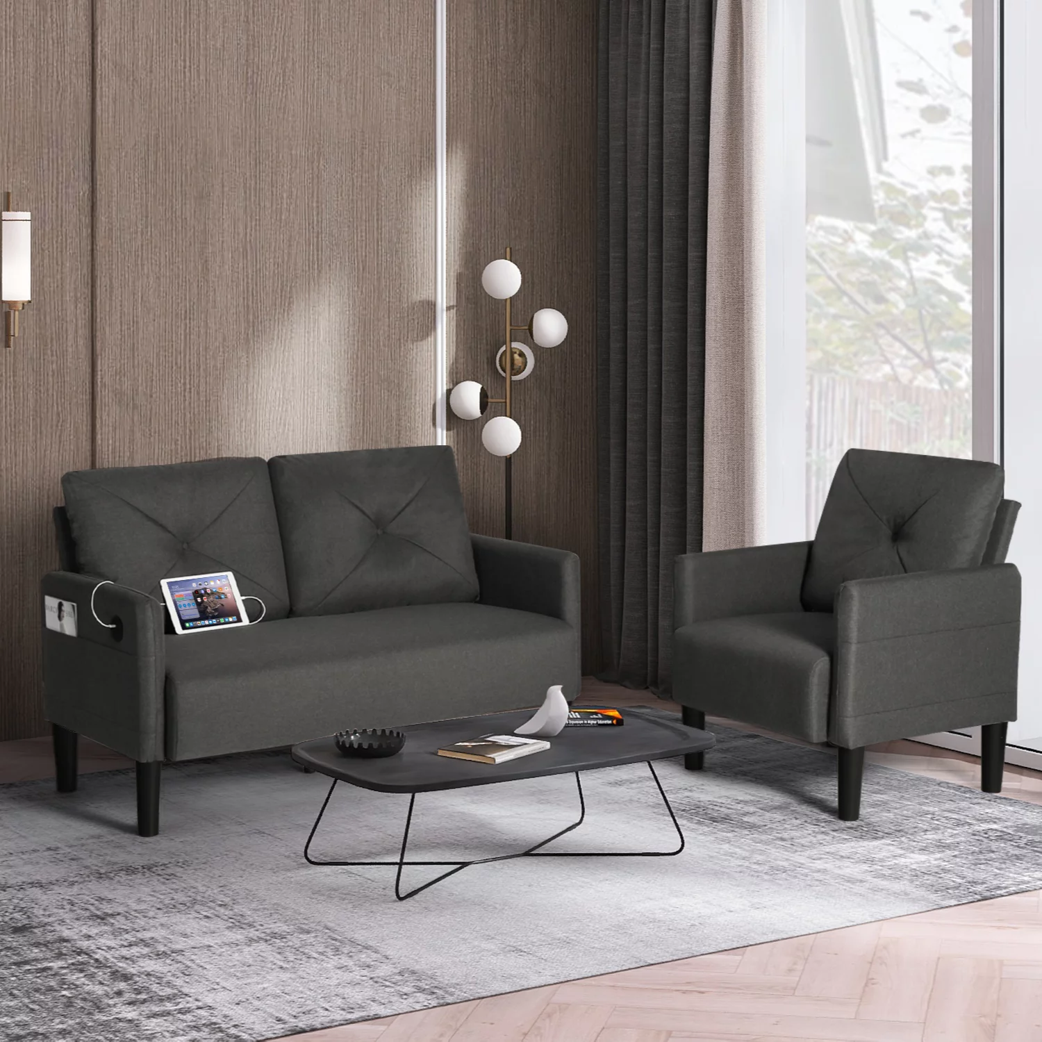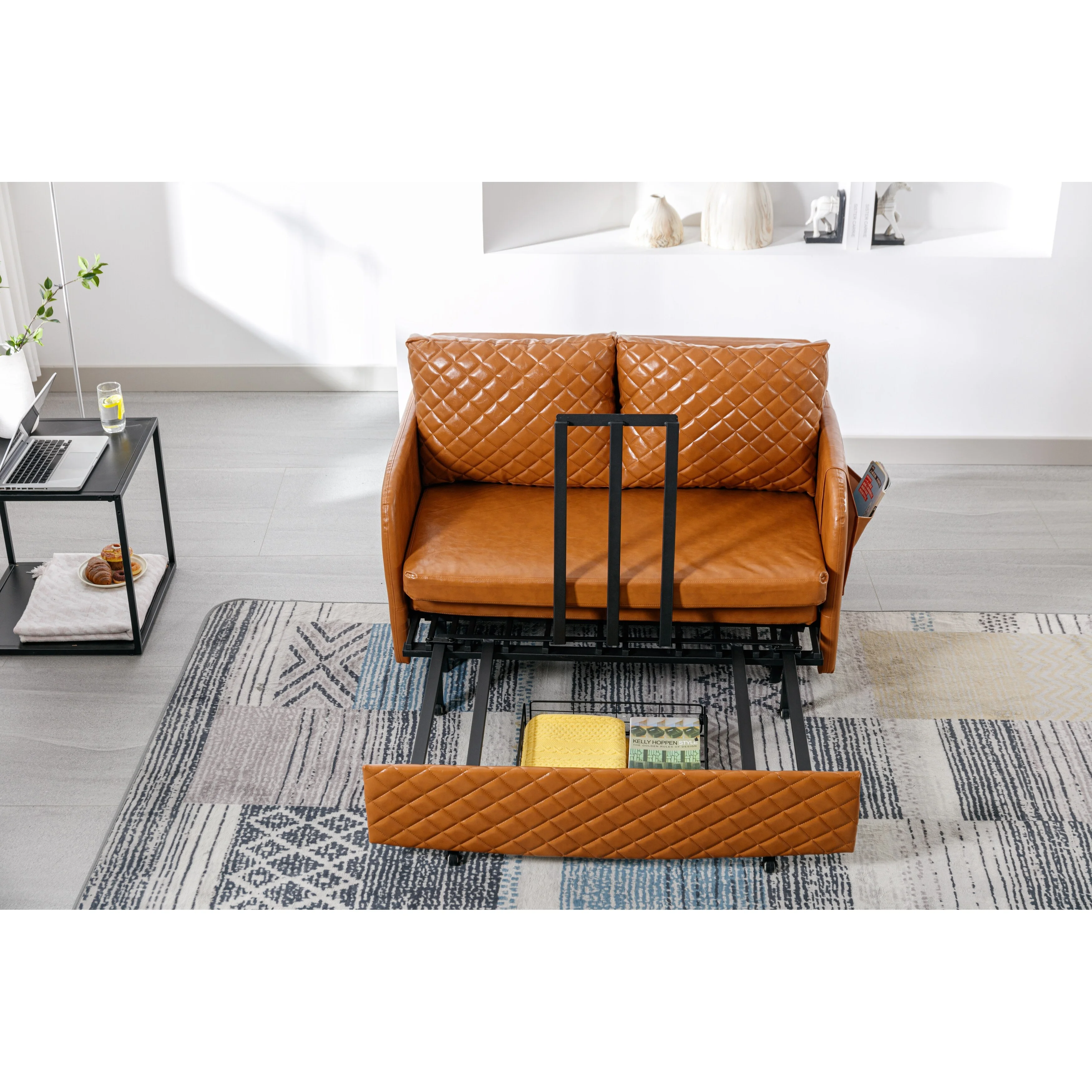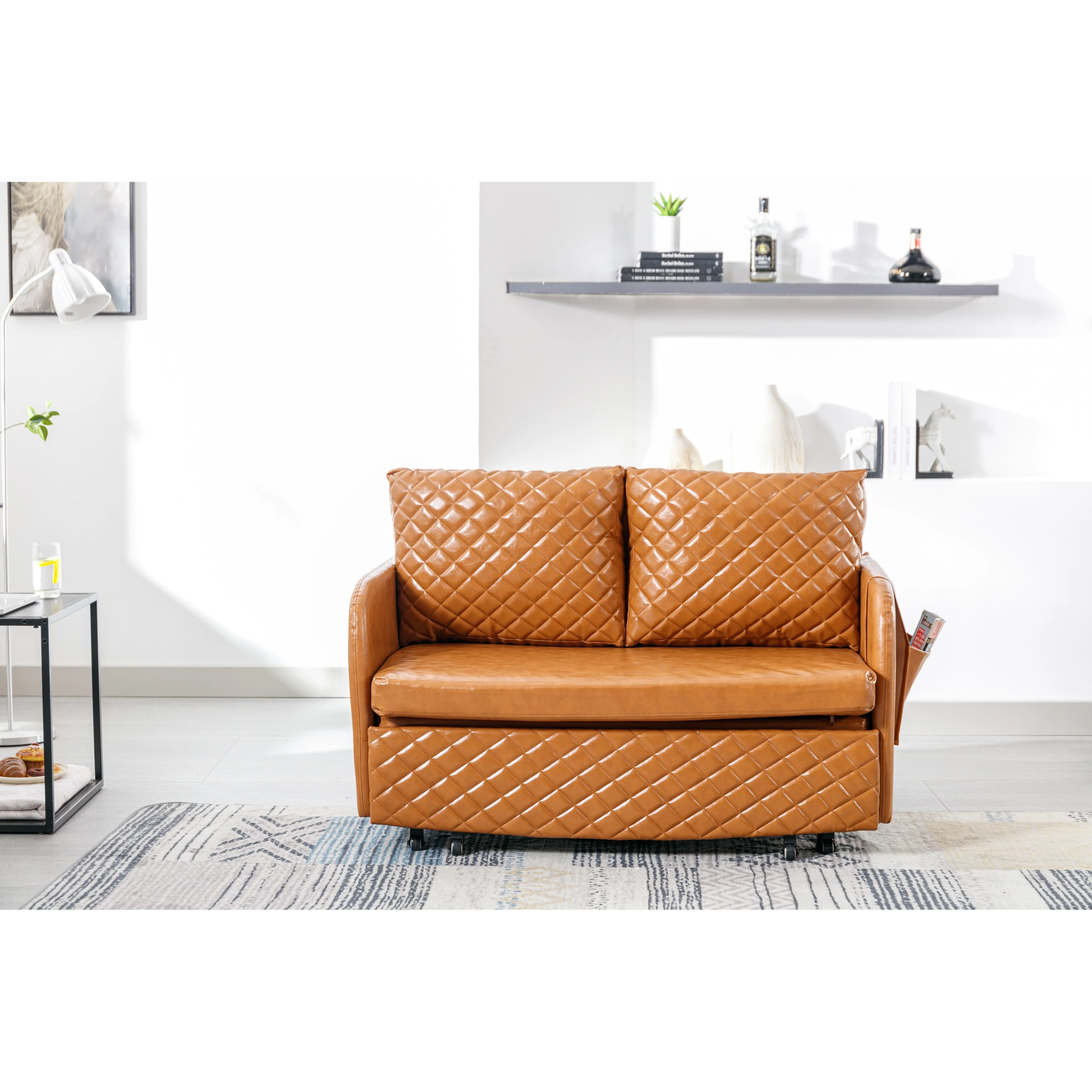 47.64" Modern Convertible Sleeper Loveseat Sofa Bed with Headboard, Pull-Out Function, 2 Pillows, and Side Pockets