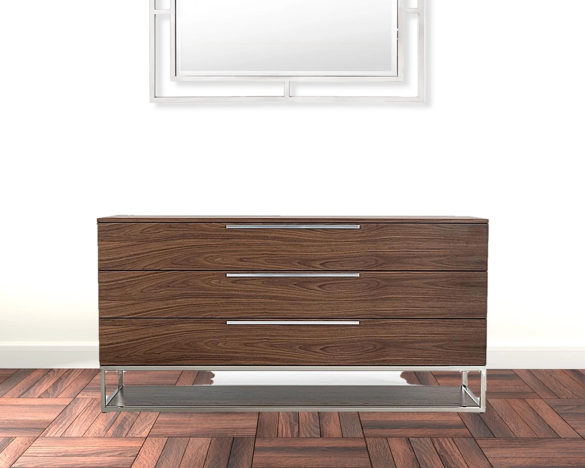 HomeRoots 29 x 58.25 x 18 in. Walnut Manufactured Wood Three Drawers Standard Dresser