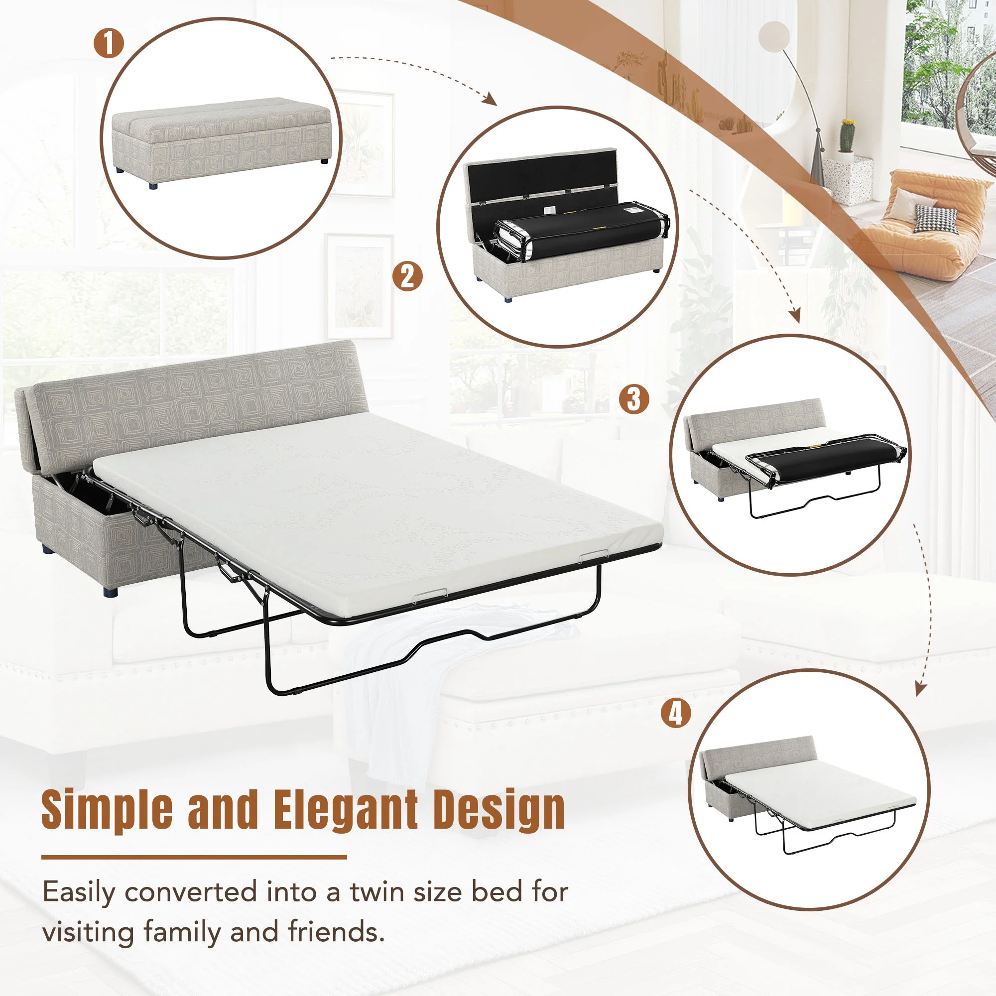 Soges 63" Folding Ottoman Sleeper Bed with Mattress Convertible Guest Bed, Gray