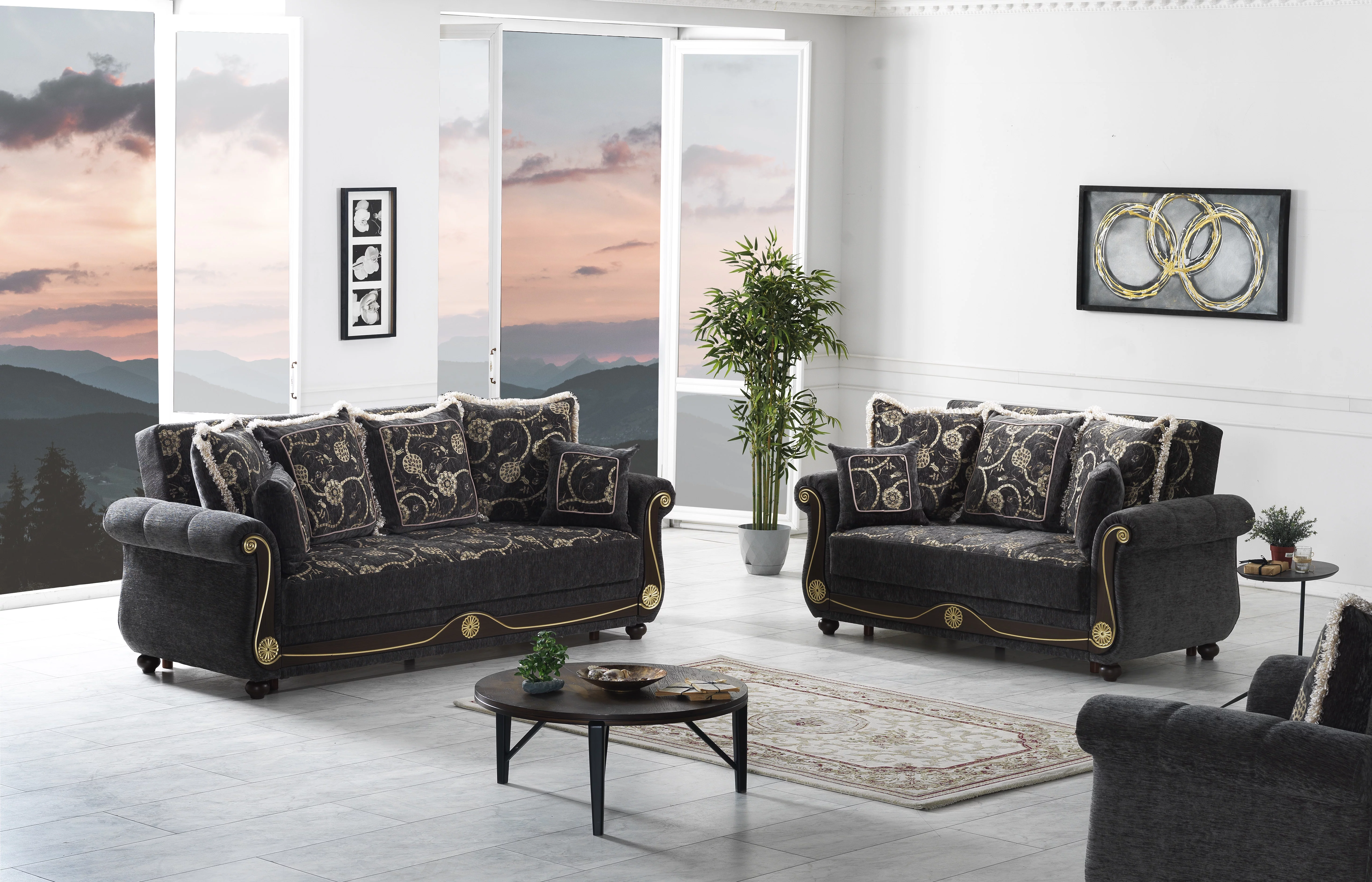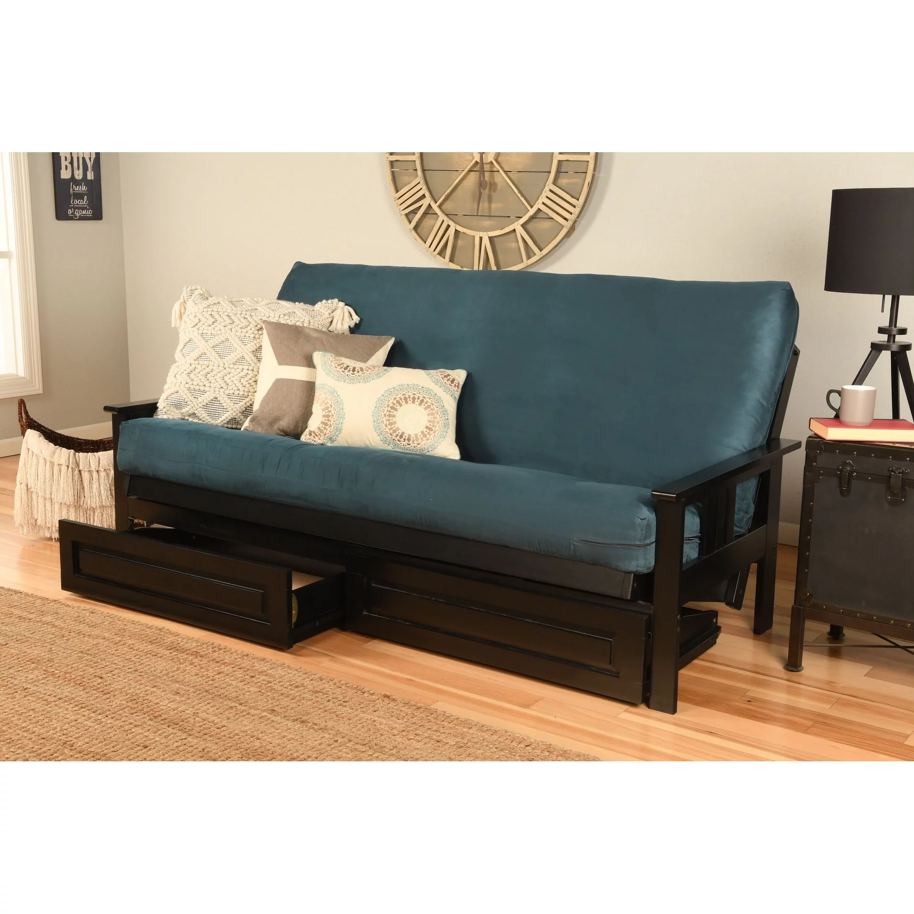 Somette Monterey Sofa in Black Finish with Storage and Removable Suede Mattress Cover Suede Blue