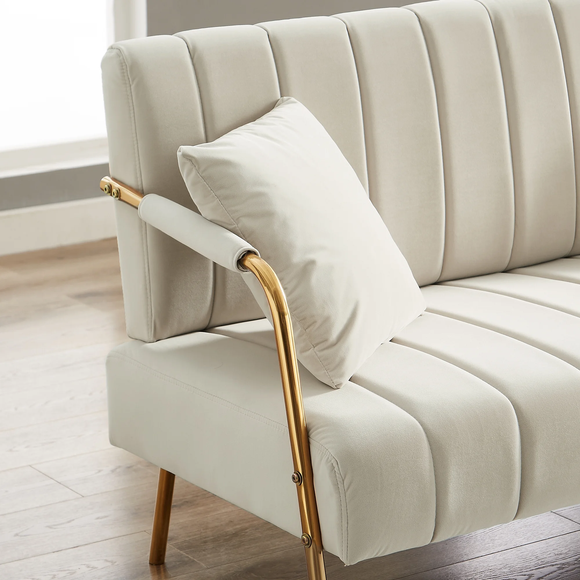 HONBAY Modern Elegant Velvet Convertible Loveseat Sleeper Sofa for living room, Blue