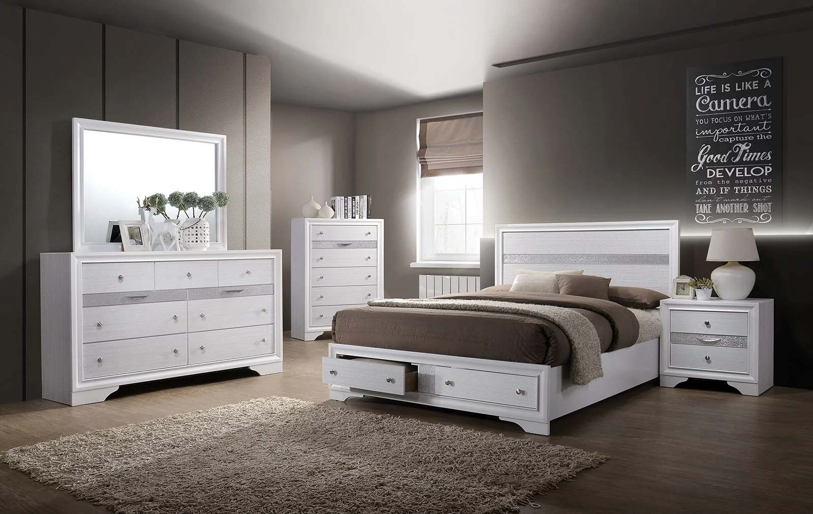 Modus Furniture Grace Four Drawer Platform Storage Bed in Blueberry