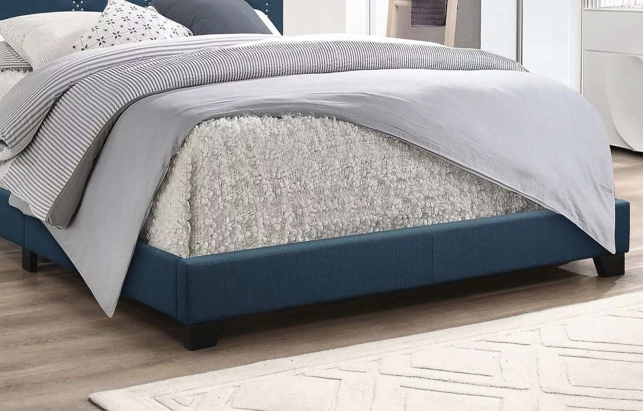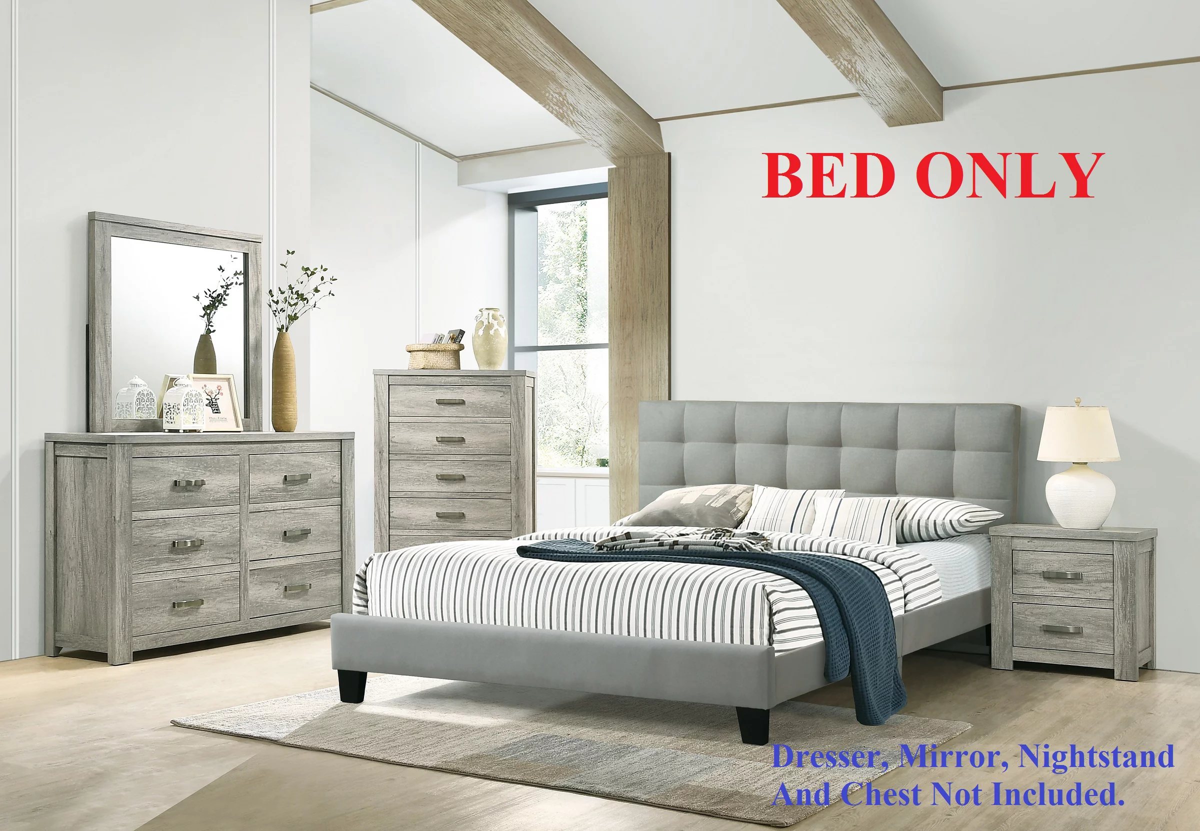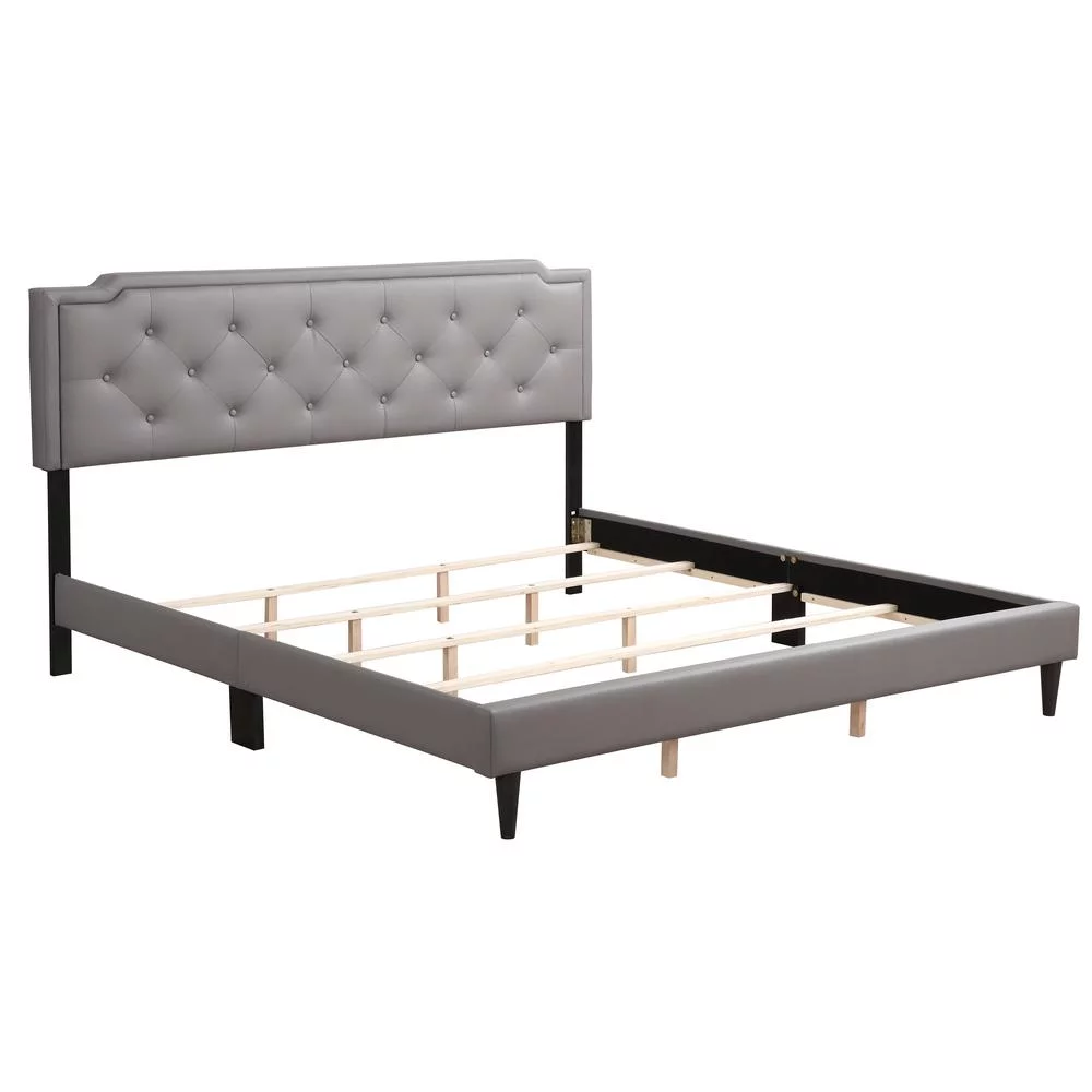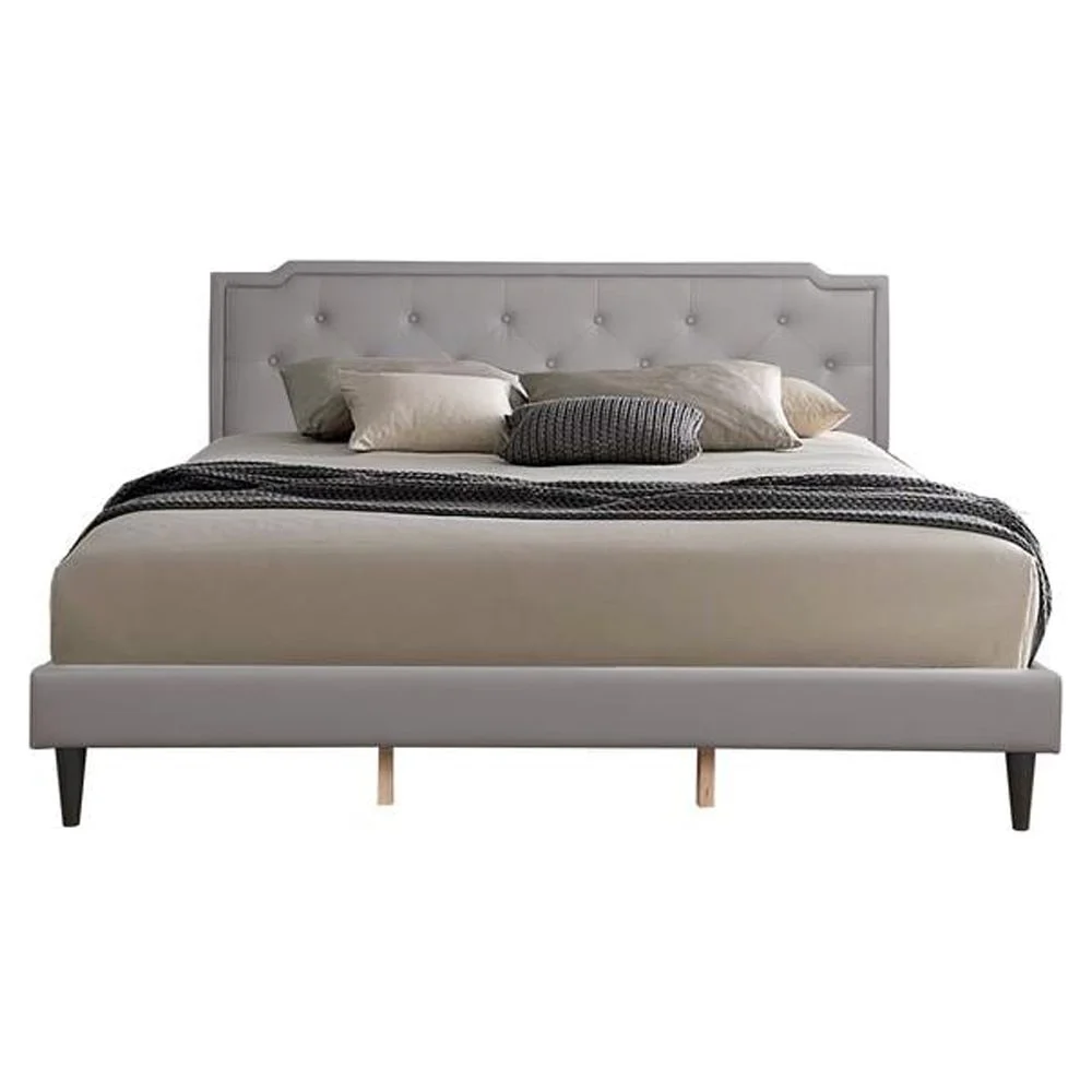 Bedroom furniture Gray Polyfiber Eastern King Size bed 1pc Bed Set Plywood HB FB Bedframe.