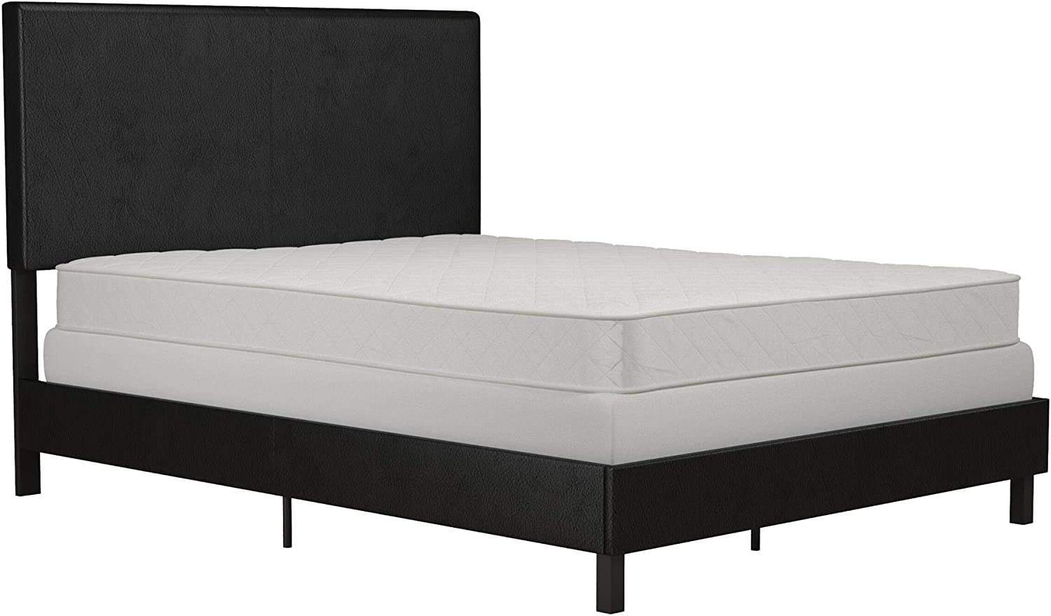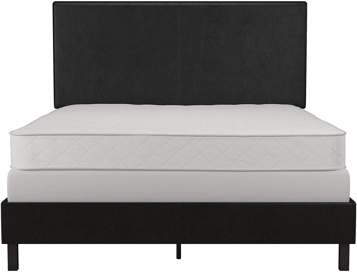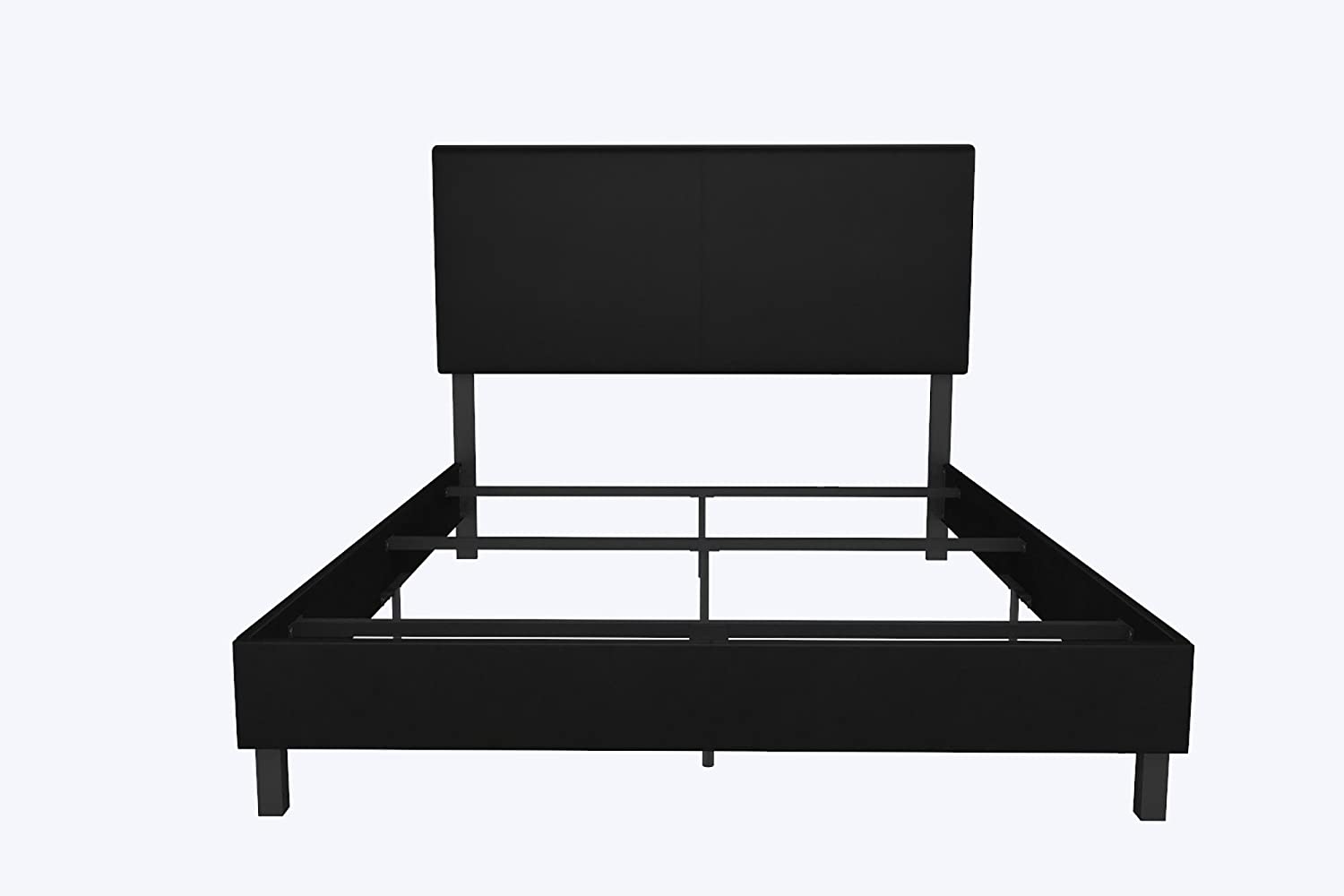 OUWI Janford Upholstered Platform Bed with Modern Vertical Stitching on Rectangular Headboard, Full, Black Faux Leather