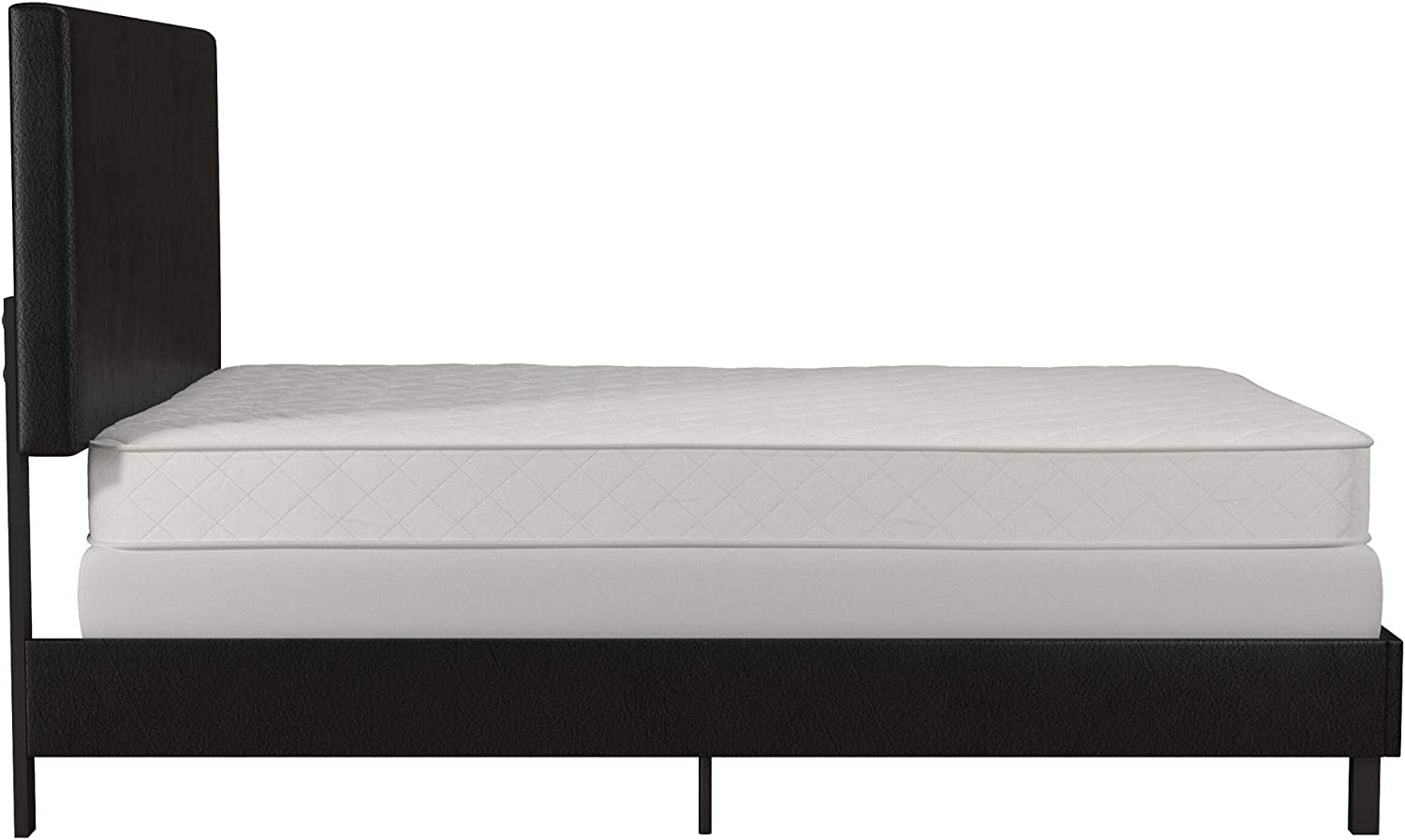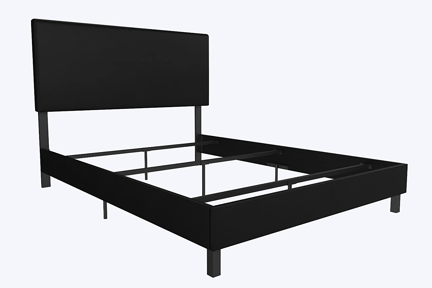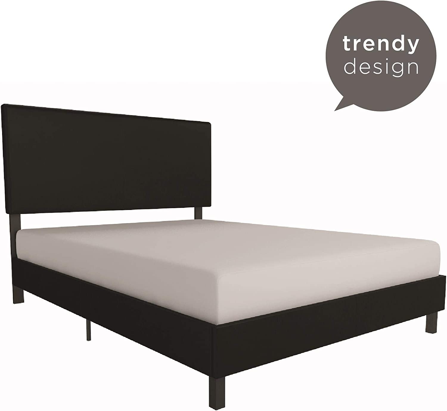 OUWI Janford Upholstered Platform Bed with Modern Vertical Stitching on Rectangular Headboard, Full, Black Faux Leather
