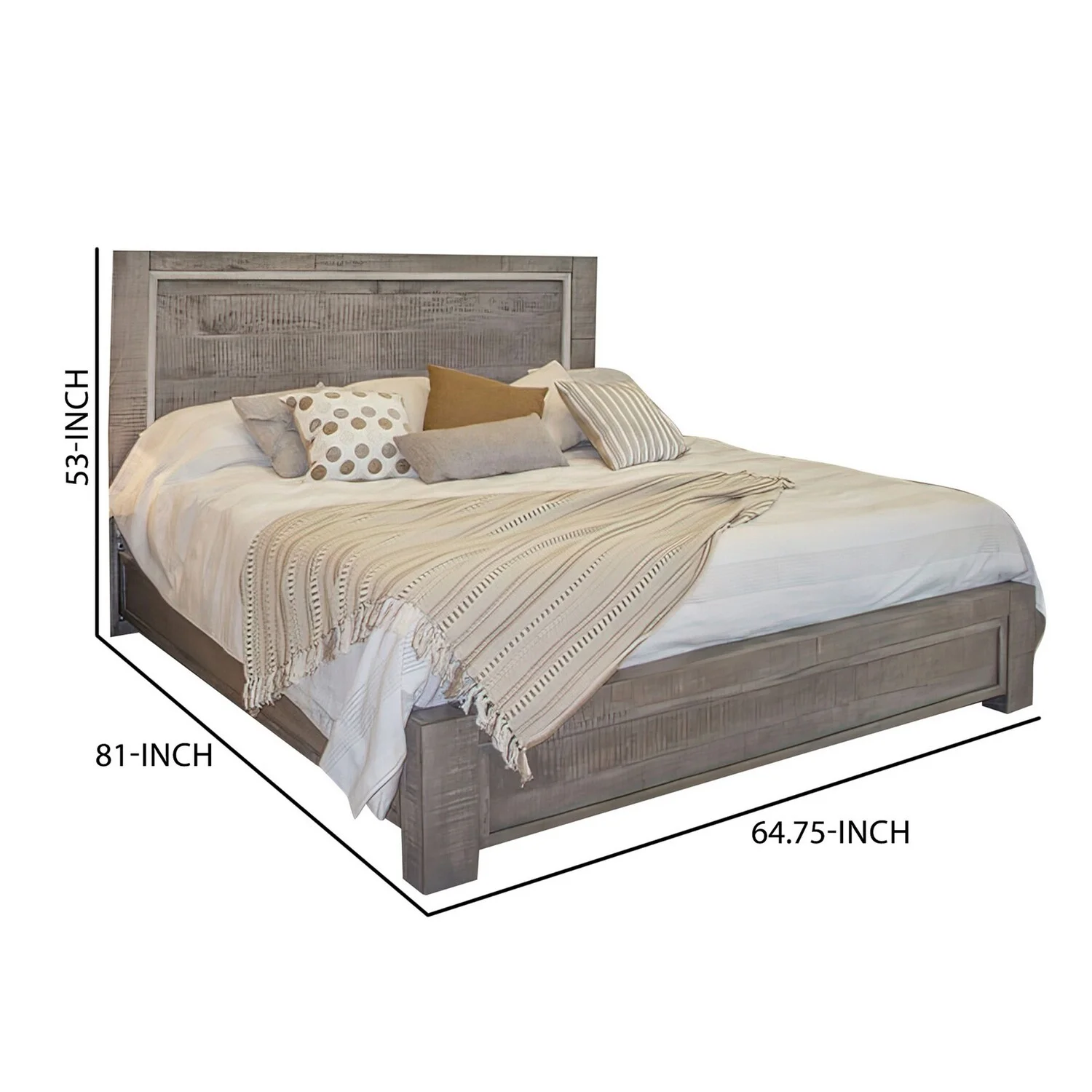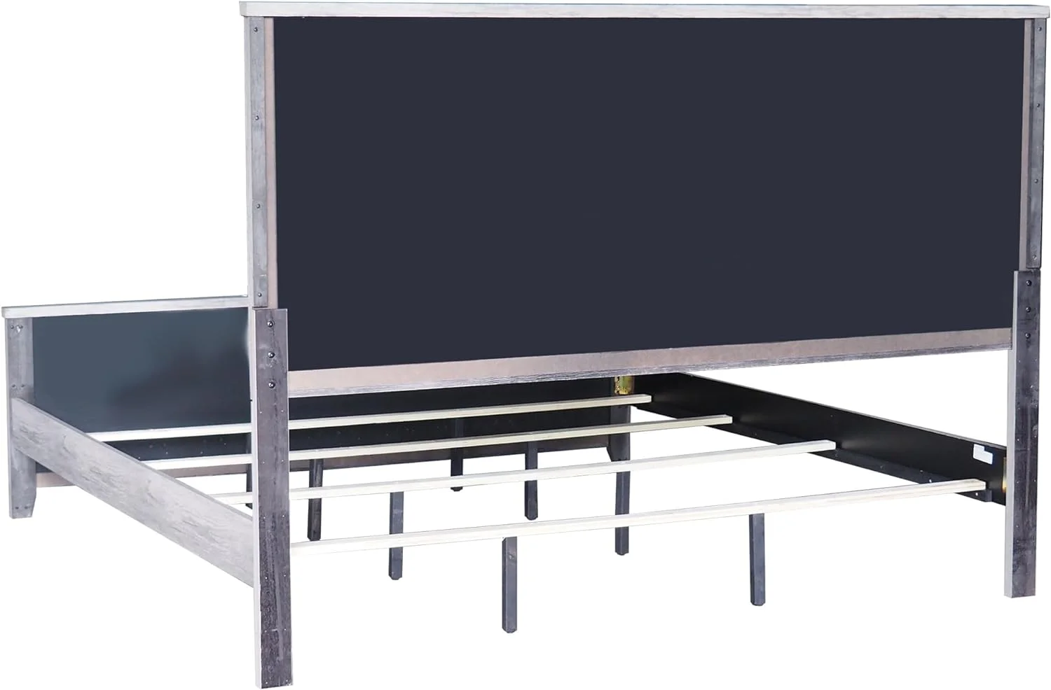Benjara Ken Queen Size Bed, with Headboard, Footboard, Clean Design Rustic Gray