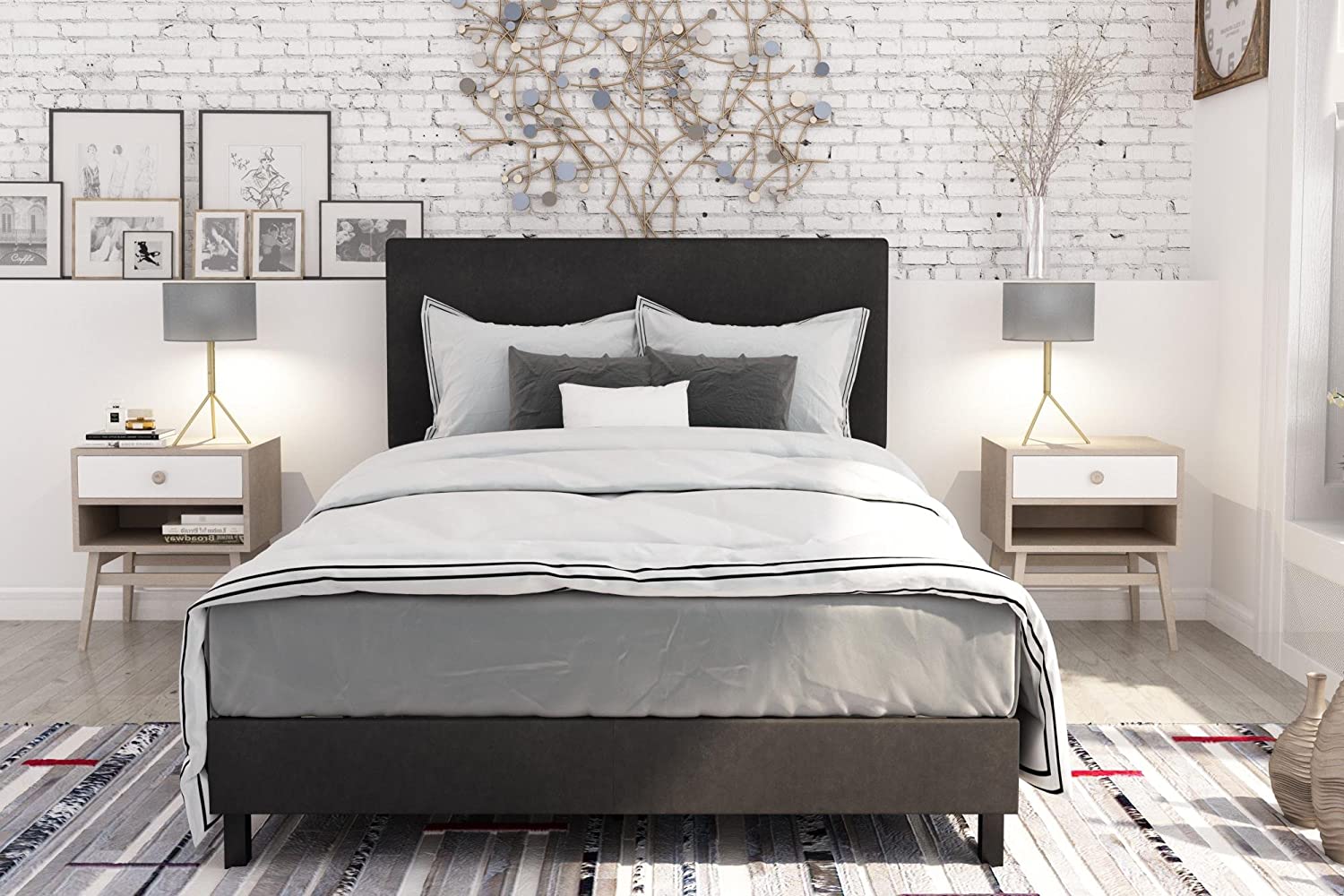 Bedroom furniture Charcoal Polyfiber Eastern King Size bed 1pc Bed Set Plywood.