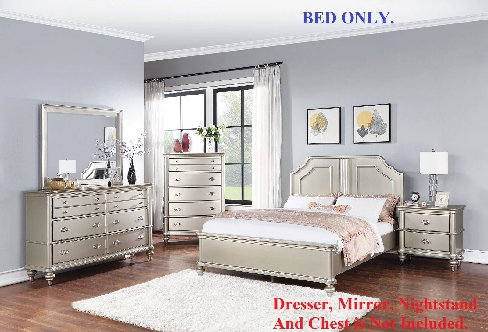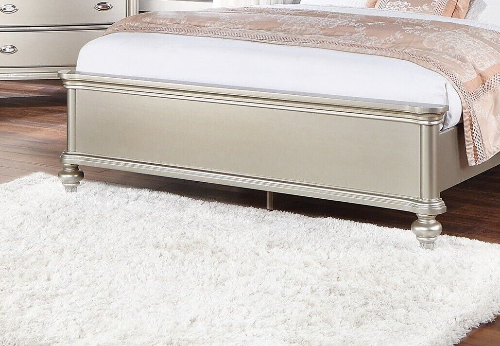 Classic Silver Finish Eastern king Size Bed 1pc Bedframe Bedroom Furniture 2-Panel Design Elegant Carved Accents