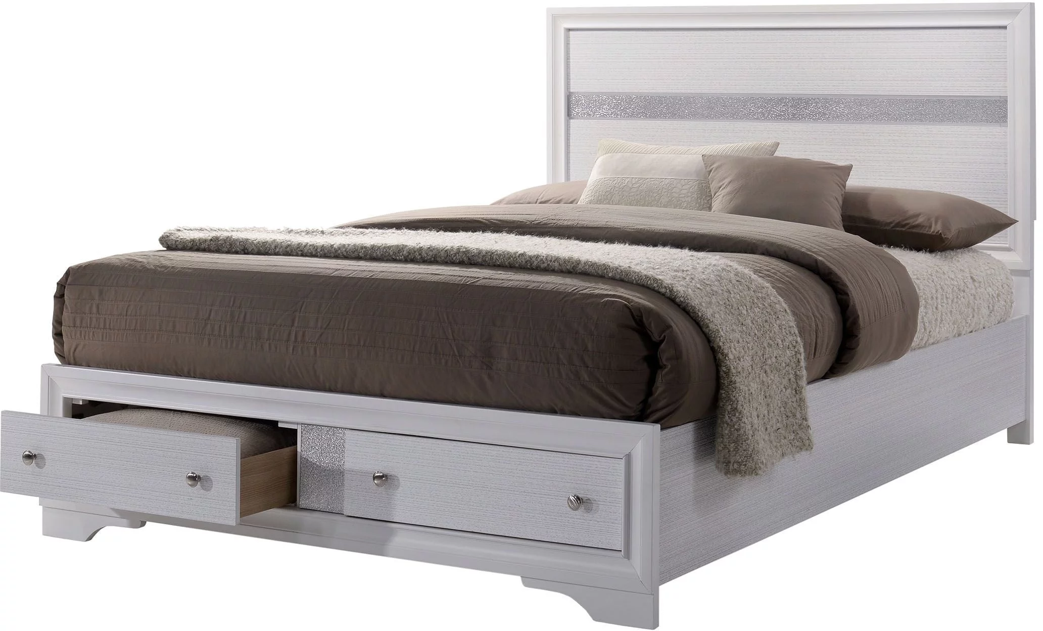Contemporary White Color Eastern King Size Bed White Color 1pc Bed Bedroom Furniture Panel HB