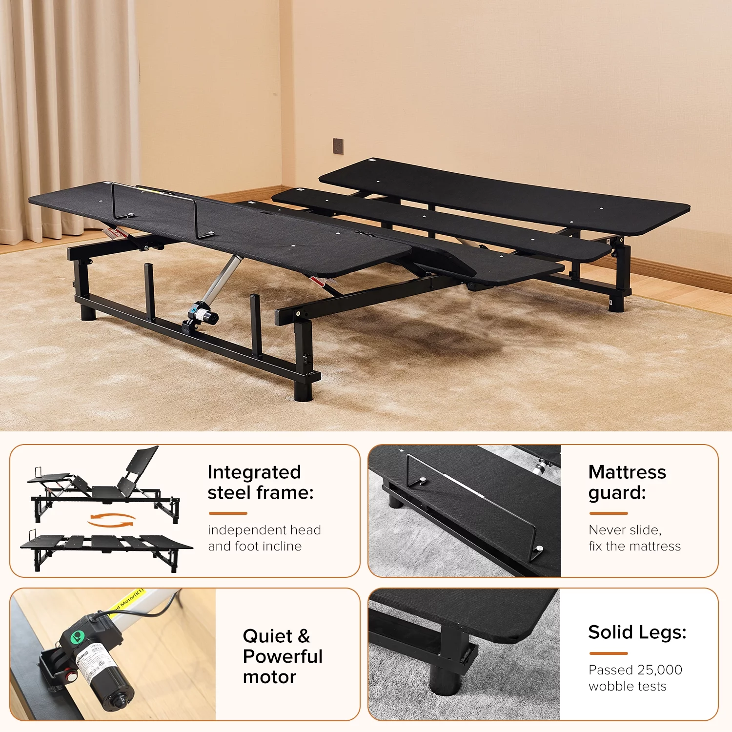 1pc Bed Eastern King Size Bedroom Furniture Beige Polyfiber Tufted Adjustable HB Solid wood