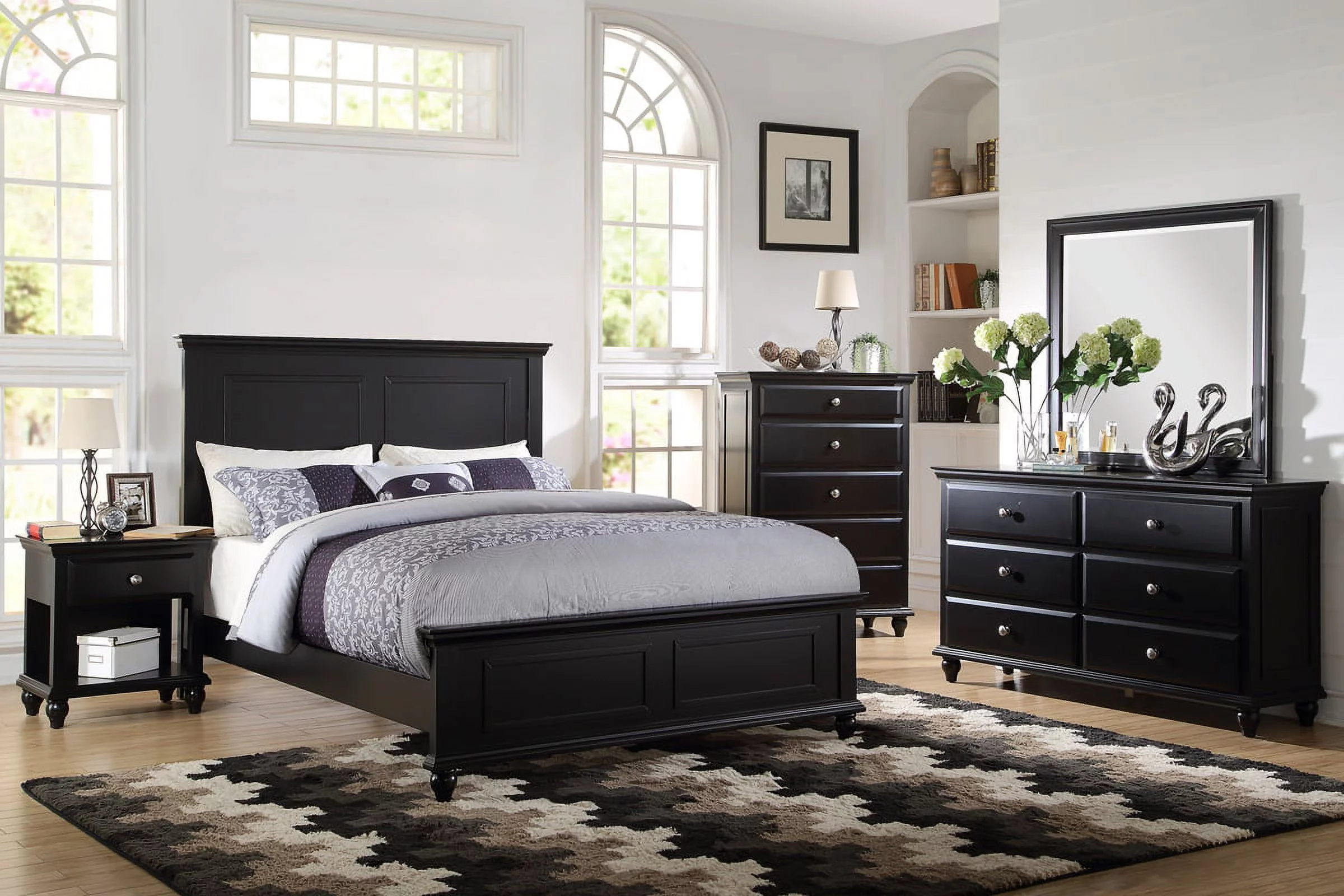 Contemporary Black Color Eastern King Size Bed Black Color 1pc Bed Bedroom Furniture Panel HB