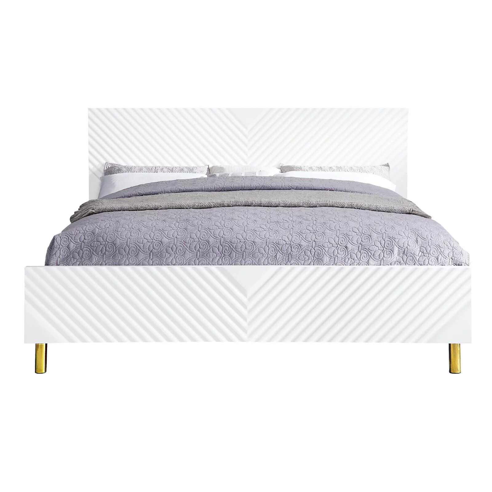 Glamorous Style White Gloss Finish 1pc Eastern King Size Bed Gold Metal Accents Legs Furniture