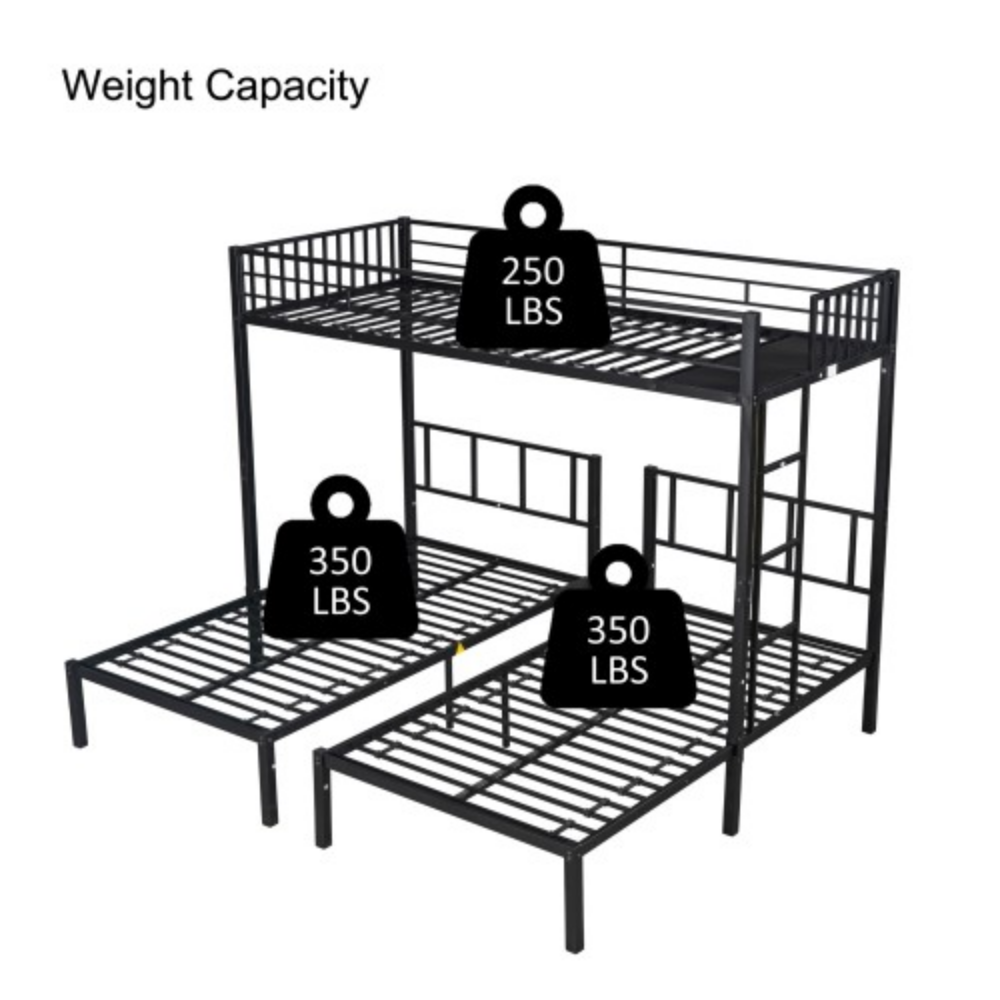 Triple twin bunk bed, can be separated into 3 twin beds Black + Metal