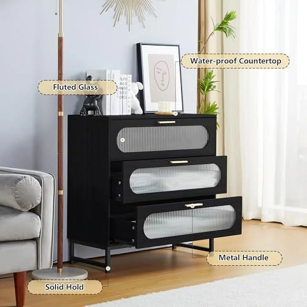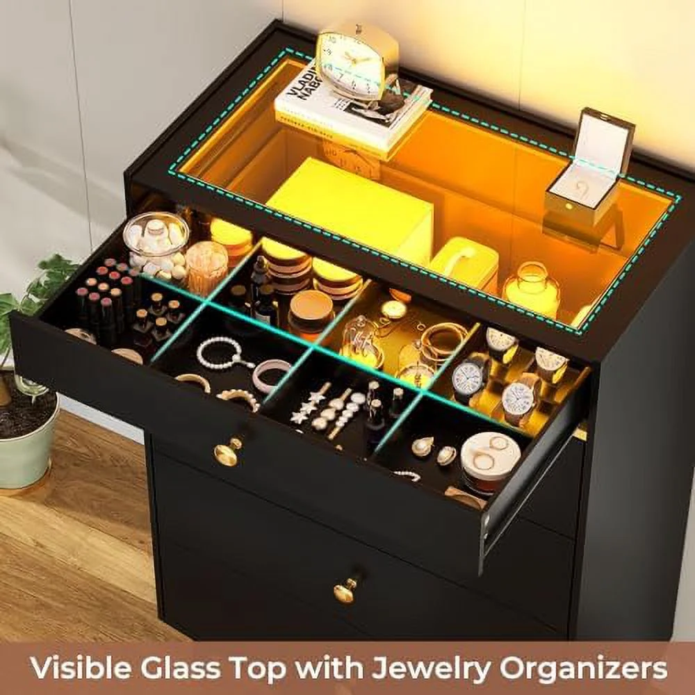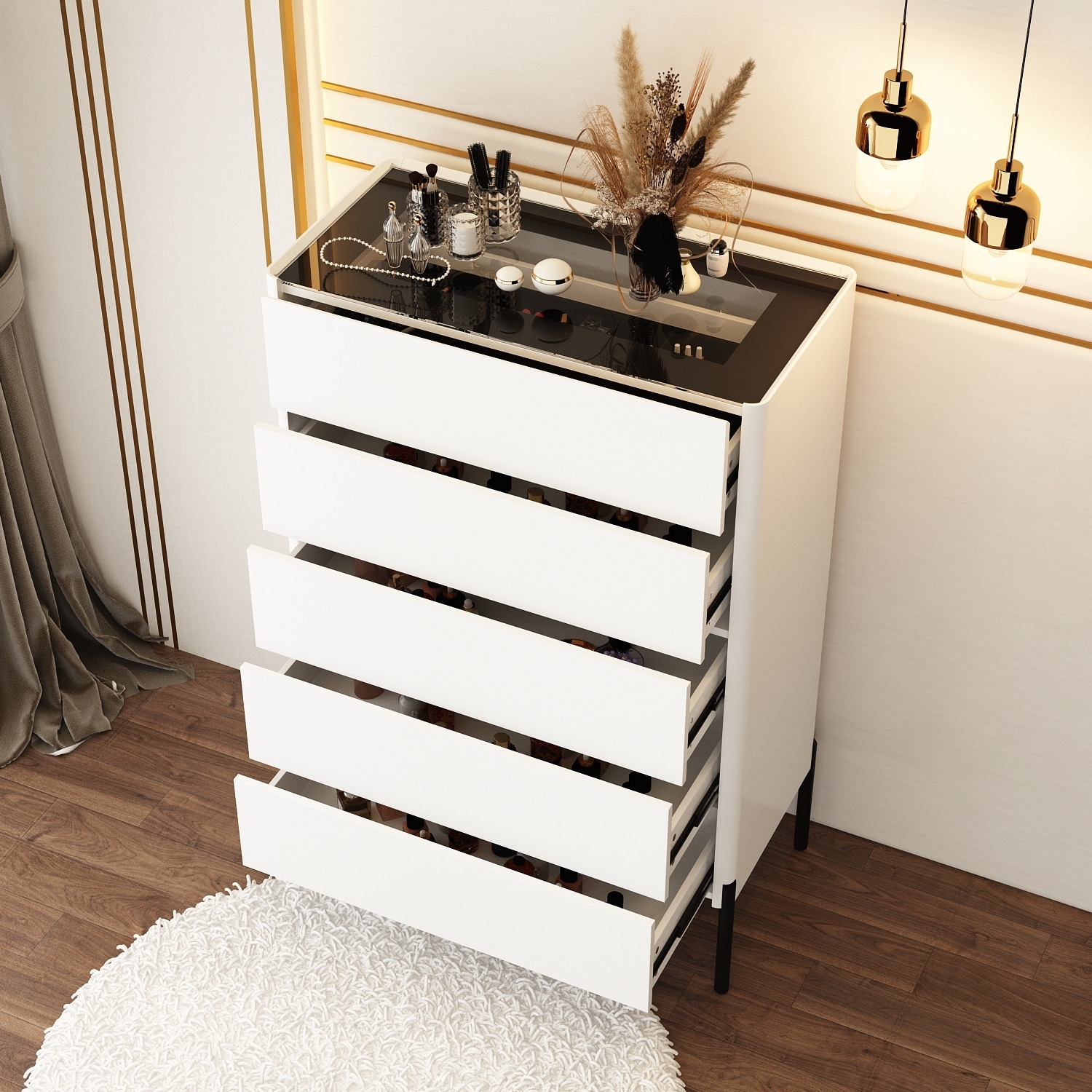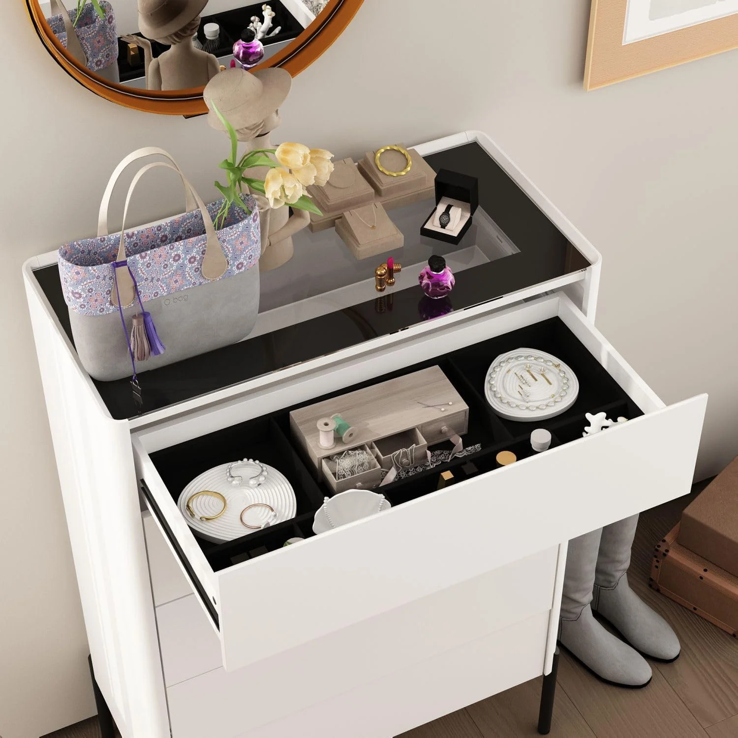 FUFU&GAGA Chest of Drawers with Glass Top End Table Entryway Table Dresser - 31.5"X47.2"