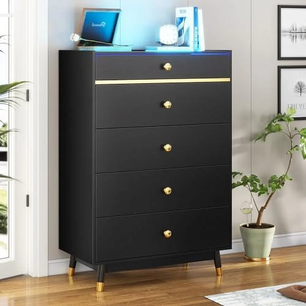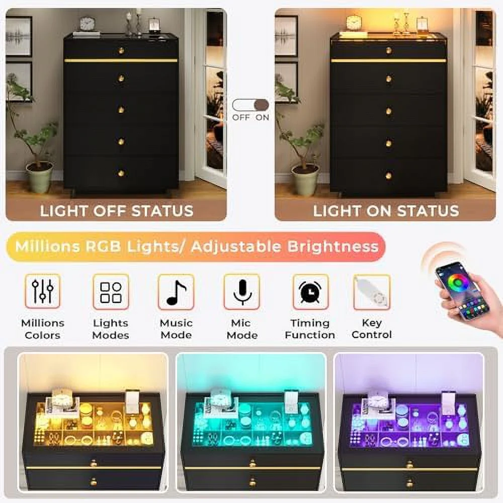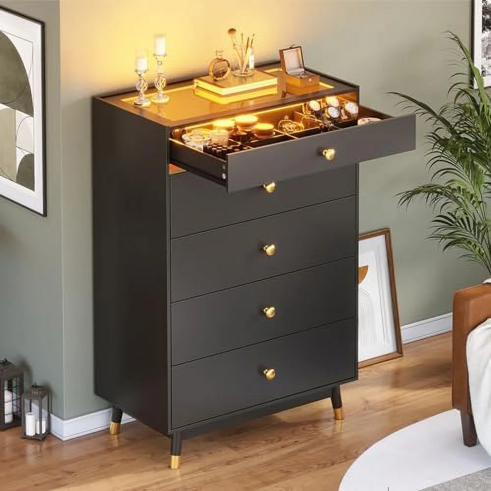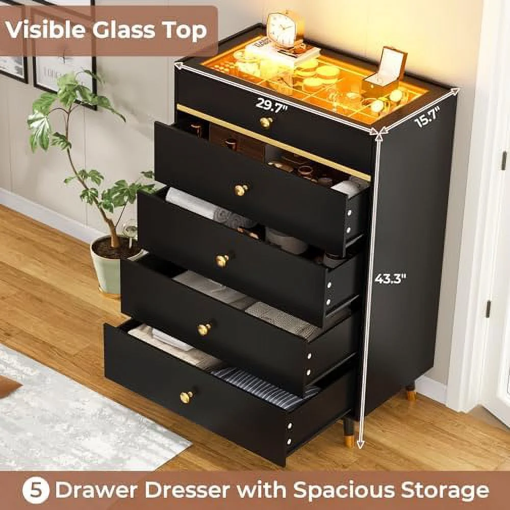 FUFU&GAGA Chest of Drawers with Glass Top End Table Entryway Table Dresser - 31.5"X47.2"