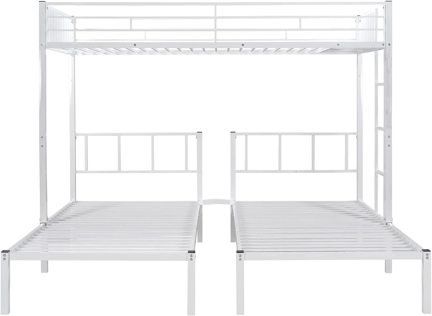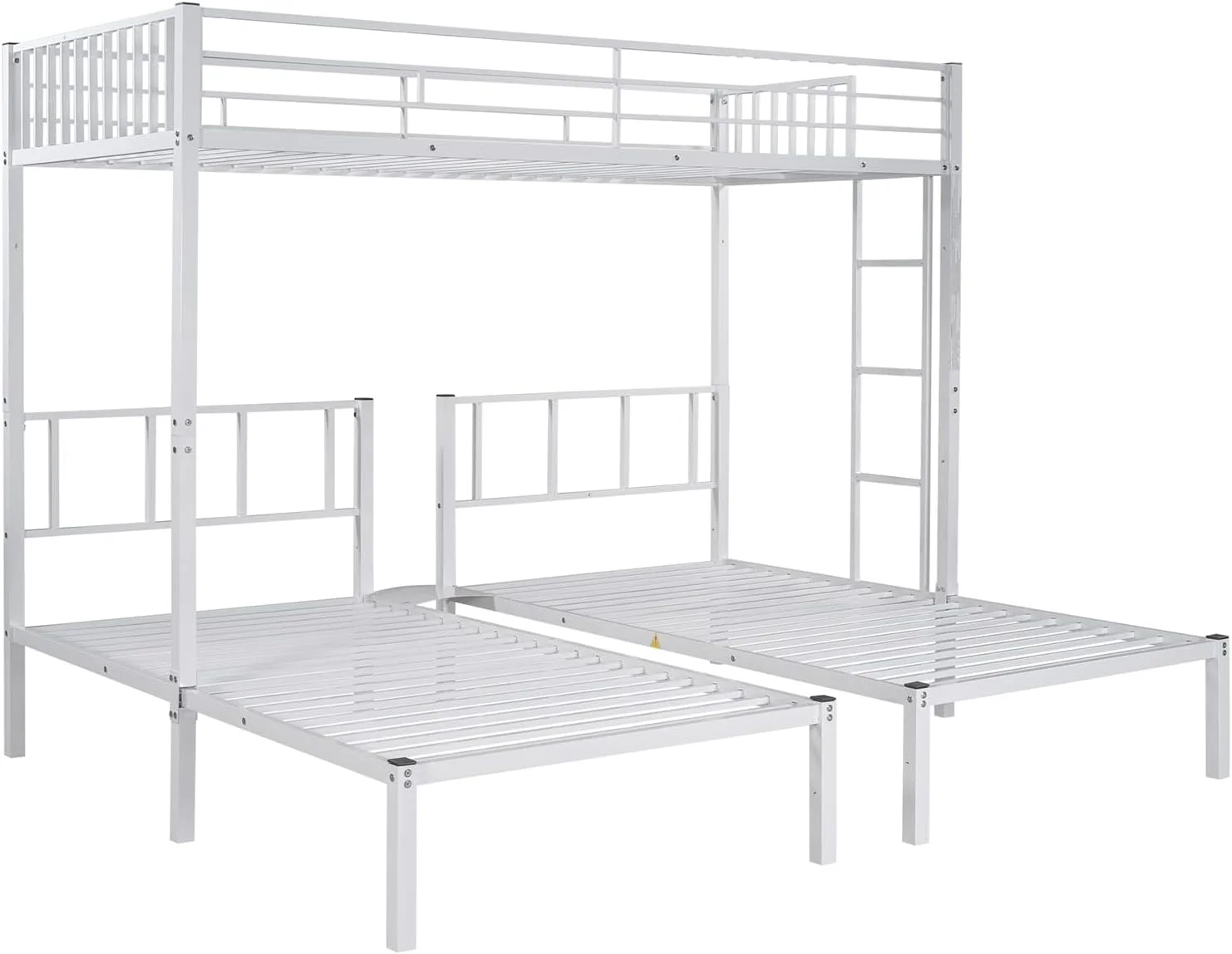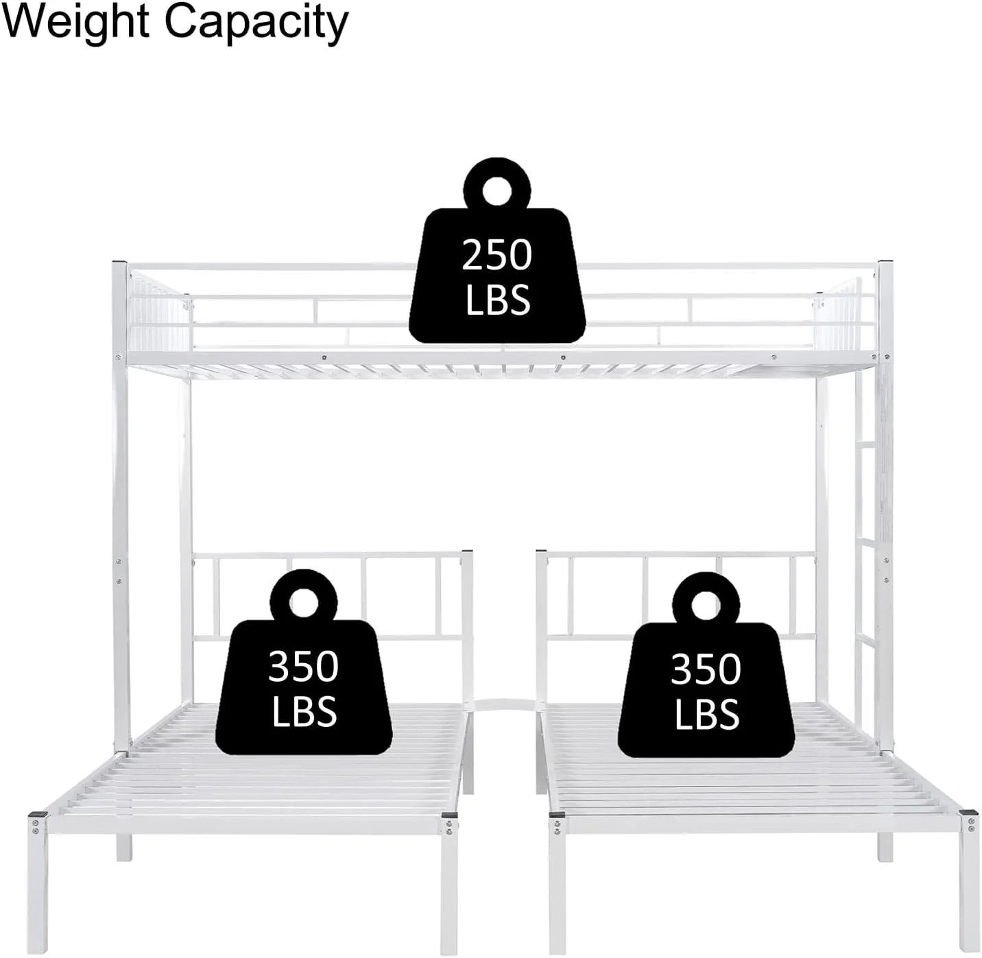 Triple Bed Metal -Over--Over- Bed Bunk Bed With 3 Ladders, Bunk Bed For Family, Teens,No Box Spring Needed